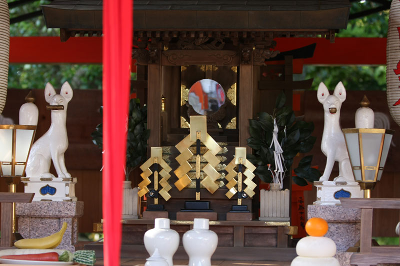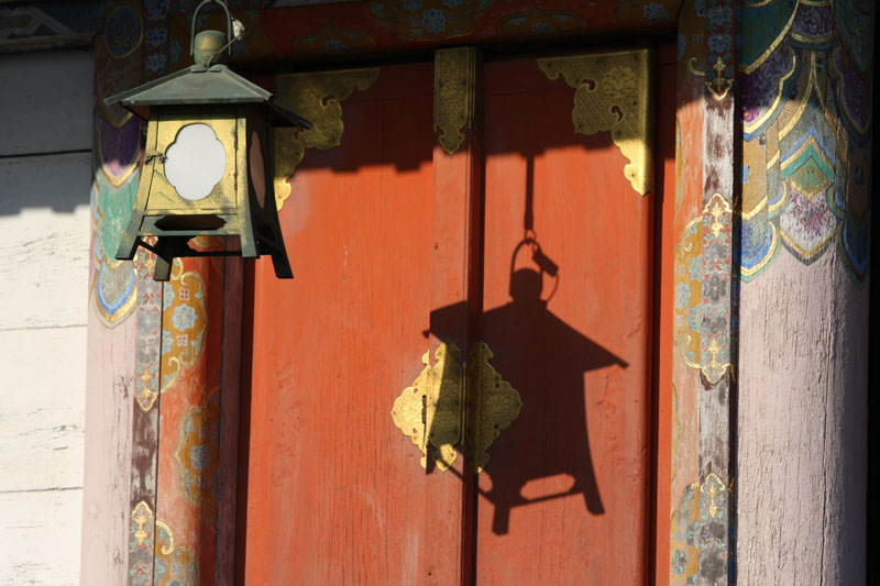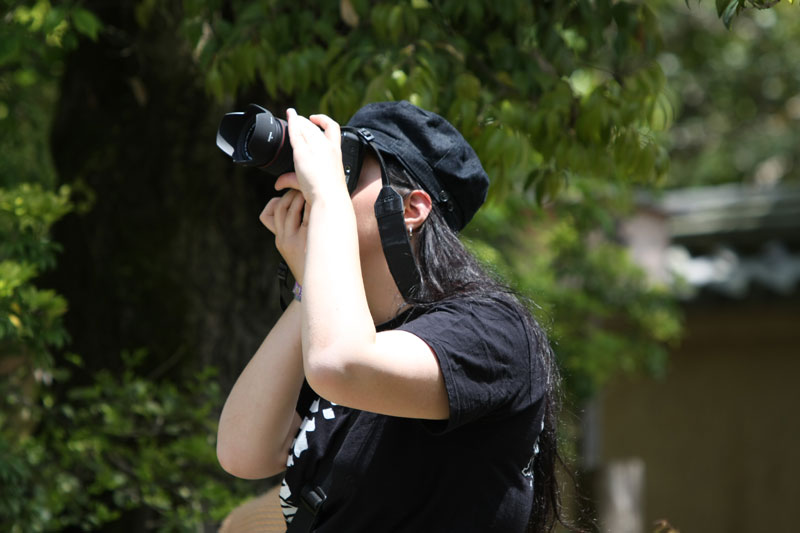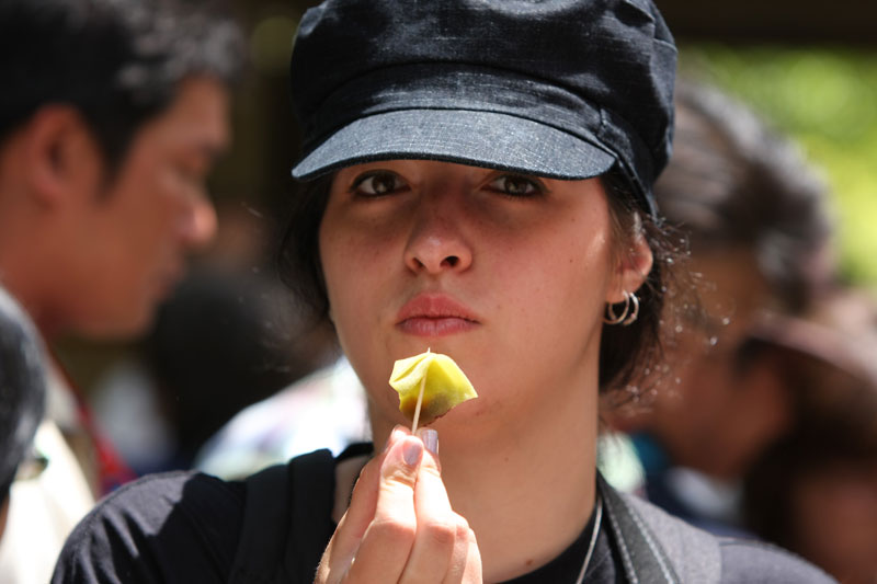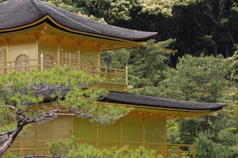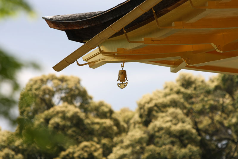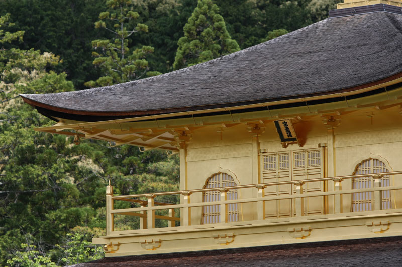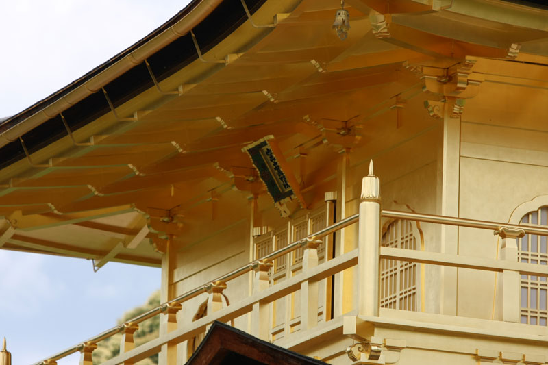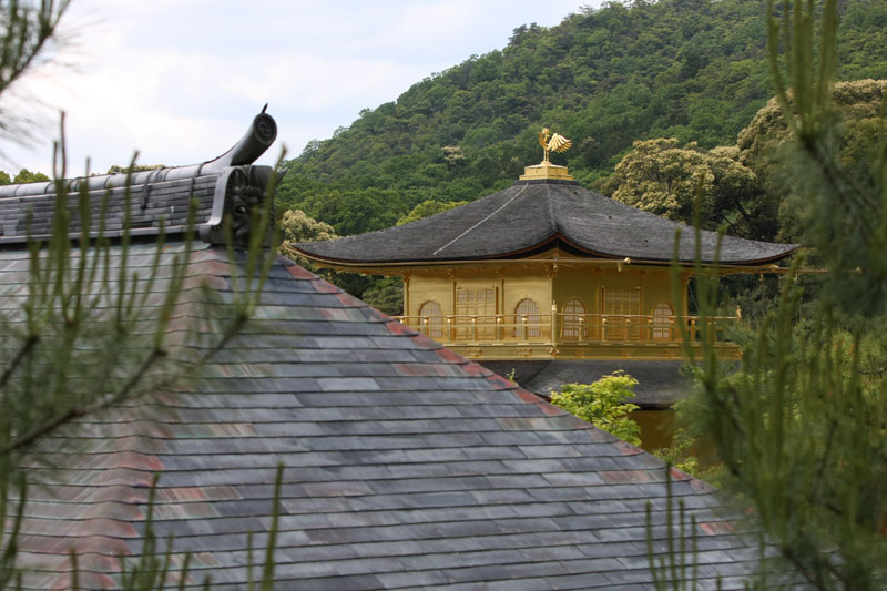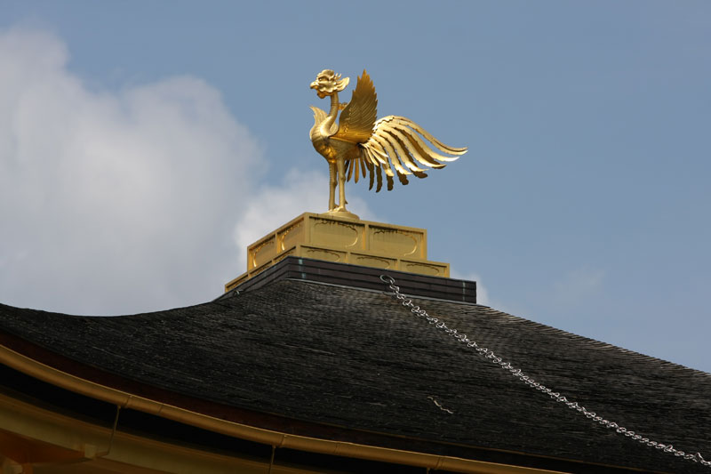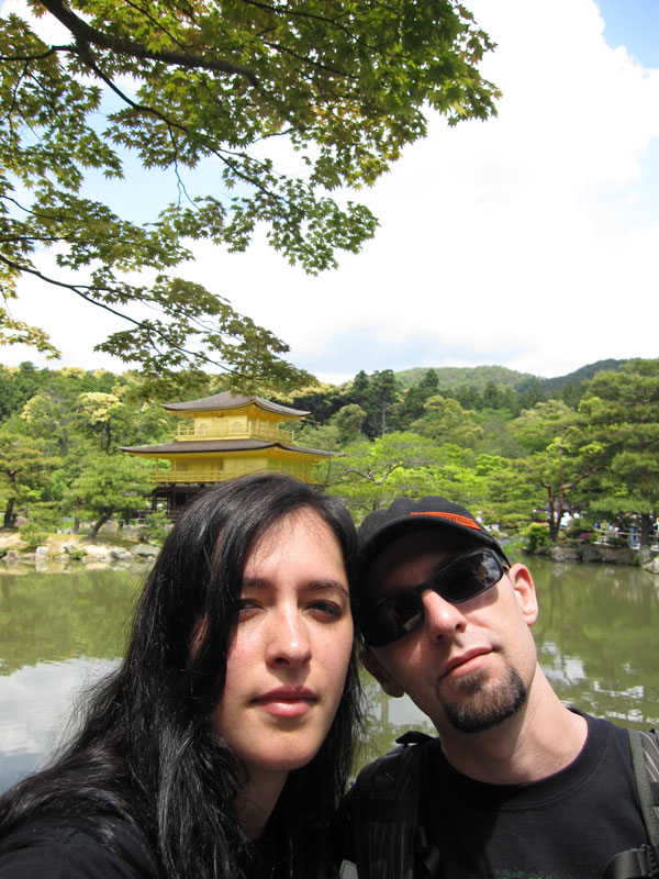 Si la météo est au rendez-vous, les touristes le sont aussi et l’endroit qui est habituellement si paisible et sympa prend des allures de champ de bataille tant il faut jouer des coudes pour pouvoir faire sa photo. Mention spéciale aux chinois qui se comportent vraiment comme des cons. Notez qu’à la base je n’ai rien contre le fait que les chinois fassent du tourisme, mais il va falloir qu’ils apprennent un peu à se comporter de manière correcte car sinon ils vont se trainer une sale réputation… suis-je bête, tant qu’ils ont des thunes on s’en fout de leur attitude, au temps pour moi. Sinon le Kinkakuji sous le soleil et quelques nuages ça reste très chouette et ça mérite le déplacement. Même si on est déjà venu, impossible d’être blasé par l’endroit. D’autant que la nature est parfois surprenante. Bien que grouillant de zozos venus des 4 coins du monde qui piaillent plutôt bruyamment, un héron survole l’étang et vient se poser à quelques mètres des touristes sur la berge… zen. On se promène dans le jardin, on profite de l’ombre procurée par les arbres et ma sœur en profite aussi pour m’offrir un joli petit porte bonheur censé m’apporter la fortune! Si vous repassez sur ce blog et que vous voyez des photos postées depuis la Norvège, c’est que ça à fonctionner!