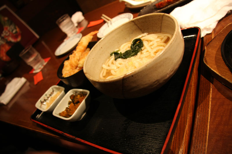 Ce soir, nouvelle tentative dans un izakaya après la mésaventure d’Utsunomiya, ce coup-ci avec beaucoup plus de réussite. La serveuse mimi comme tout a fait l’effort pour se faire comprendre et ne pas nous induire en erreur, pas comme les buses de l’autre resto. J’ai testé les sobas froides… pas mauvais mais en bon occidental que je suis, je préfère les pâtes chaudes. Lucille s’est enfilé un monster bol de udon avec de la tempura et Julie a pris du riz à je ne sais plus quoi.