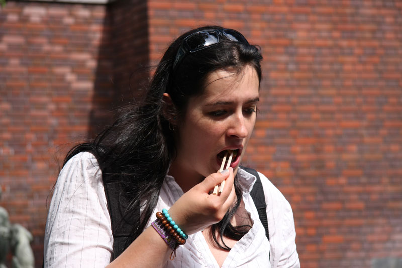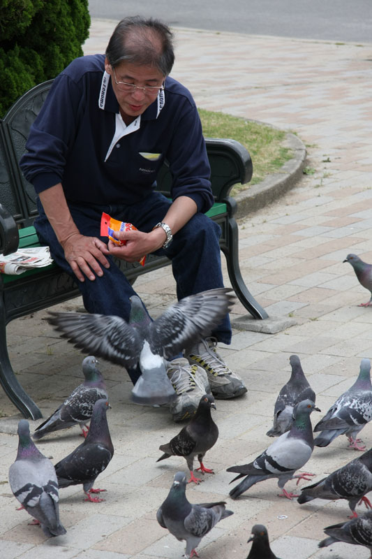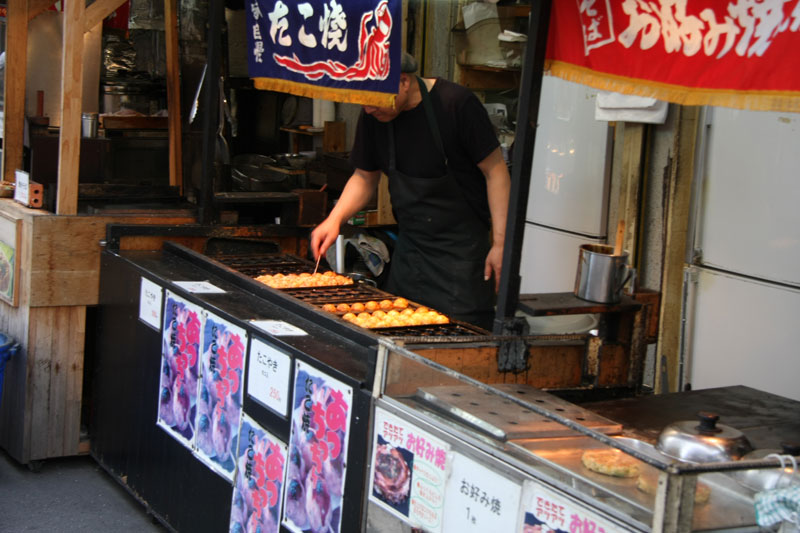 Cette grande malade est venue suivre des cours de droit à la fac de Kobe, comme c’est juste à côté d’Osaka, on joint l’utile à l’agréable. Elle nous guidera dans le quartier « branchouille » d’Osaka en quête d’un des meilleurs restaurant de takoyakis (boulettes fourrées au poulpe – spécialité locale). Le coin fait très « contre culture » avec ces jeunes au look bigaré (on passe du pseudo rappeur du Bronx à des hippies sur le retour), c’est d’autant plus amusant qu’en tournant au coin de la rue, on tombe sur les boutiques Vuitton, Armani, Paul Smith ou Marc Jacobs. Ma curiosité me poussera à franchir la porte de l’Apple Store d’Osaka – ceux qui me connaissent savent la haine que je voue à cette marque et à son marketing douteux et on dirait qu’elle me le rend bien. Espérant trouver un iPad pour pouvoir jouer avec et voir ce que ça vaut, je passe à peine la porte que l’alarme se met à sonner.