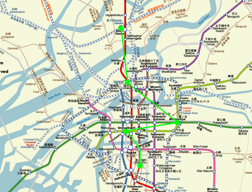 Aujourd’hui, visite de la petite bourgade qu’est Osaka, troisième ville du Japon avec ses 2,5 millions d’habitants, son château, son béton et pas grand chose d’autre à proposer.