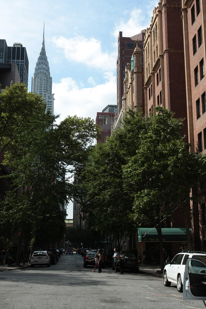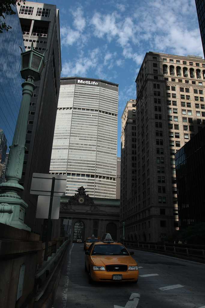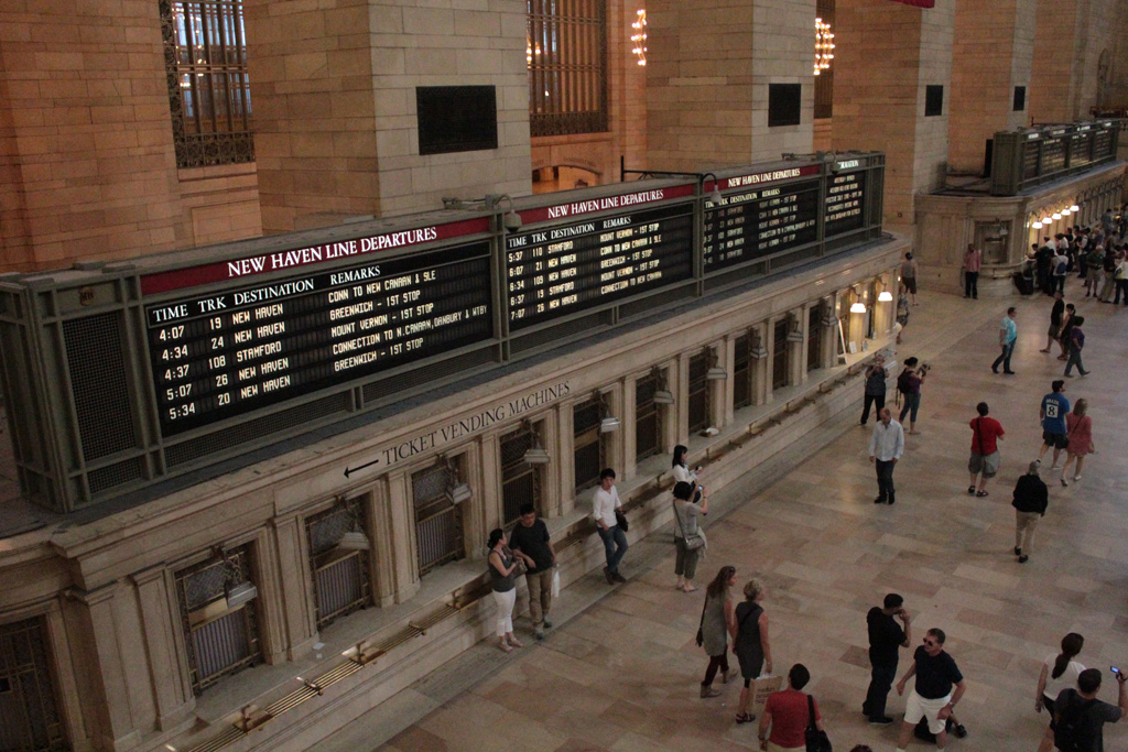 Retour sur la 42ème rue où nous passons au pied du Chrysler Building vu notamment dans Godzilla (il se prend une volée de missiles) ou Men In Black III (Will Smith sautant du toit) très célèbre pour son toit art déco en aluminium. Puis nous entrons dans Grand Central Station – qui se prend des météores dans Armageddon ou bien qui se fait simplement mettre en pièce dans le récent Avengers. A côté de ça, l’architecture de la gare est très chouette, on a du mal à imaginer qu’il y a une multitude de quais sur plusieurs niveaux quand on voit ce grand hall. On y trouve aussi des boutiques et tout un tas de restaurants. Dire que ce hall a failli être transformé en galerie marchande à la fin des années 50 lors du déclin du transport ferroviaire au profit de l’avion…