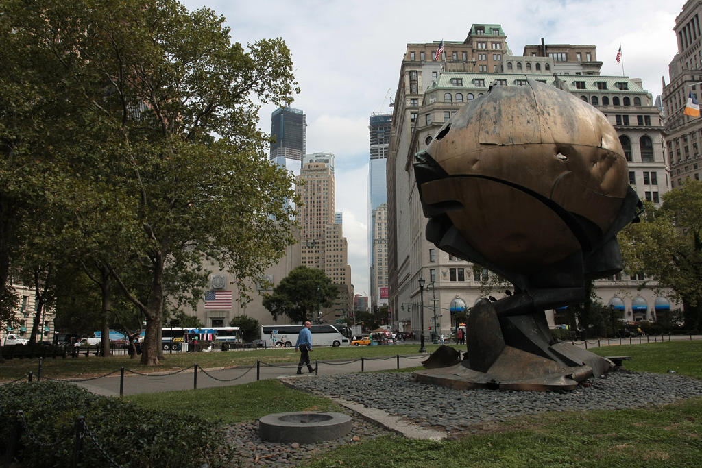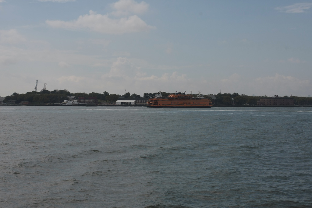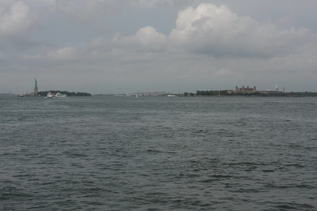 Ce matin, retour à Downtown Manhattan pour un petit tour à Battery Park à l’extrême sud de la ville, plus au Sud il n’y a que Staten Island et encore, comme c’est une île c’est à 20 minutes en ferry. Bref l’intérêt de Battery Park c’est la vue sur la statue de la Liberté et Ellis Island (souvenez-vous du premier X-Men). Se sera l’occasion pour nous de nous faire arroser par les embruns du port de NY, en effet le temps est couvert aujourd’hui et la mer plutôt agitée.