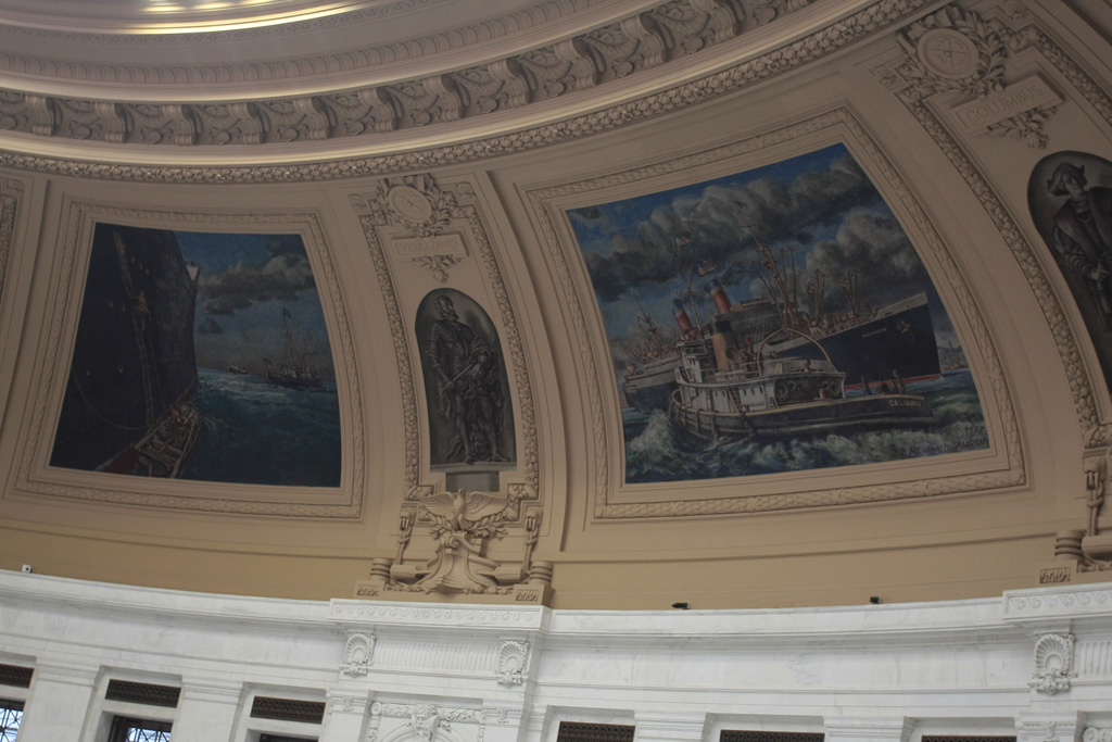 Nous traversons ensuite la rue pour aller dans la US Customs House qui est l’ancien bâtiment des douanes de NY. Il abrite aujourd’hui un musée sur les amérindiens et sert de décor à des films ou des séries télé. Le gardien en a énuméré un nombre pas possible comme l’infâme Batman & Robin, le très bon Inside Man et bien entendu la série New-York : Unité Spéciale.