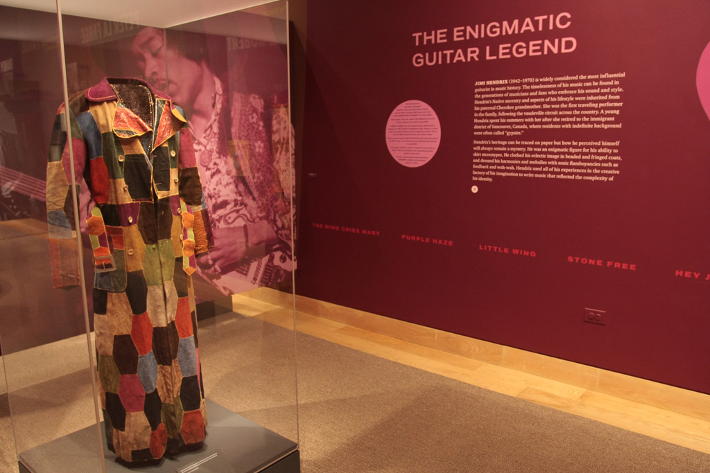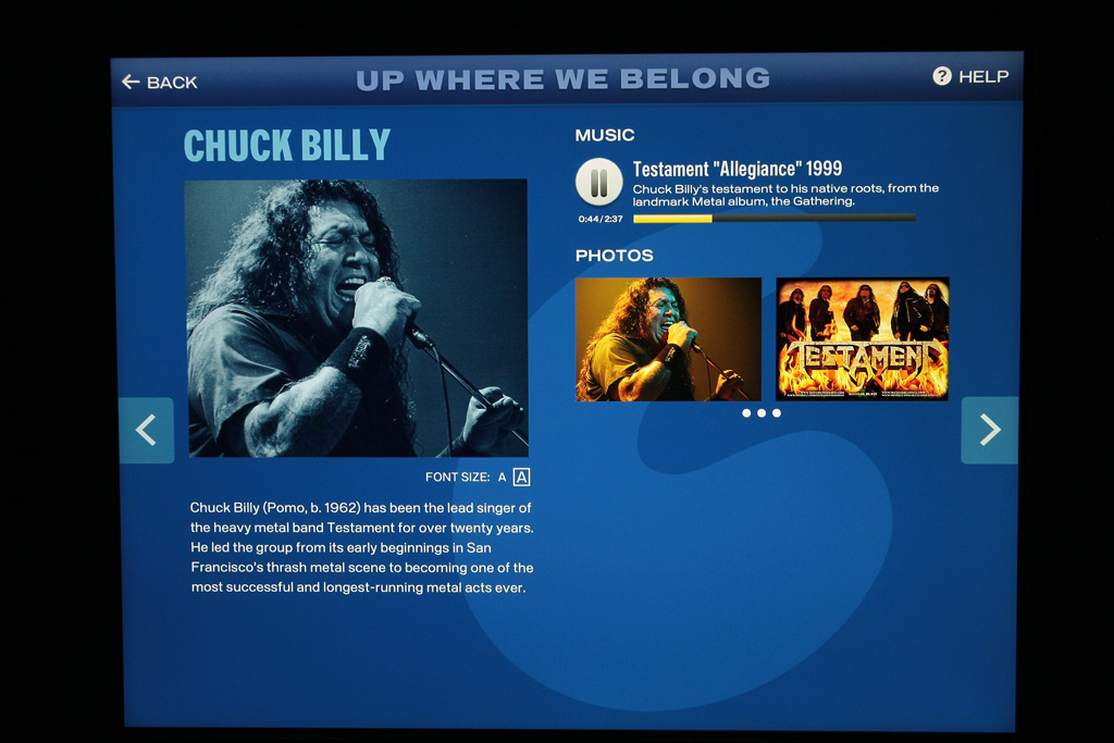 Donc le musée, il montre aussi bien des objets de tous les jours que des parures et vêtements datant de la conquête des USA. L’expo est assez courte mais relativement exhaustive. Elle montre également de l’art contemporain d’origine amérindienne mais il y aussi une partie consacrée aux musiciens d’origine amérindienne ou ayant du sang indien. Le plus connus d’entre eux étant Jimmy Hendrix avec des origines cherokees du côté de sa grand-mère. Pour nous autres métalleux, on pouvait trouver trace de Chuck Billy *insérer cri de groupie ici* ainsi que de Randy Castillo.