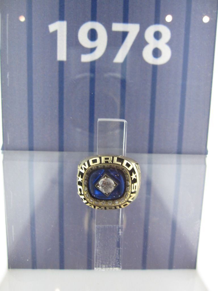 Avant le début du match, nous décidons quand même d’aller voir le musée qui, bien entendu, est à l’exact opposé d’où nous sommes. Donc promenade dans les coursives avec un œil sur le terrain car c’est l’échauffement. 3 coursives grimpantes plus tard, nous voici devant le musée. En fait de musée il s’agit simplement d’une grande salle avec des maillots des vieilles gloires locales (Micky Mantle, Babe Ruth, Joey DiMaggio) – qui sont quasiment toutes des légendes du baseball, bah oui on n’est pas 27 fois champion du monde pour rien non plus hein ! Enfin champion du monde… la ligue de baseball US n’ayant aucun équivalent dans le monde, on peut considérer que le club qui la gagne est champion du monde. Et le modeste championnat japonais, qui pourrait être le seul rival plus ou moins crédible, envoie ses meilleurs joueurs aux USA, en témoigne la présence d’un certain Ichiro Suzuki chez les Yankees donc pour la concurrence on repassera. Bref c’est rigolo et on peut admirer dans les vitrines les immondes chevalières données à chaque joueur et symbolisant une victoire aux World Series (la finale du championnat de baseball).