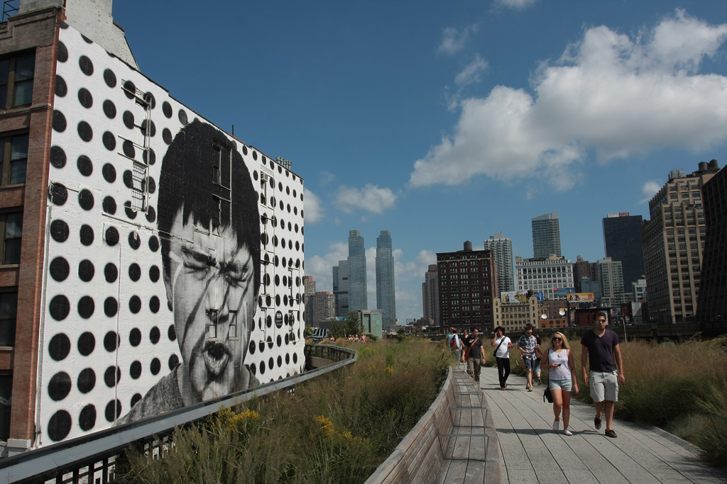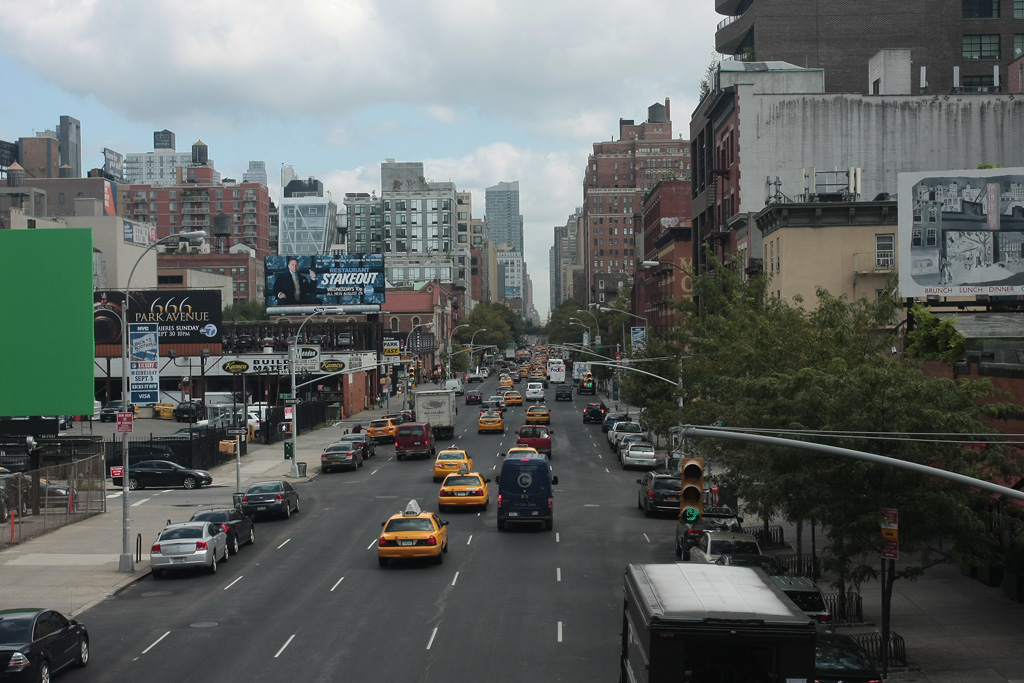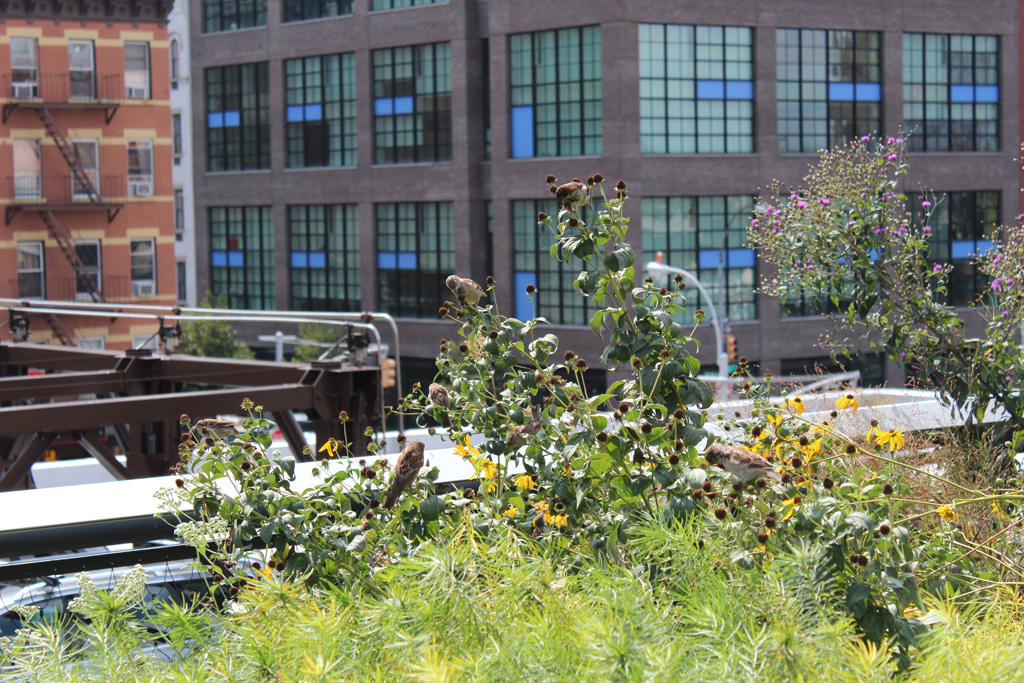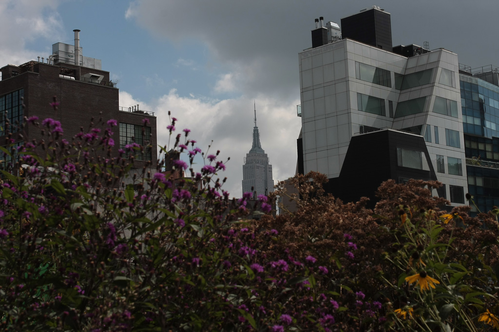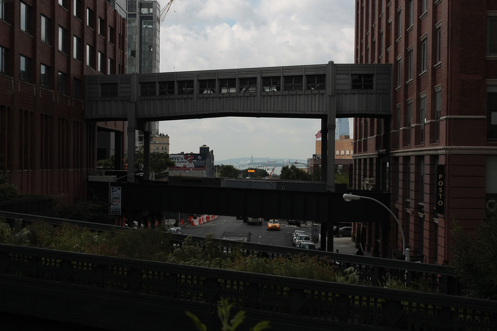 Une fois de plus, nous sautons dans le métro en direction du sud de la ville. Pas complètement au sud cette fois car nous nous arrêtons au niveau de la 15ème rue et prenons la direction du Meatpacking District, quartier des anciens abattoirs. Le quartier est aujourd’hui aux mains des bobos du coin et des entrepreneurs car en pleine reconversion. Ce qui nous intéresse aujourd’hui c’est la highline, sorte de coulée verte conçue sur une ancienne voie ferrée aérienne qui reliaient différents bâtiments du secteur entre eux. Elle couvre pas loin de 35 blocks (de Gavensoort St jusqu’à la 30ème rue), soit une belle balade au dessus des voitures, au milieu des plantes, de libellules (si si) et même de monarques ces grands papillons migrateurs, le tout sous le regard des chats du quartier qui scrutent ce qui se passe en bas de chez eux depuis les baies vitrées de certains appartements.
