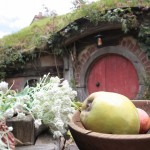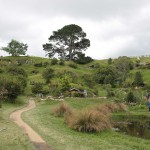 Le traumatisme « chinois » de la veille étant encore bien présent, dans le bus qui mène au Saint Graal, elle se dit prête à faire un carnage si jamais il s’en trouvait un pour lui pourrir une photo. Heureusement que c’est bien organisé. Par groupe de 30/35 personnes, la visite se fait avec un guide qui vous cadre mais vous laisse malgré tout un très grande latitude pour vous déplacer dans le décor. Oui bon OK, trève de mystère: l’endroit dont je parle est la Comté, le village des Hobbits, lieu emblématique du Seigneur des Anneaux et seul décor des films intégralement conservé en l’état et soigneusement entretenu par les fermiers qui ont un jour vu débarquer dans leur champ, au milieu des moutons, 600 personnes pour le tournage.