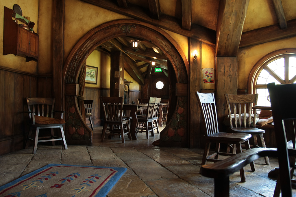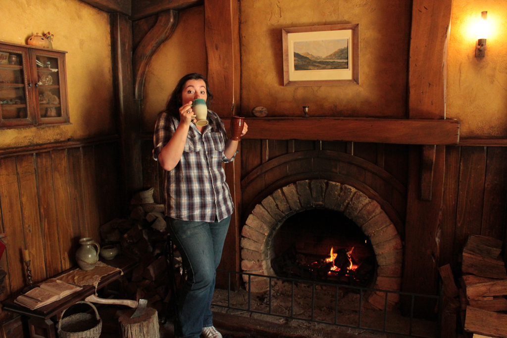 Le tour du proprio se boucle en 2h, ça peut paraître court mais c’est en réalité suffisant. Le seul endroit où l’on s’attarderait volontiers est le Greendragon, la taverne de la Comté. D’autant qu’on y offre un verre à chaque visiteur. Je vais vous dire, même en plein été, se siffler un binouze hobbit dans un fauteuil en face d’un feu de cheminée, ça n’a pas de prix. Hé ouais, juste pour dire « je l’ai fait ». Bref.