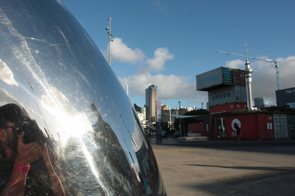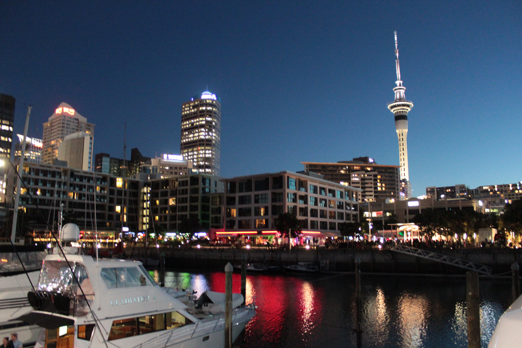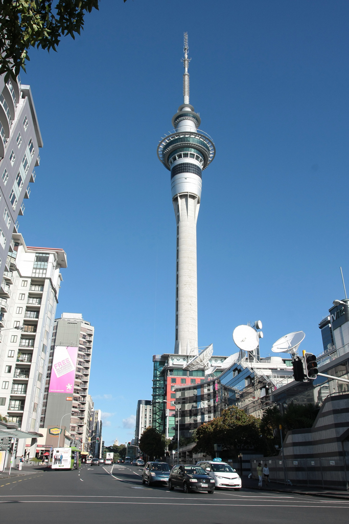 Auckland donc, grande ville tout à fait respirable à l’atmosphère faisant penser à un savant mélange de Berlin et de San Francisco, à la fois cool et branchée dont la seule chose remarquable de loin est le Sky Tower – visible à plus de 50 kilomètres par beau temps (ce qui était le cas aujourd’hui puisque nous l’avons aperçu depuis l’autoroute à plus de 55 km). Là pour le coup, un plan de la ville est d’une grande aide car tout faire au pif devient vite compliqué.