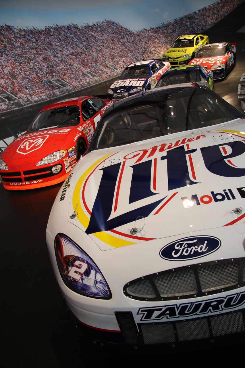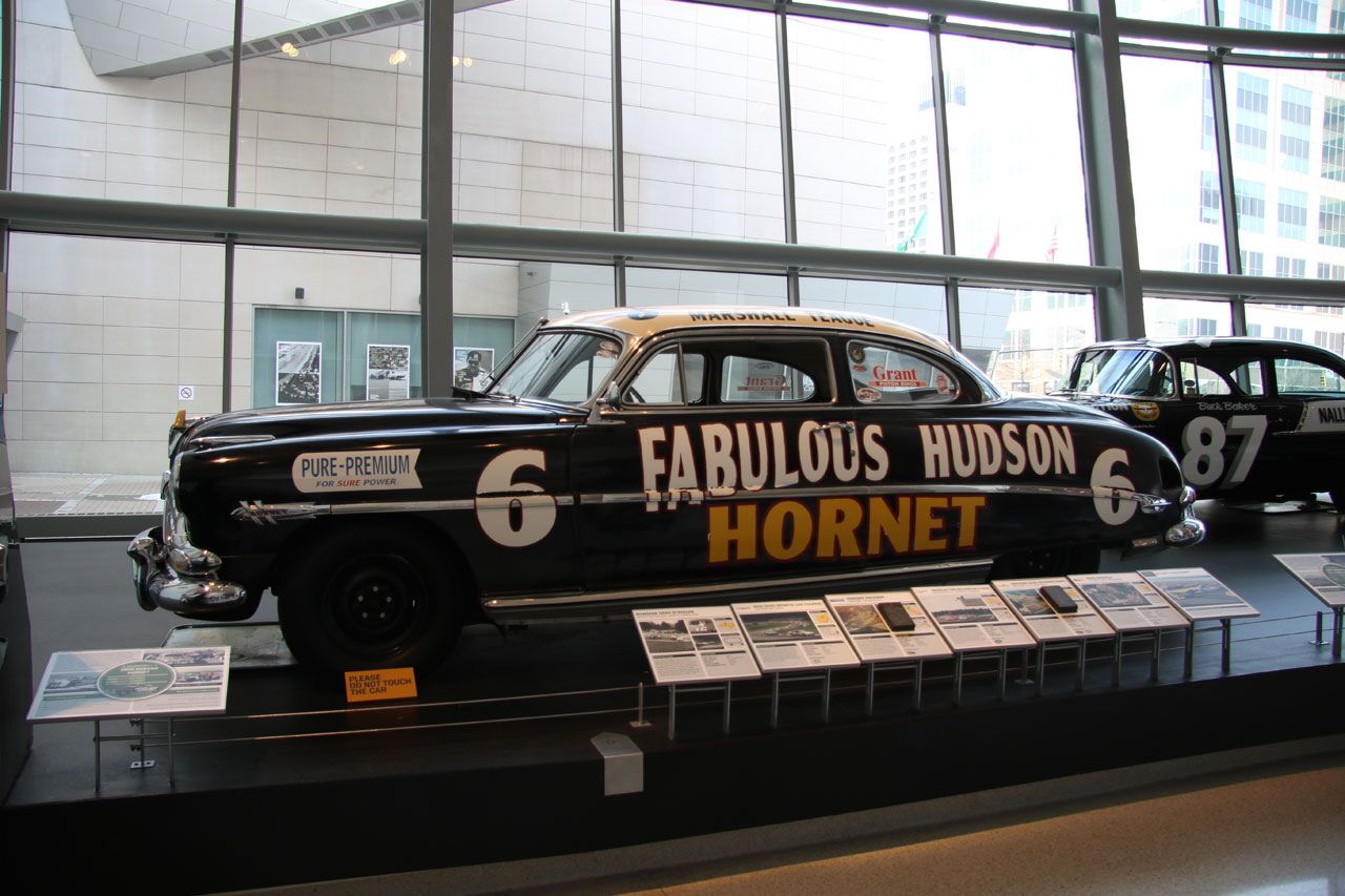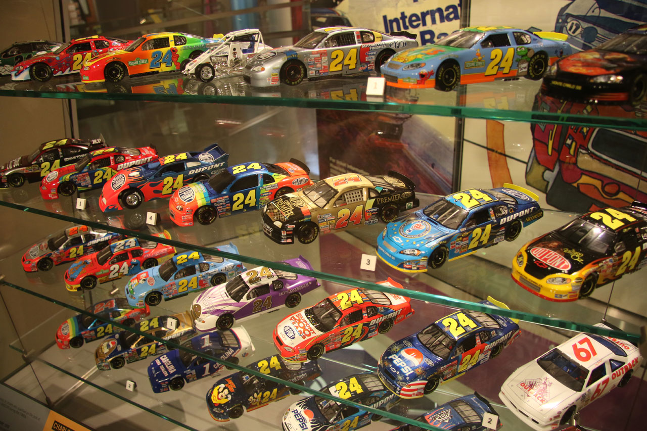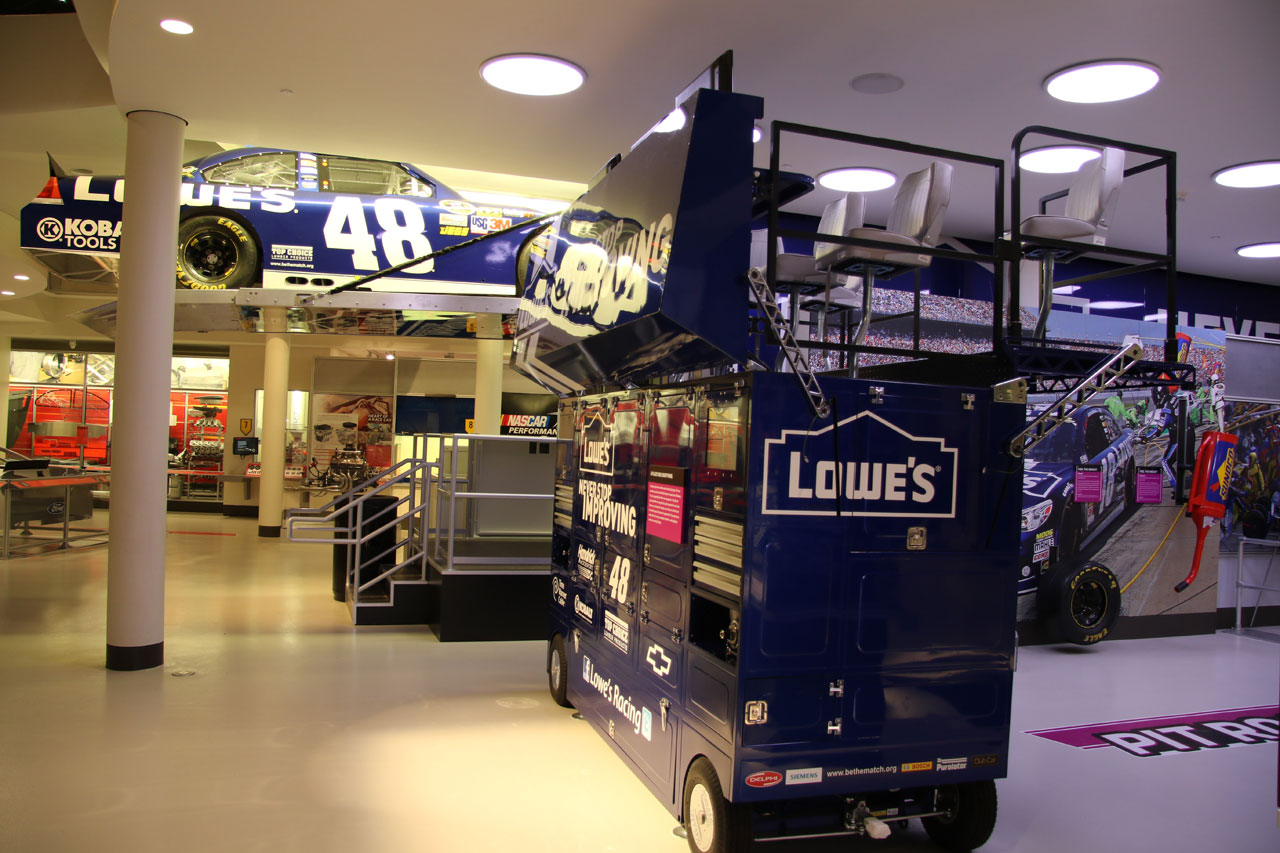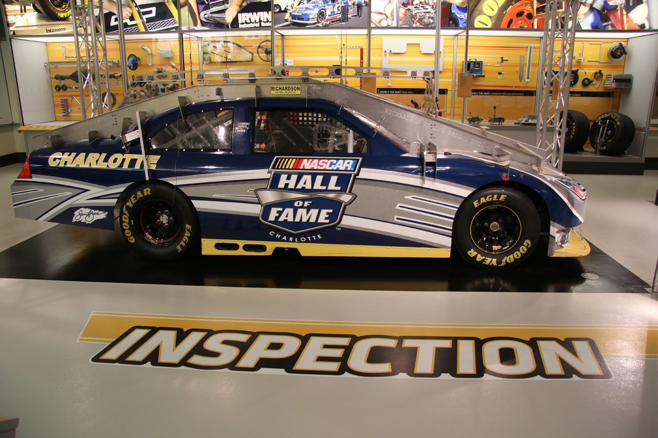 Une fois à Charlotte (en Caroline du Nord), direction le Nascar All Of Fame qui, comme son nom l’indique, est un lieu 100% dédié à la Nascar. Dans un superbe bâtiment flambant neuf, sont réunis des voitures de toutes les époques, on peut ainsi voir l’évolution du matériel depuis les années 50 jusqu’à nos jours. On vous donne une carte qui permet d’interagir avec des bonnes tactiles – on se créé un profile, on choisit son pilote et au fur à mesure de la visite sur chaque borne on teste ses connaissances via des QCM sur l’histoire de la Nascar ou sur des points techniques et on marque des points. Le tout est très interactif et amusant. C’est suffisamment bien fait pour qu’un novice en mécanique apprenne à régler la pression des pneus sur une voiture de course. Une fois toutes les étapes de la mise au point validées, vient l’épreuve du test des réglages que l’on a effectué depuis le début de la visite sur un simulateur. Et c’est là qu’on se rend compte que conduire une bagnole comme ça sur un ovale c’est tout sauf simple. A la fin de visite, on passe sa carte sur la dernière borne et on compare ses résultats avec ceux des autres visiteurs du mois. J’ai fait 4ème en ayant oublié l’épreuve de changement de pneus – où l’on change une roue pour de vrai.