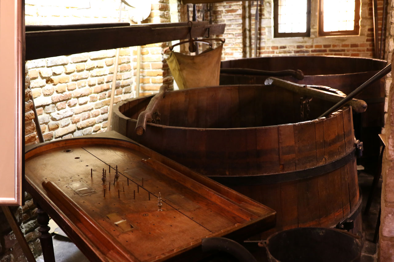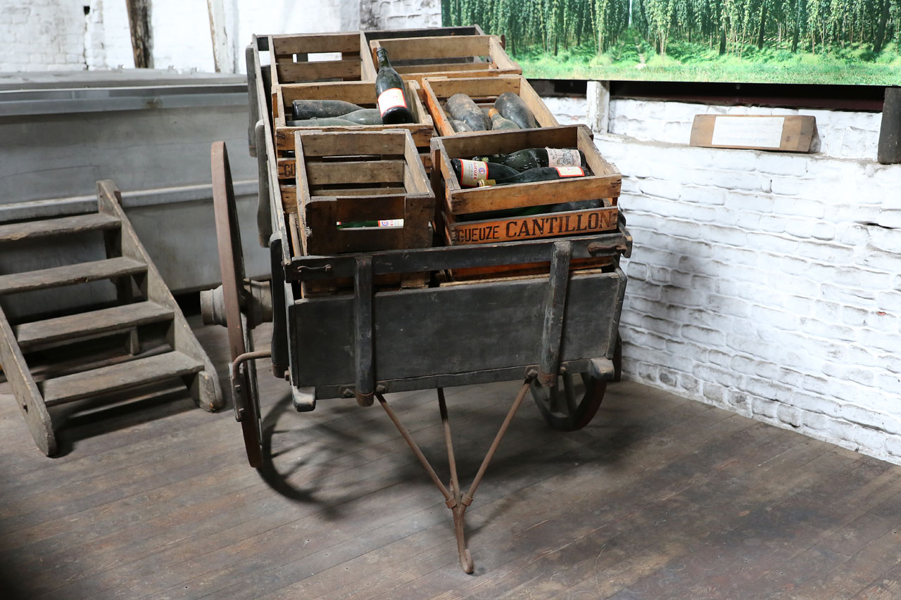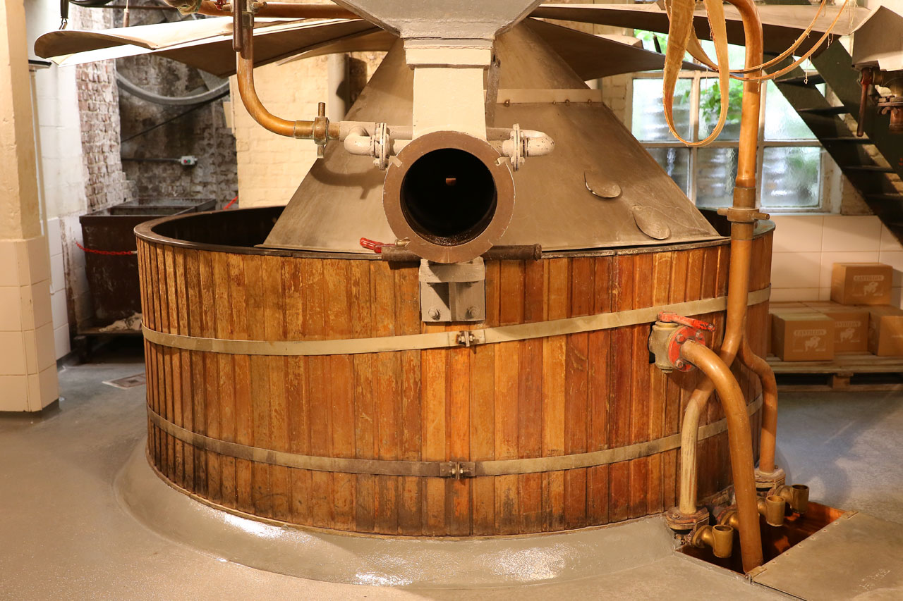Un gros quart d’heure de marche plus tard, nous nous faisons la réflexion que Bruxelles réussie la performance d’être aussi sale sinon plus que Paris. Ce qui n’est pas une mince affaire. Là-dessus nous pénétrons dans la brasserie Cantillon. La dernière brasserie traditionnelle de Bruxelles (voir de Belgie mais j’ai peur de dire une bêtise sur ce point) qui produit de la Gueuze. L’accueil est chaleureux et les gens fiers de leur produit. S’en suit une visite de la brasserie où tout est fait « à l’ancienne », sans ajout de CO² ou d’adjuvants chimiques. La bière est faite par fermentation naturelle et vieillie en fût de chêne pendant 3 ans. Entre les cuves et le bassin de refroidissement, il y a suffisamment de cuivre dans les lieux pour rendre hystérique tous les voleurs de câbles de la SNCF. Ce petit tour des installations se termine bien entendu par une dégustation, dans un premier temps d’une bière qui n’a vieilli que 18 mois dans les fûts, elle est donc plate (sans gaz) et a un goût très marqué, on sent que ça manque d’affinage. Dans un second temps, on goûte le produit fini. Dans notre cas, une Gueuze traditionnelle et une à la framboise. Ni l’une, ni l’autre ne sont des bières que je choisirai en toute connaissance de cause, sans doute suis-je trop habitué aux bières plus industrielles, on sent néanmoins une grosse différence avec le reste de la production (la taille des bulles, le goût et sa persistance en bouche etc). Une visite riche d’enseignement.