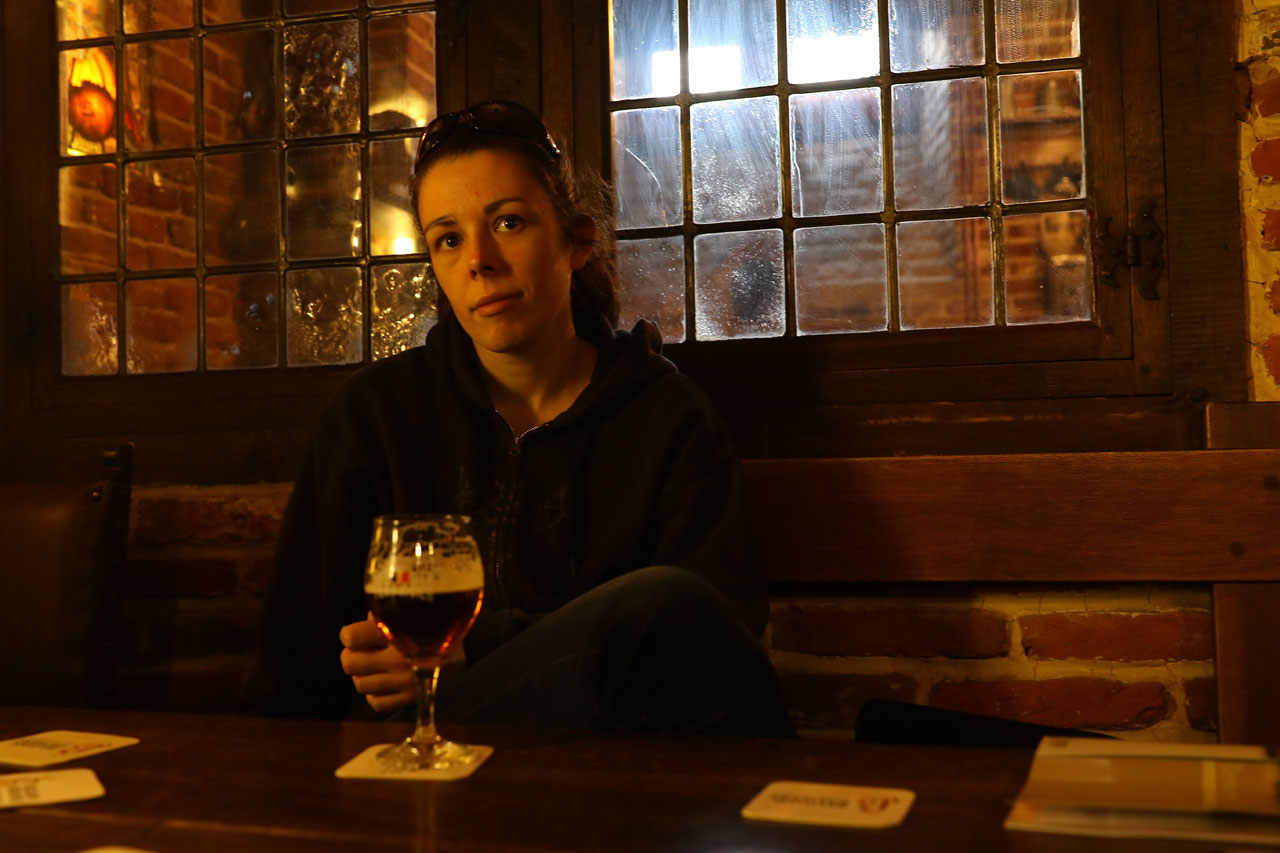 Une fois sur la Grand Place, la Maison des Brasseurs est enfin ouverte. A 14h il vaudrait mieux cela dit. Nous voila donc en train de descendre l’escalier qui mène à une petite salle pleine d’ustensiles anciens servant à la préparation de la bière. Nous prenons nos entrées et là nous nous entendons dire qu’il y a un petit film avant la dégustation. Nous passons dans la pièce à côté et au milieu de 3 cuves en inox se trouvent 4 rangées de chaise alignées devant un écran sur lequel passe en boucle un DVD que n’aurait pas renié pas l’office du tourisme de Nogent-Le-Rotrou… en 1997. D’un kitch absolu, ce film présente juste les différents producteurs de bières du pays. Impossible de passer sous silence le montage totalement ‘has been’ depuis 1983, les cadrages que même un vidéaste amateur ayant un peu d’amour propre n’aurait pas osé montrer même à sa mère, quant à la bande son… non mais ALLO! 5 minutes de film plus tard nous déguerpissons espérant secrètement que la dégustation sauvera le truc. Elle sera en réalité le dernier clou du cercueil. On nous propose de choisir entre une blonde et une ambrée, lucide, nous en prenons chacun une. Nous nous posons, goûtons, nous regardons l’air dubitatif. Aurélie me dit que l’ambrée ressemble à de la Leffe et je trouve que la blonde a un vague goût de Pils assez moyenne. Là-dessus je me lève et vais demander ce qu’on nous a servi. « Ha mais vous savez ça change souvent donc je ne suis pas sûr ». Oui oui à d’autres Jacky pas à moi. En insistant un poil je m’entends dire que la blonde est une Stella-Artois et l’ambrée une Leffe. J’annonce le truc à Aurélie, nous nous regardons et rions un poil nerveusement de ce foutage de gueule en règle. Donc la Maison des Brasseurs, sur la Grand Place de Bruxelles, te fait payer pour regarder un DVD des enfers et te servir de la bière vraiment pas top. Même si le type en charge du lieu est gentil comme tout, pour un endroit qui se veut être la vitrine du produit national belge, situé sur la Grand Place de la capitale, dans un beau bâtiment, c’est moche et à un moment ça va finir par se voir.