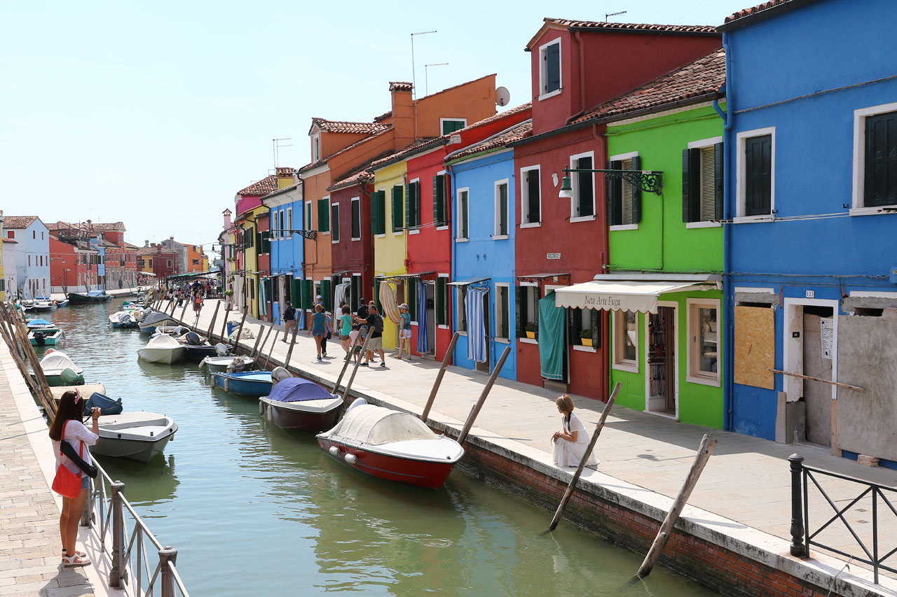 Cette île est tout bonnement charmante… pour peu qu’on quitte le chemin balisée par la rue principale, ses restaurants et ses boutiques. La spécialité locale est la broderie, idéal pour la déco des maisons de retraites ou pour faire des souvenirs easy à des amies japonaises. Sinon ce qui présente vraiment un intérêt se sont les maisons de pêcheurs peintes de différentes couleurs. C’est à la fois flashy et décrépi, complètement bariolé et super mignon sous le soleil. Les petits canaux donnent à l’endroit un charme que Venise n’aura jamais du fait de sa taille ou alors seulement dans certains quartiers. Mais j’avoue préféré le côté simple de cette île à celui plus pompeux de sa grande voisine.