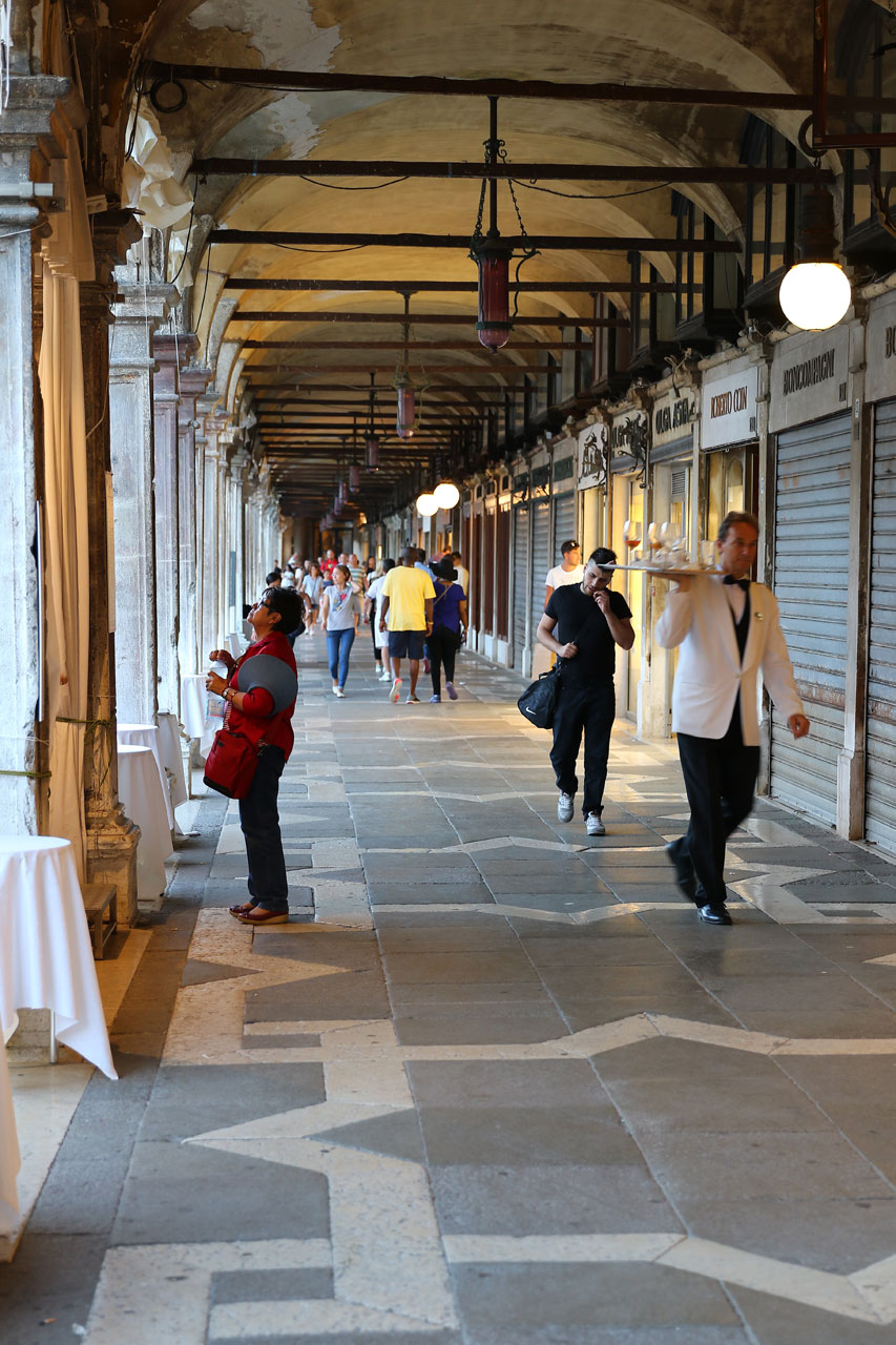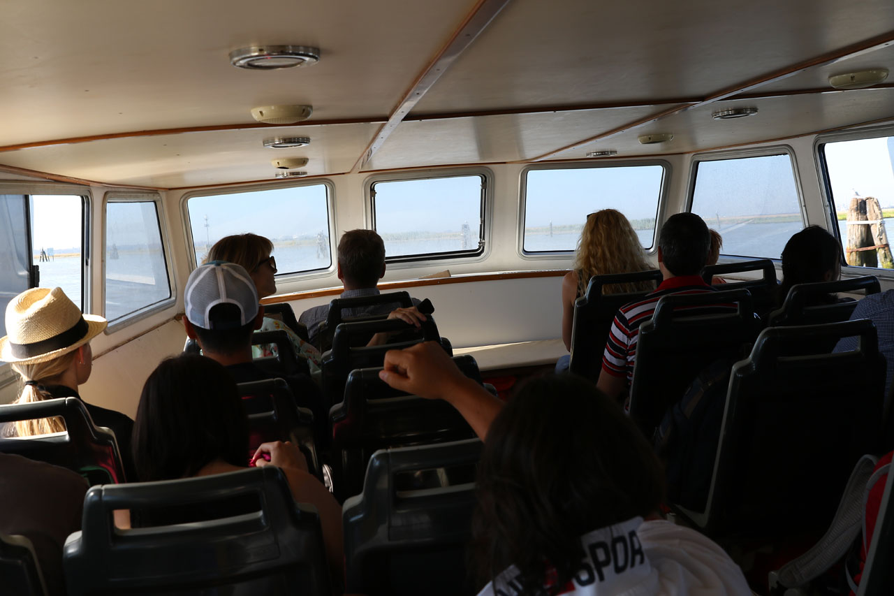 Pour rallier Venise, nous optons pour le bateau. Non pas une de ces vedettes rapides hors de prix mais avec le bon vieux vaporetto des familles (aucun lien avec le nettoyeur vapeur). Celui qui prend son temps et qui tangue sévère. Ceci étant, nous ne sommes pas pressés et nous mettrons pas loin d’une heure et dix minutes pour rejoindre le centre. Là nous constaterons qu’en effet, il y a du monde, beaucoup de monde. La place Saint Marc dégueule de touristes venus des 4 coins du monde prenant tous la pause comme des mongoliens devant n’importe quoi sauf ce qui pourrait constituer un fond sympa. Ca plus les selfie-sticks qui donnent des envie de violence gratuite à l’endroit de ceux les utilisant, mais comme nous sommes au-dessus de ces basses considérations, nous prendrons le chemin de l’hôtel qui se trouve à 25 mètres de la place Saint Marc (sans mentir).