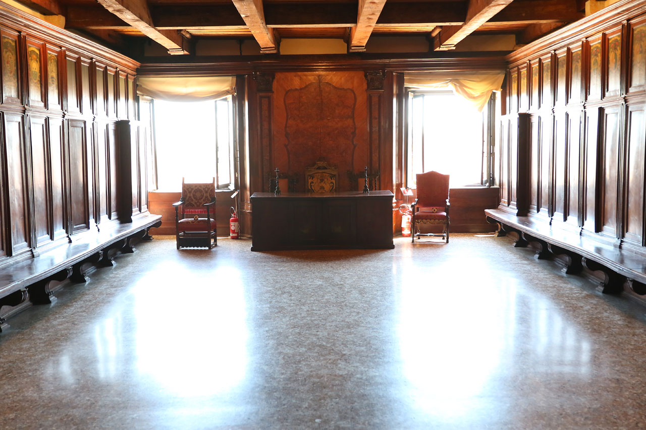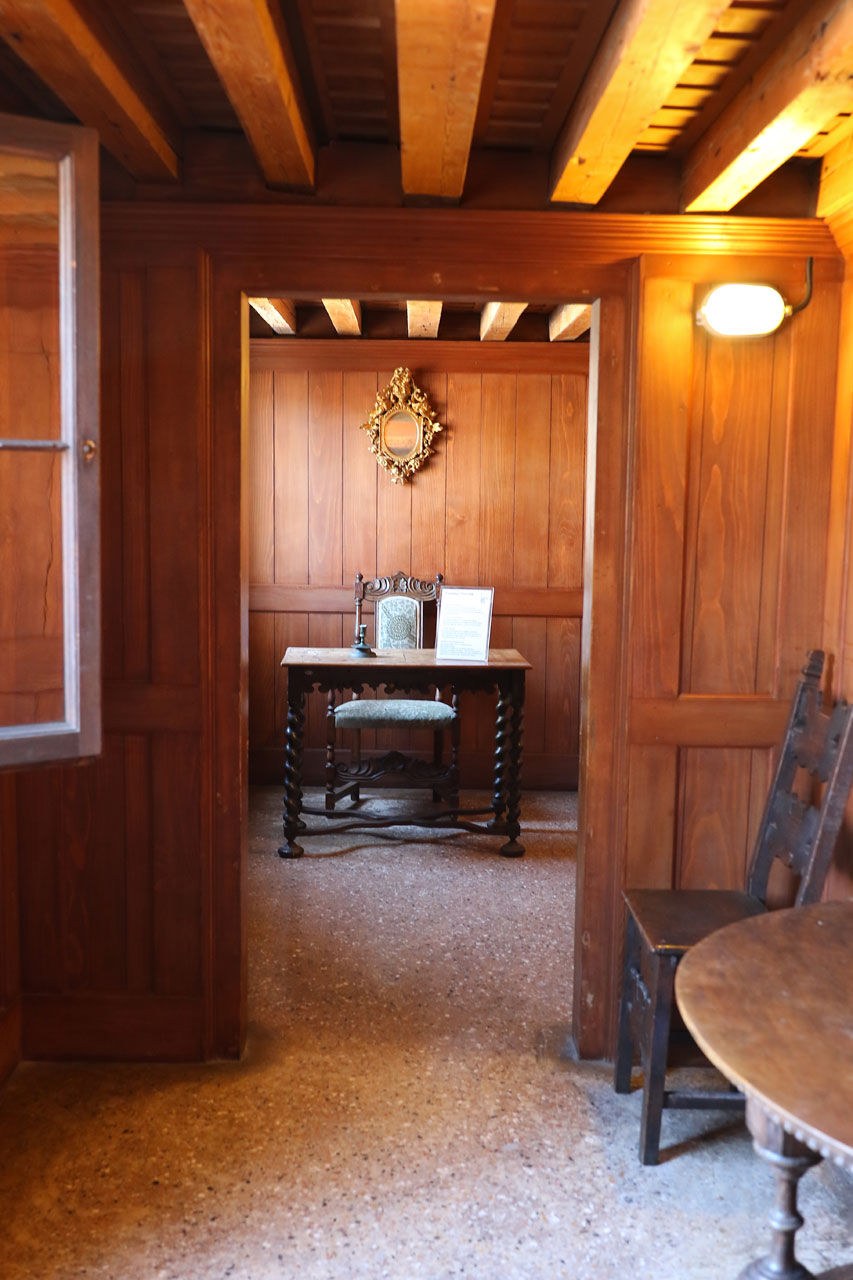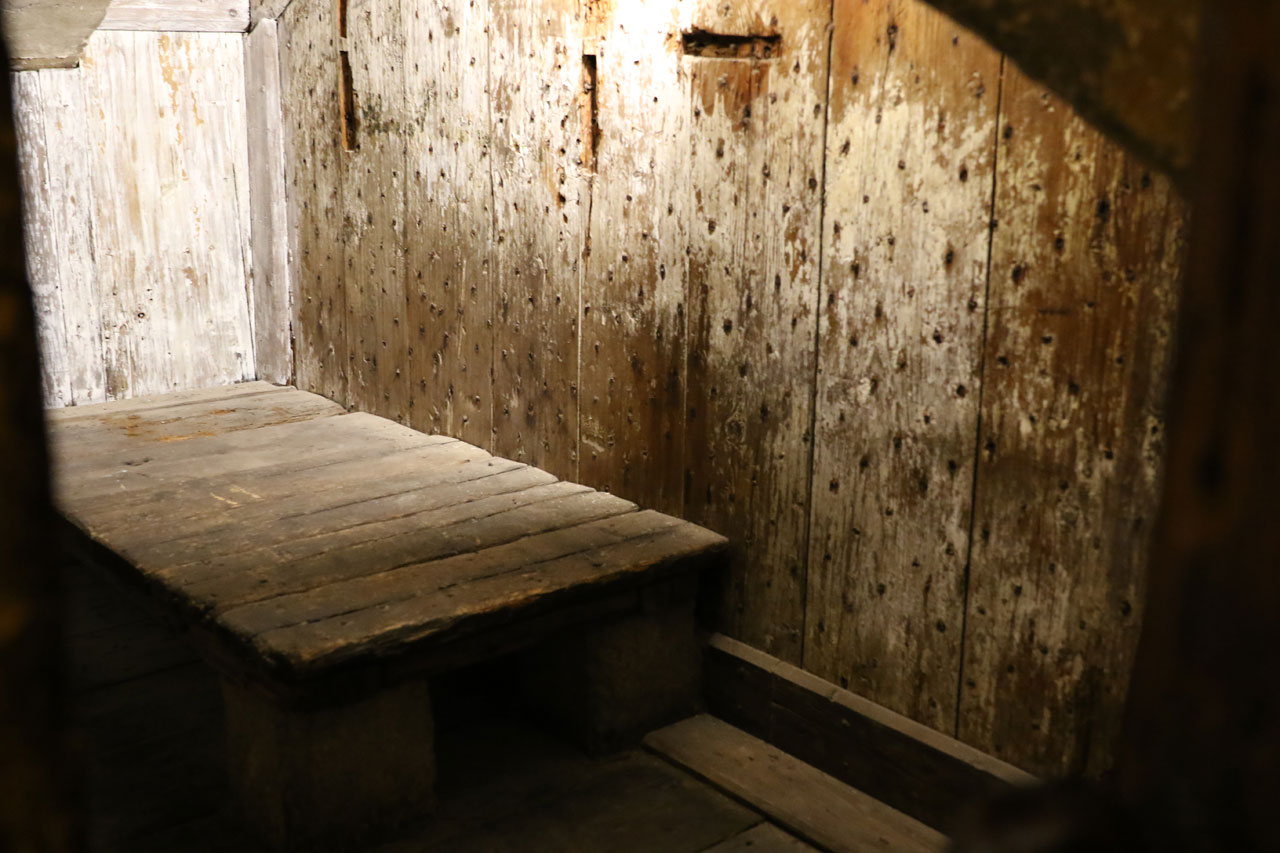 Ce petit tour d’une heure vingt environ débute dans les prisons basses du palais des Doges, au niveau de l’eau. Il y a des cellules de standing prévu 5 à 6 personnes avec aucun mobilier, juste un seau pour « la vidange » et une meurtrière avec vu sur le mur d’en face. Grand luxe donc. En remontant, nous traversons de minuscules pièces ayant fait office de bureaux pour l’administration vénitienne du temps des doges. La visite traverse plusieurs salles de conseils, de réunions dans lesquelles on entend parfois les visiteurs suivant la route « normale » de l’autre côté du mur. Rigolo. On enchaîne ensuite avec la salle de torture du palais. Rien d’ostentatoire: une corde pour attacher le pécore, une poulie pour le suspendre, quelques cellules autour pour que les copains entendent le mec se faire dépouiller les articulations et hop le tour est joué. Toujours plus haut dans le bâtiment, sous les toits pour être précis, on peut voir la cellule de Casanova. C’est un peu le clou de la visite car l’explication de son évasion vaut son pesant de cacahuètes. Je ne vous en dirai rien, non pas parce que je n’ai pas écouté mais parce que vous n’avez qu’à lire le bouquin racontant ses aventures, tout est dedans. On passe encore en revue quelques pièces avant de réintégrer le cour normal de la visite sous le regard un peu surpris « des autres » qui nous voit sortir d’une porte venue de nulle part.