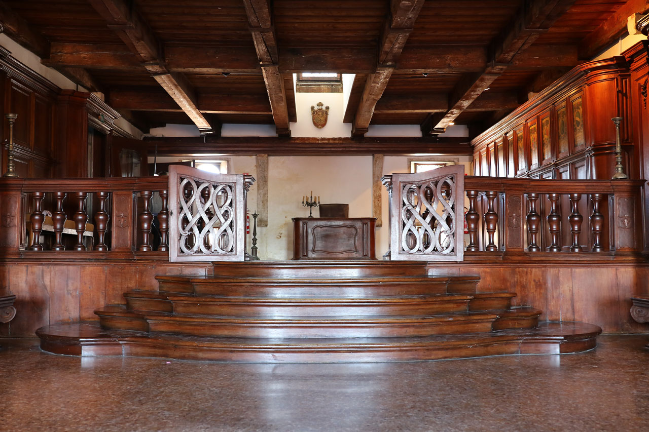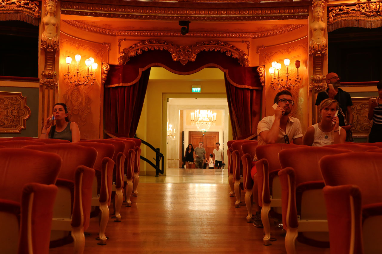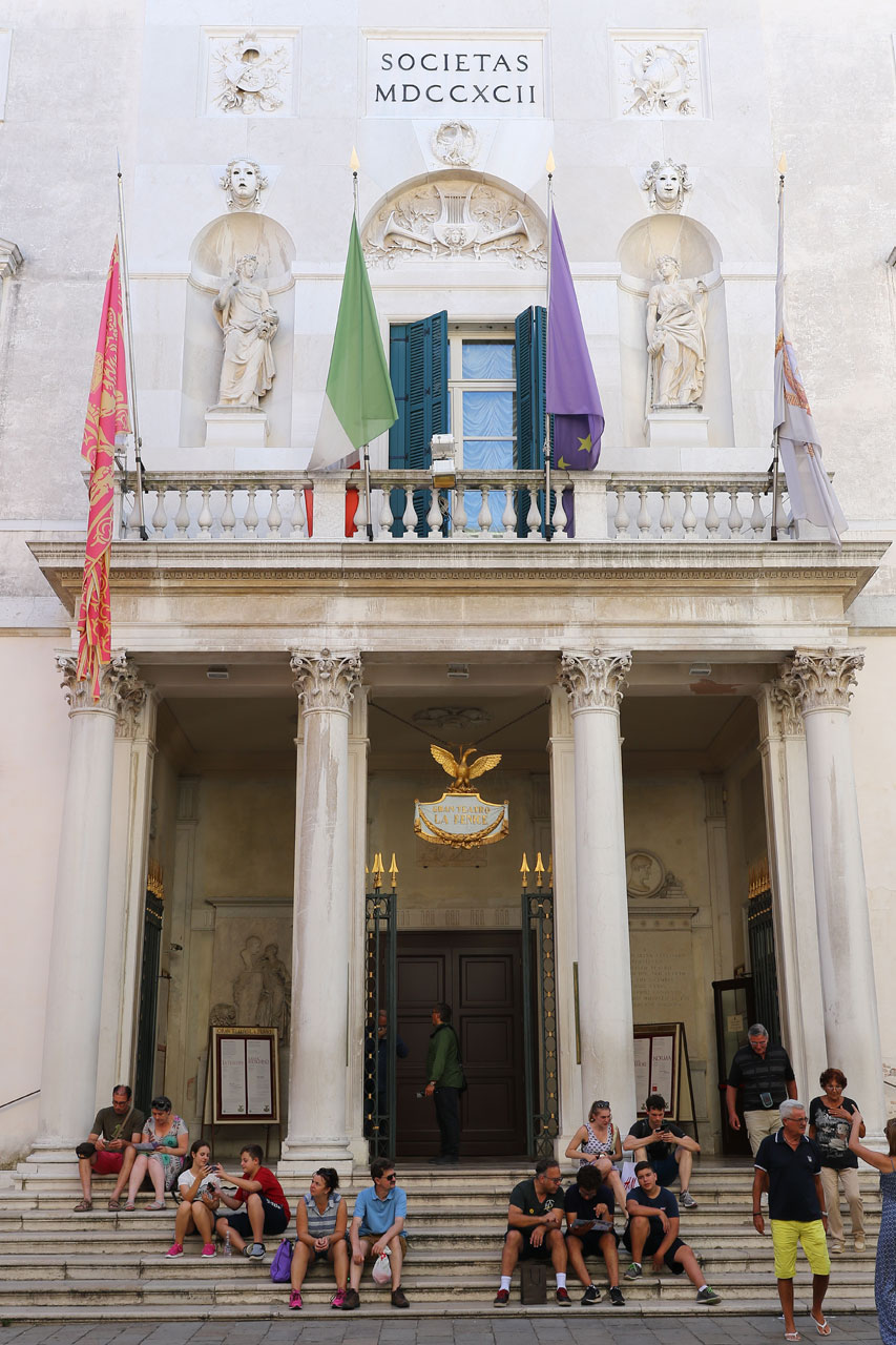 Nous prendrons ensuite la direction de La Fenice, le grand théâtre de la ville. Pas facile à dénicher, même avec un plan, il faut slalomer dans les petites rues pour finalement tomber dessus. Enfin si on a la lucidité de lever le nez car sinon on peut passer devant sans faire attention pensant qu’il s’agit juste d’un n-ième bâtiment à la façade décorée. L’endroit est très beau, bien que la déco soit un peu chargée. On m’a dit dans l’oreillette que c’était de style rococo (Siffredi). Nous y croiserons également Germaine et Lucien Bidochon. Deux français en mode « beauf » qui s’engueulent comme du poisson pourri sans trop se soucier de ce qui se passe autour. Sinon bien le théâtre, visite intéressante, on voit la salle de spectacle, la loge d’honneur, les salles de réceptions annexes mais hélas pas les coulisses.