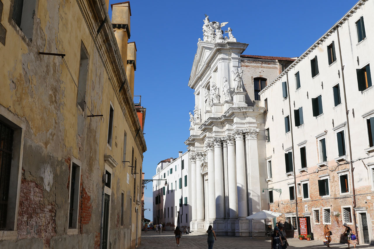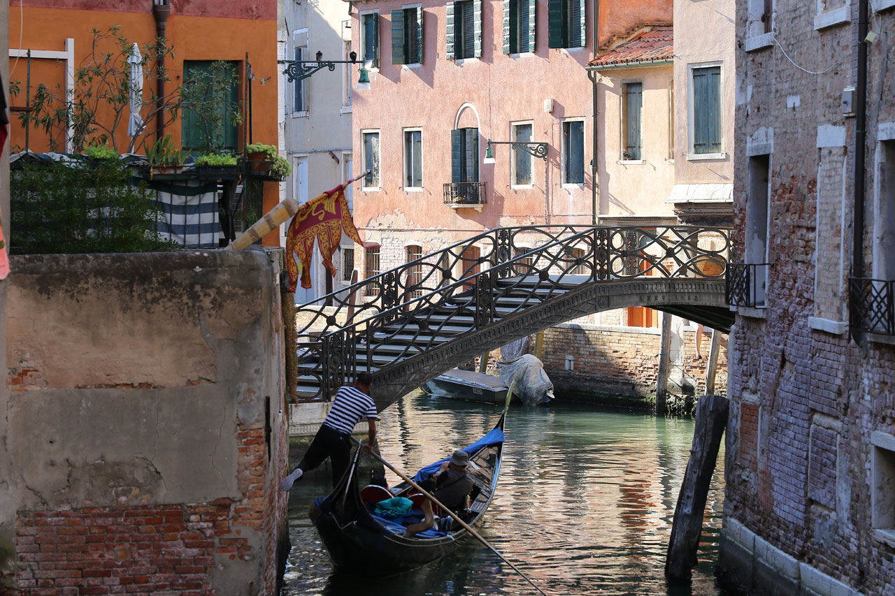 En sortant de là, direction la partie nord de la ville, en quête de calme et d’un peu plus d’authenticité. Pour trouver cela il faudra passer par des rues encombrées de monde, évier des hordes de touristes pris de frénésie photographique pour enfin arriver sur un quai au nord de la ville. Las, l’arrêt de vaporetto le plus proche va nous déverser un flot continu de chinois en mode bulldozer. Nous partirons donc dans la direction opposée et ce sera sans doute une des meilleures décisions de la journée car là, enfin nous trouverons « la vraie ville » avec des quartiers qui ressemblent à des endroits où il y a de la vie. Par vie je veux dire avec de vrais gens qui habitent le coin et pas juste des maisons/palais transformés en hôtels. Le point de repère qui ne trompe pas c’est l’absence de gondoles. Ici juste de petites embarcations qui servent aux locaux à se déplacer. Idem architecturalement, c’est pareil mais ce n’est pas pareil. On sent une différence.