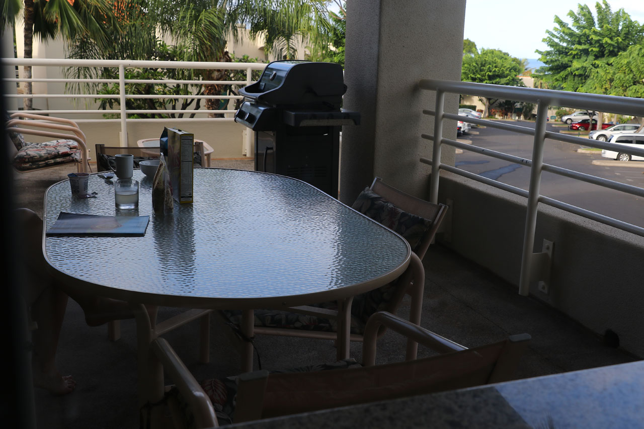 Ce matin, petit déj ‘ sur la terrasse. Autant en profiter puisqu’elle est là. Il est à peine 7h30 et il fait déjà une chaleur pas possible.