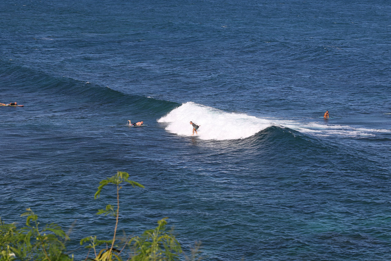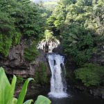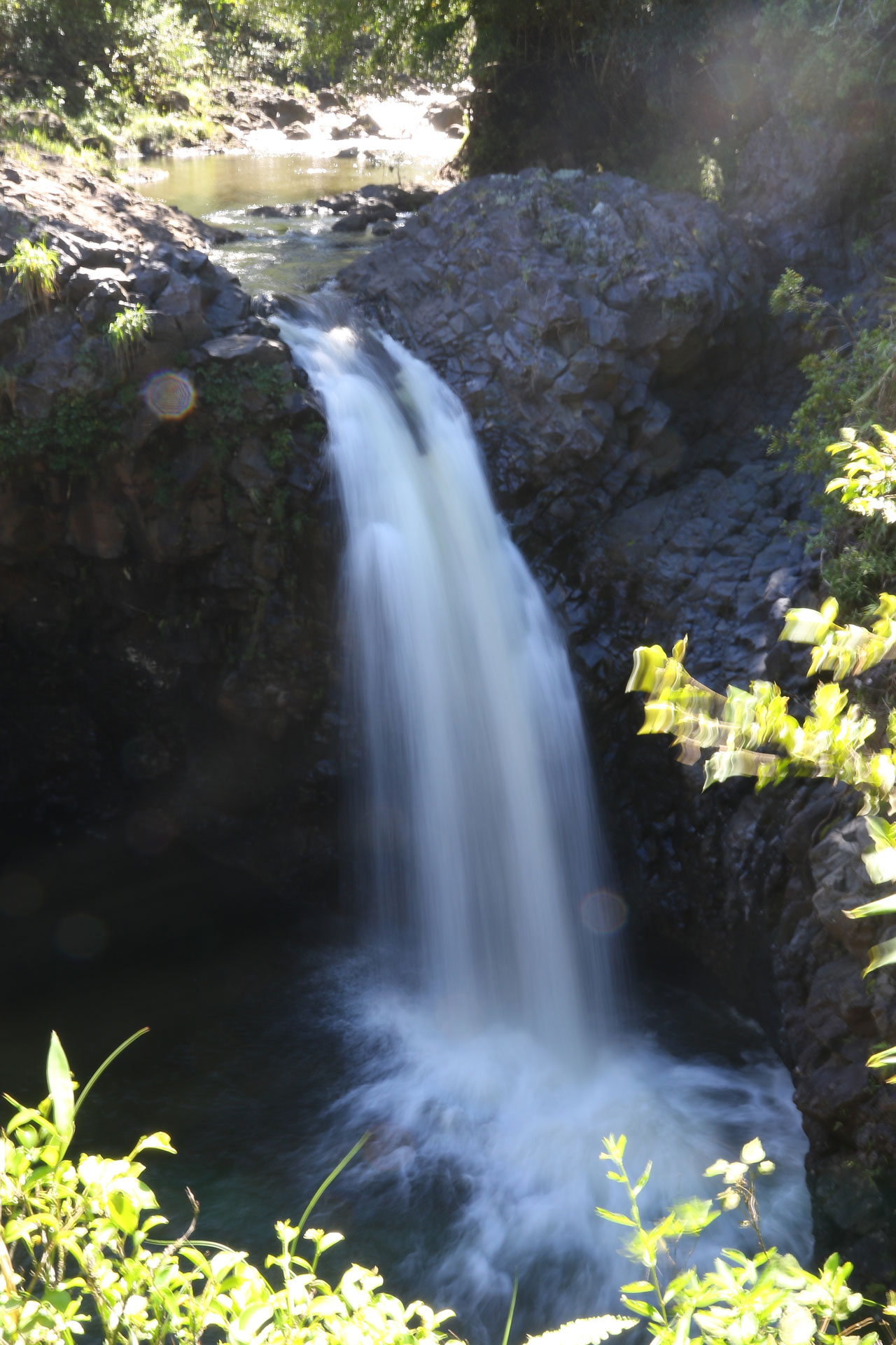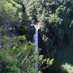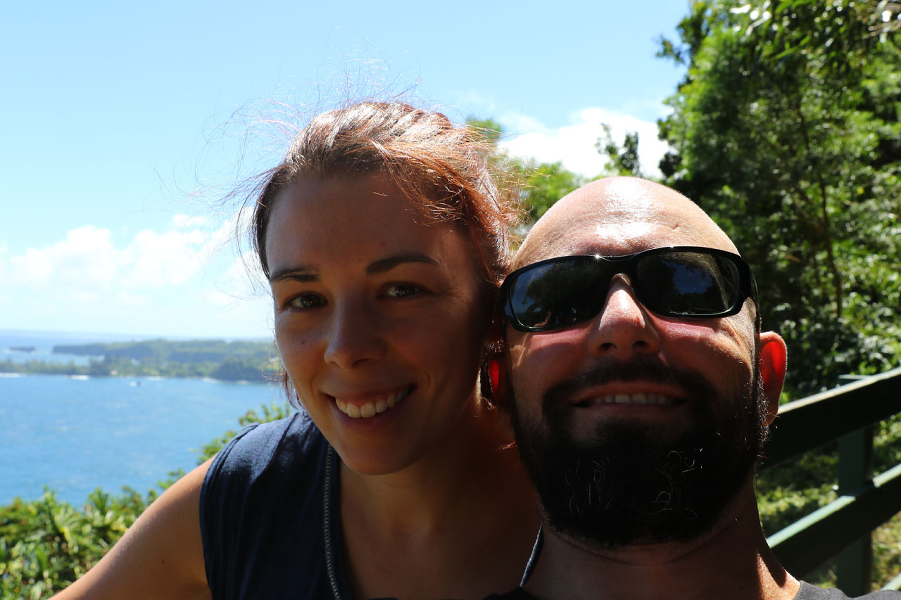 Au niveau de Pe’ahi, nous avons connu notre premier échec du voyage. En effet, je voulais absolument voir Jaws, vague connue à travers le monde pour être une des plus destructrices en matière de surf. Sauf que la vague en question se trouve non pas au bout d’une route mais au bout d’un chemin de terre où seul un tout terrain peut passer. Mais ça, Google oublie de le dire, du coup nous nous sommes retrouvés comme des cons avec une ornière gigantesque devant nous sans pouvoir passer. Il a donc fallu faire demi-tour dans le chemin de terre et continuer sans voir la fameuse vague. Alors oui nous aurions pu nous garer mais ni Aurélie ni moins ne nous sentions de faire 4 miles (allé/retour) pour voir une vague, du coup retour sur la route des enfers.