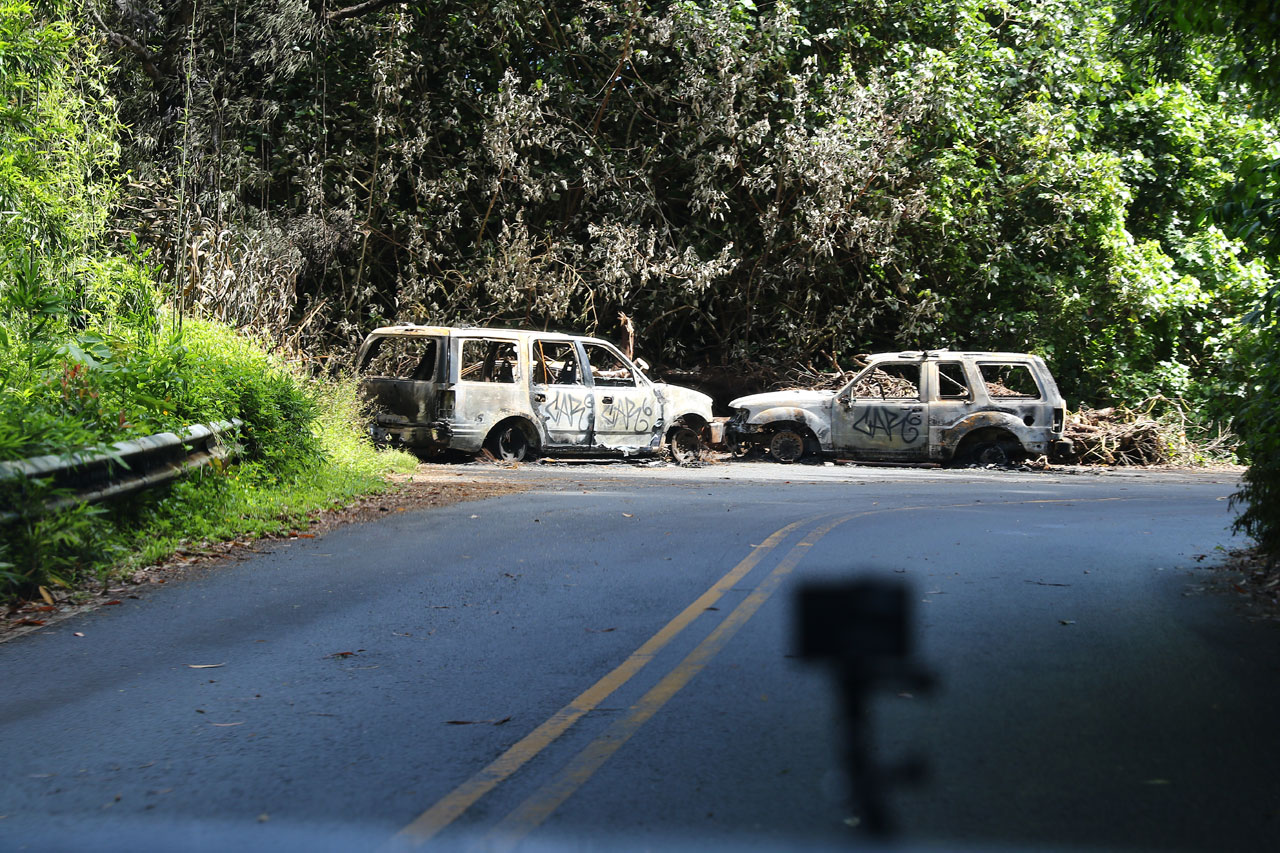 Nous ferons une rapide pause déjeuner devant la plage à Hana, animé par le son des bulldozers réaménageant la dite plage. Grandiose.