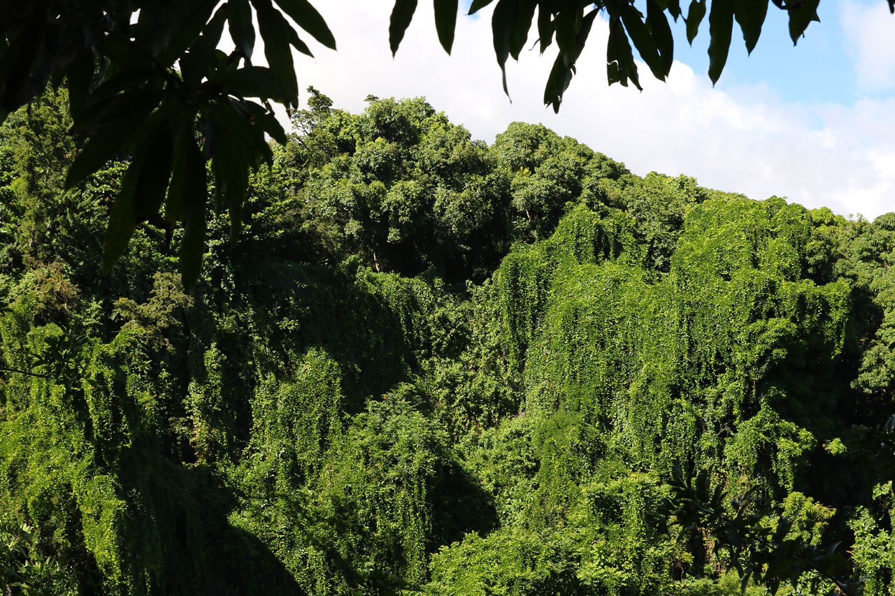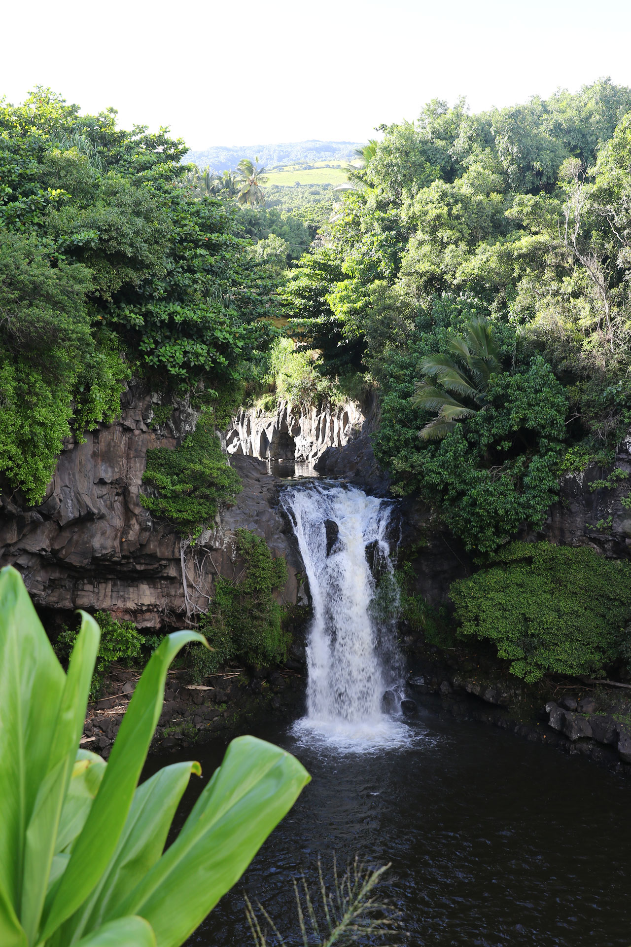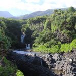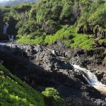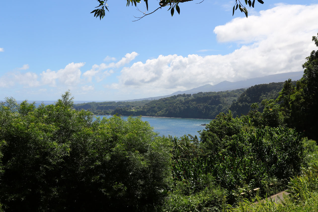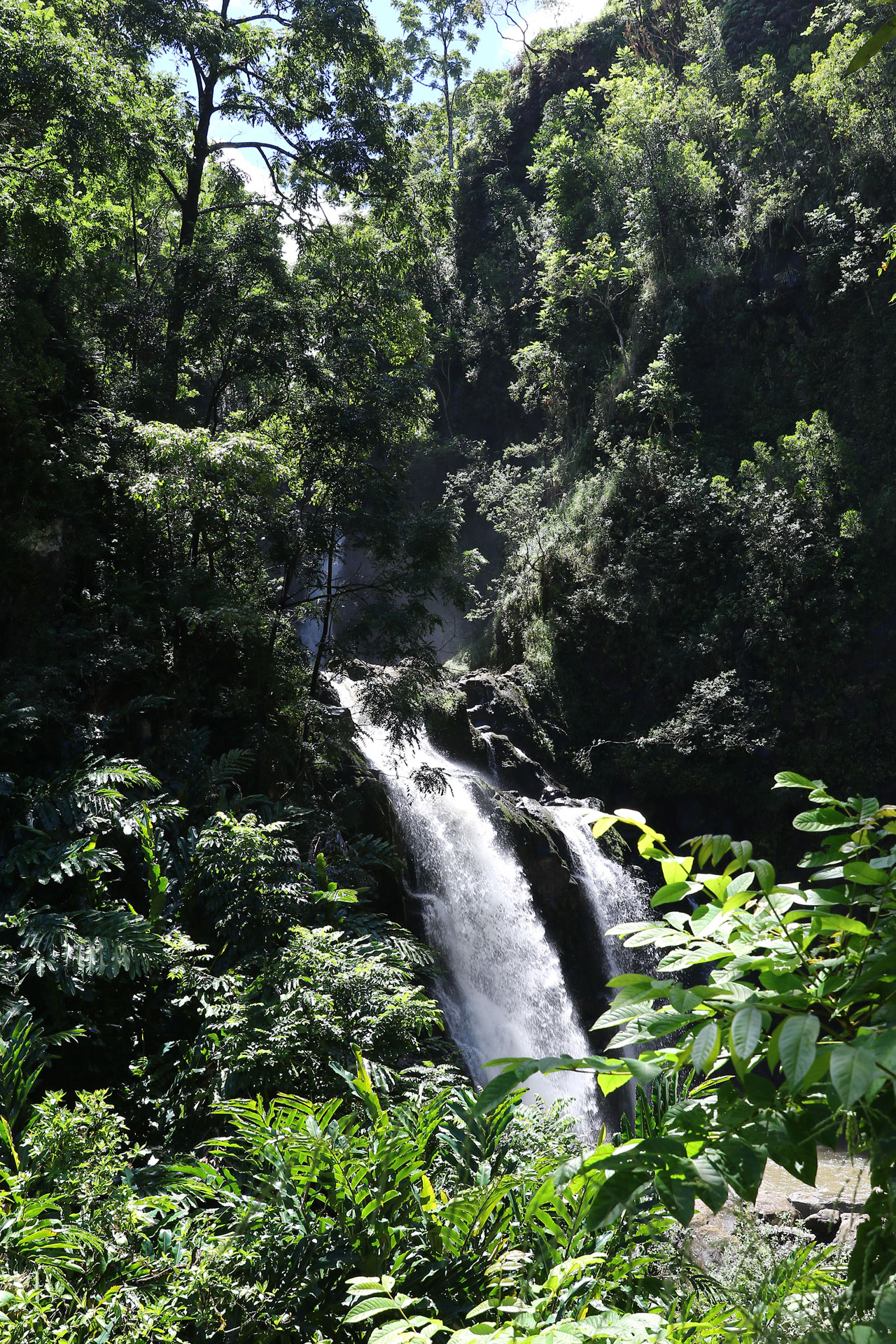 Car la route pour Hana fait parti de ces rubans de bitumes mondialement connus pour une raison ou une autre. Ici il y a environ 620 raisons allant à droite ou à gauche + 46 ponts à voie unique, tout ça serpentant à flan de falaise dans une véritable jungle. Ha oui c’est superbe mais que c’est chiant de conduire là-dedans. On va tout doucement, ça monte, ça descend, on enchaîne les virages aveugles, on doit gérer des touristes inconscients qui marchent le long de la route ou qui manoeuvrent comme des idiots – mention spéciale aux chinois dans un cas comme dans l’autre. Ca plus les locaux qui roulent comme des dingues, les travaux et les camions… Bref on met 4 heures pour faire 84 petits kilomètres. D’autant que nous avons stoppé à différents endroits pour profiter un peu de la vue.