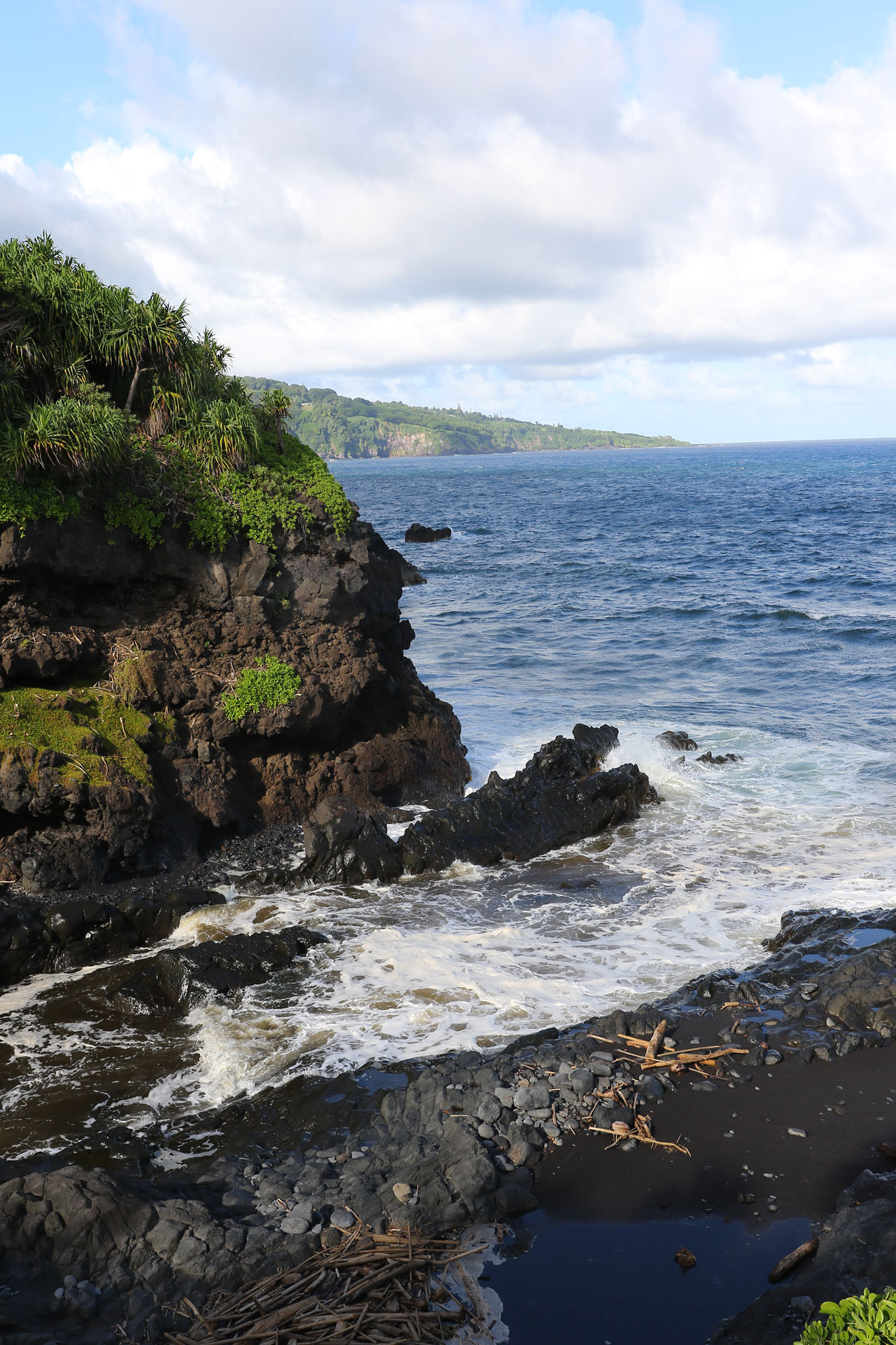 Et puis finalement, au bout d’un moment, le bitume revient. Complètement défoncé d’abord, puis ensuite d’une perfection assez folle sur plusieurs dizaines de miles. Un vrai bonheur après la route des enfers. C’en était d’ailleurs limite piégeux car cela incitait à rouler plus vite que de raison tellement d’un coup, on se sentait en sécurité sur ce revêtement. A ce stade, j’imagine que la grande question que vous vous posez est: est-ce que ça valait vraiment le coup de prendre cette route dégueulasse au lieu de repartir dans l’autre sens? La réponse est OUI! Mille fois oui! La route jusqu’à Hana est rigolote mais la jungle ce n’est pas trop notre truc. En revanche, la vue plongeante dans l’océan depuis la montagne, les falaises, bref tous les paysages de cette seconde moitié de trajet valent 10 fois tout ceux de la première moitié. Enfin c’est joli aussi mais c’est différent et la seconde partie nous à bluffer. Comme nous ne pouvions pas nous arrêter, j’ai profité d’une pause pour fixer la GoPro sur le capot et j’ai laissé tourner jusqu’à ce que la batterie lâche. Il doit bien y avoir 45 minutes d’enfer automobile dans un décor de rêve.