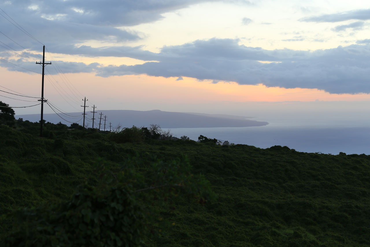 Comble du comble, une fois sorti de là nous réussissons le coup de maître du jour. Nous avons reçu une commande pour du vin à l’ananas – l’ananas de Maui est réputé mondialement. Bref, le vigneron se trouve justement au bout de cette route de fou mais bien entendu, il ferme à 17h30. Comme nous sommes partis à 16h30 et qu’il y avait 1h30 de route, nous savions que nous arriverions quand ce serait fermé mais la chance était avec nous. Nous nous arrêtons malgré tout, apercevant une dame, Aurélie saute de voiture et lui explique notre situation. Pas folle au point de refuser une vente, la nana nous vendra les bouteilles à conditions de payer cash. 5 minutes après nous étions repartis avec notre pinard.