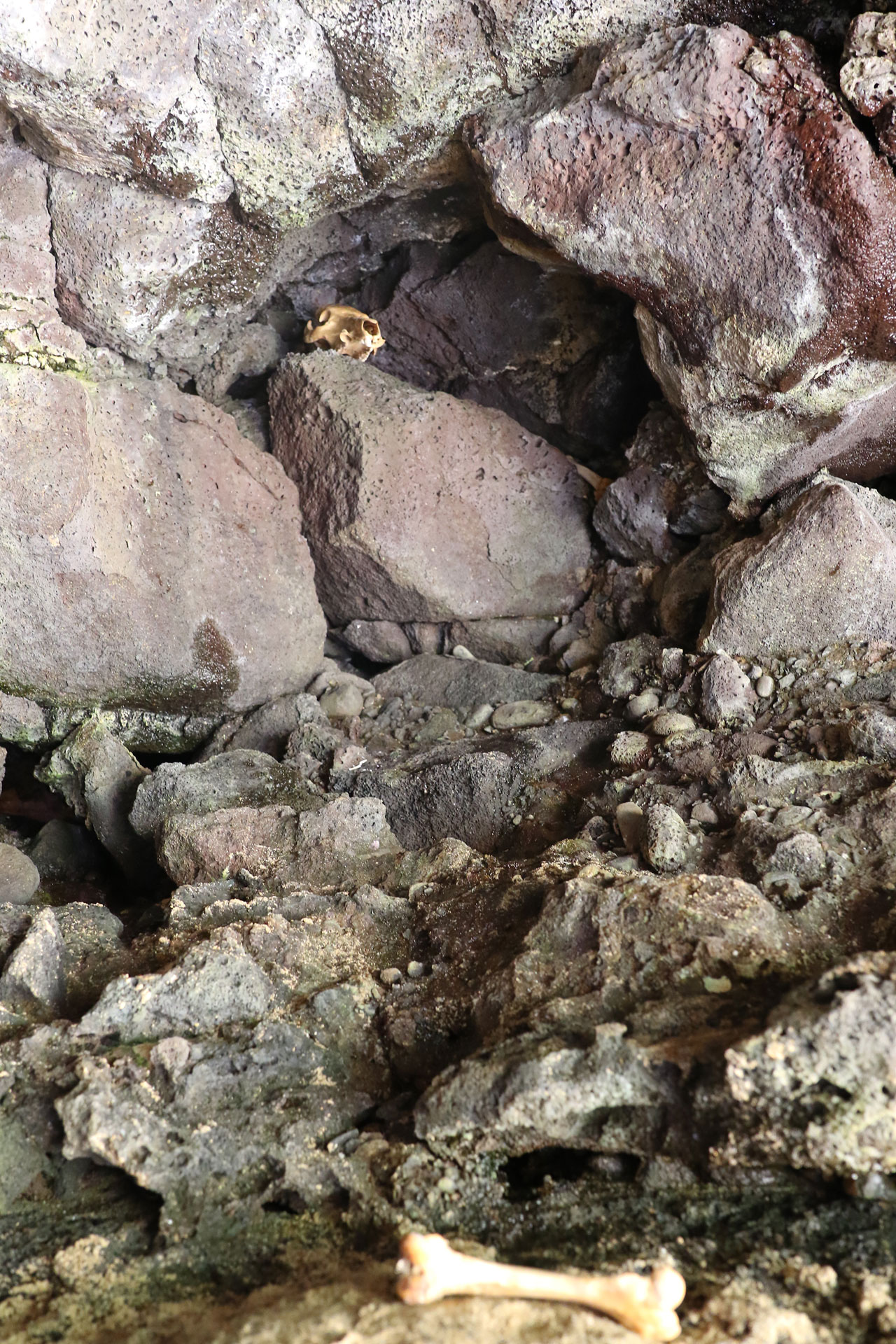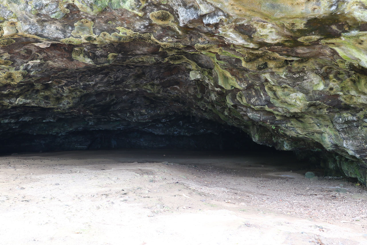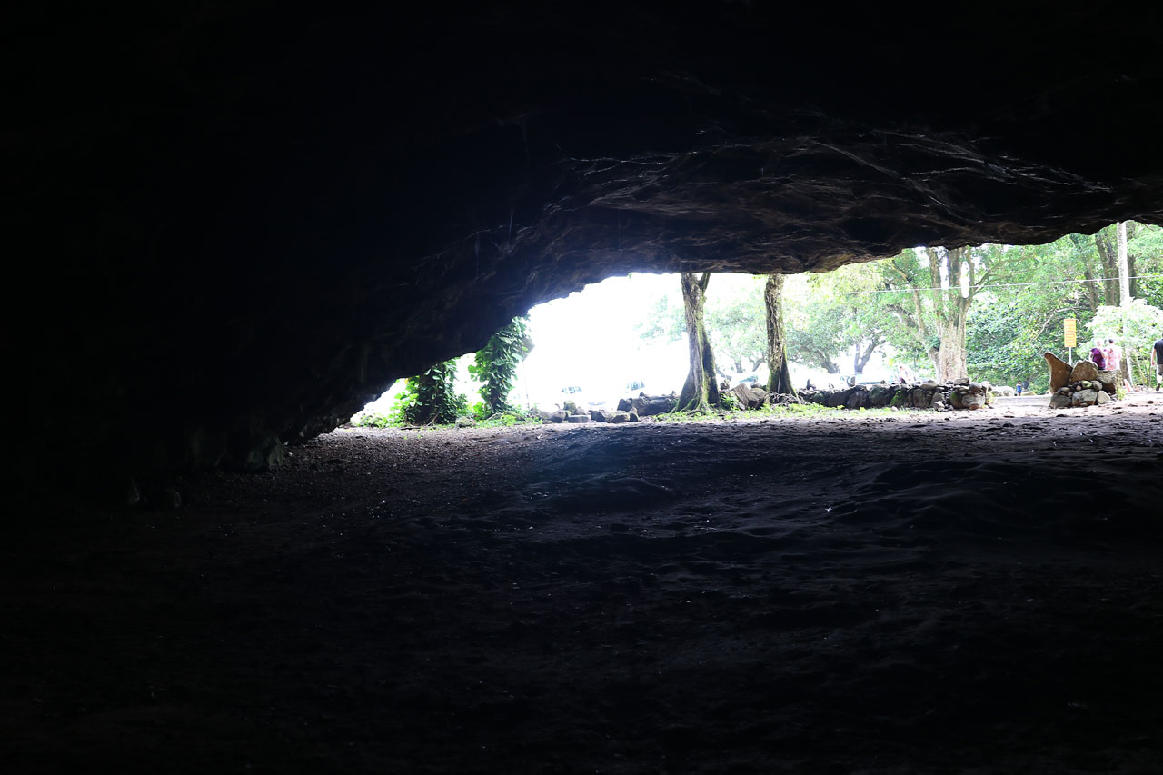 Donc je disais, ce matin, après m’être camé à l’advil histoire d’être un minimum en forme (pour info la boîte de 200 coûte 18€ ici, je dis ça je dis rien). Direction Ke’e Beach d’où part notre rando du jour. Stop en chemin à la Dry Cave, une grotte en bord de route qui comme son nom l’indique est sèche. Cela dit c’est impressionnant de rentrer là-dedans sachant les millions de tonnes de caillasses qu’il y a au-dessus de nous.
