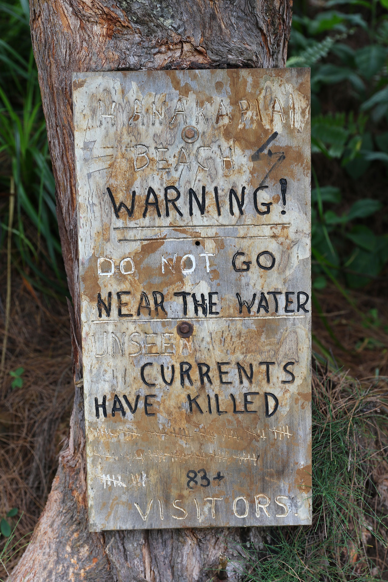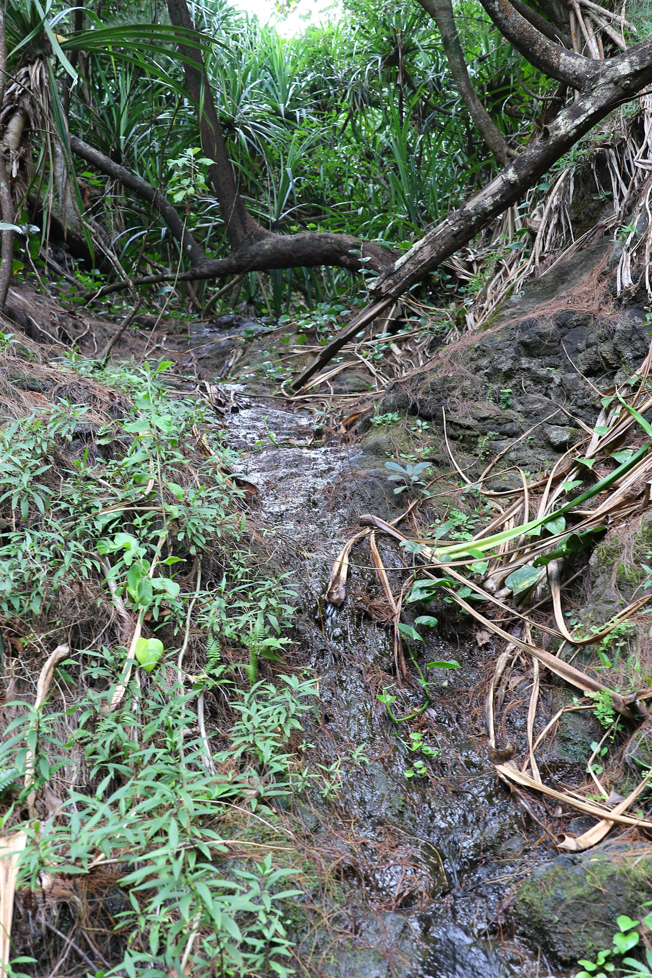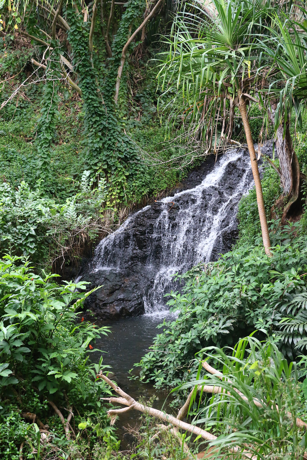 Retour à Queen’s Bath pour un second essai de parking totalement gagnant. Alors Queen’s Bath est une espèce de piscine creusée dans la roche/lave par l’océan car les vagues qui s’y fracassent sont très très violentes. C’est aussi la piscine des jeunes du coin et accessoirement un endroit extrêmement dangereux. Les courants y sont très forts, les changements de niveau de l’eau également et sur le chemin d’accès, on vous dit que c’est très très dangereux, que c’est compliqué pour les secours d’y aller et le nombre de morts qu’il y a eu. Là aussi ça se mérite car le chemin jusqu’au bord de mer est raide et glissant. On crapahute facile 10 minutes dans la jungle.