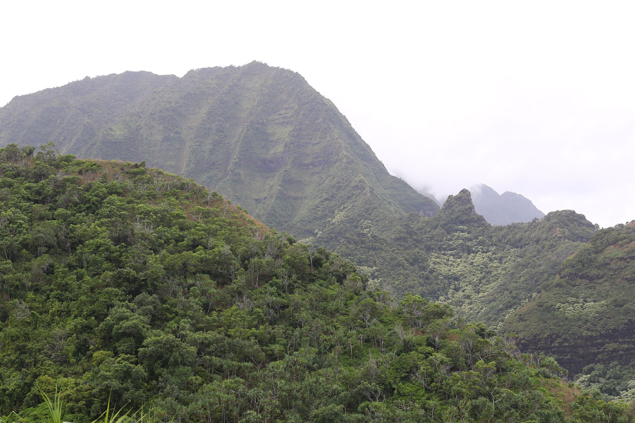 Tout ça pour dire que Kauai, c’est aussi beau que c’est sauvage. Il faut suer pour en profiter ou bien être blinder et prendre des navettes où faire des tours en hélicos. Et c’est vrai pour toutes les îles. J’avoue que de ce que j’en ai vu pour l’instant, Kauai est l’île qui me plaît le plus, c’est aussi celle que j’attendais le plus. Ces falaises qui tombent à pic dans l’océan, ces montagnes infranchissables, cette atmosphère qui nous permet de nous prendre pour Indiana Jones quand on crapahute sur les chemins… en gros ce côté brut et bestial me fait parfois penser à la Nouvelle-Zélande, de là à y voir un lien de cause à effet…