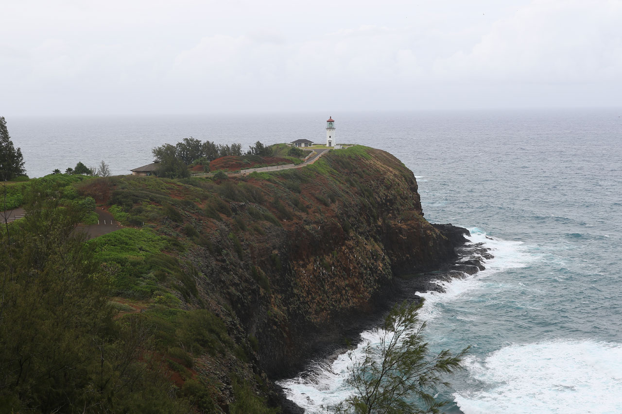 La première tentative à Queen’s Bath ayant été un échec cuisant en terme de parking, nous allons au Kilauea Lighthouse, un bête phare dans un parc national. Bien entendu, ça ferme à 16h, nous n’aurons pas donc le loisir de profiter du panorama que de très loin.