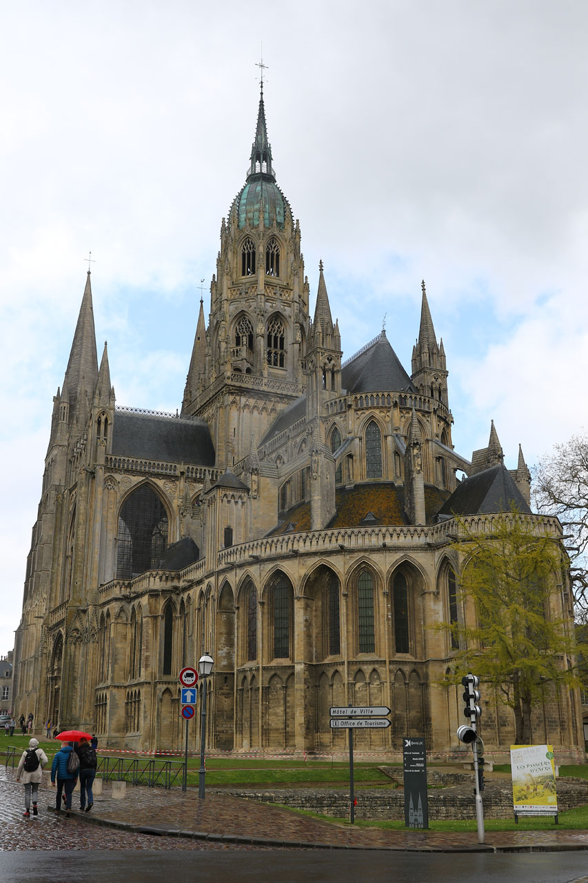 Bayeux donc, ville célèbre pour un bout de tissu vieux de 1000 et quelques années et qui n’a pour elle que le dit bout de tissu et une cathédrale. En dehors de ça, ça se donne des airs bourgeois mais ça pue le piège à touristes.