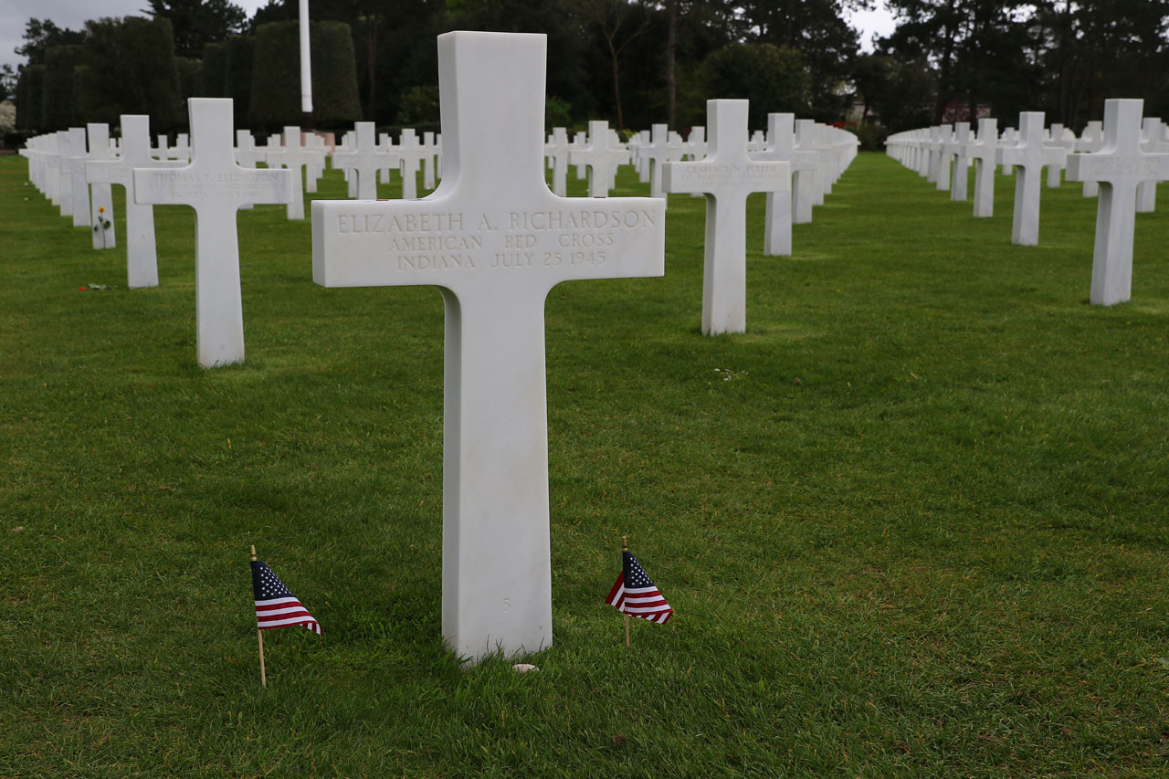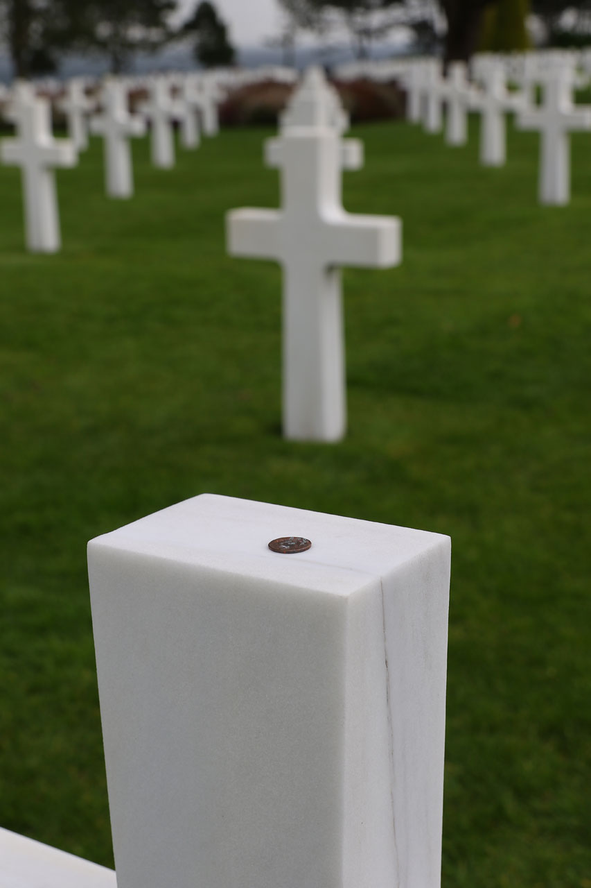 Donc ce fameux cimetière à quelques centaines de mètre de la funeste plage où en juin 1944 a eu lieu un des plus grands concours de ball trap de l’Histoire. Au delà de l’aspect tragique de la chose, l’endroit est joli. Y’a pas à dire, les américains savent rendre les cimetières sexy. 9000 tombes alignées au cordeau mélangeant les religions, les gradées, les hommes et les femmes.