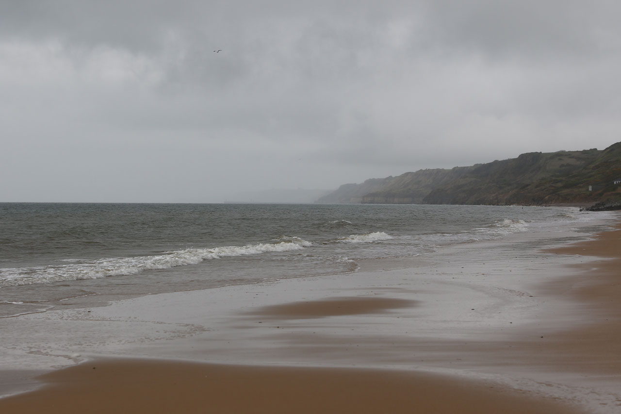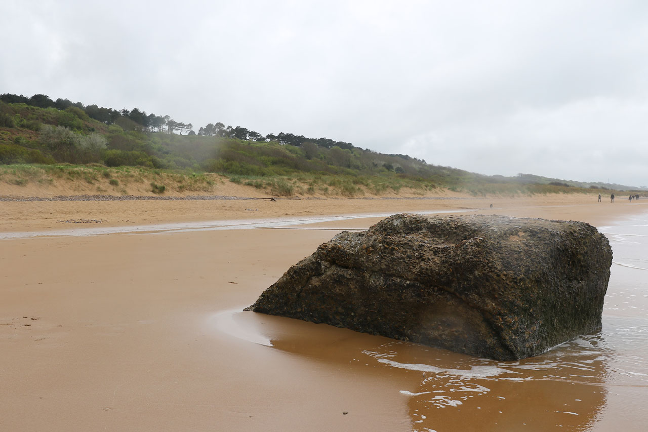 Après avoir traverser le cimetière, nous descendons sur la plage histoire de voir d’en bas ce que ça pouvait donner en débarquant là. M’est avis que les premiers à sortir des barges faisaient de jolies cibles et que sortir de l’eau en vie était déjà un miracle en soit. Alors traverser la plage en courant avec les fringues trempées et tout le barda sur le dos avec Gunther qui arrose à la mitrailleuse depuis son bunker… autant faire un foot sur le périph’ en heure de pointe. Mais ça, j’ai envie de dire que comparer à la pointe du Hoc, c’est presque facile.