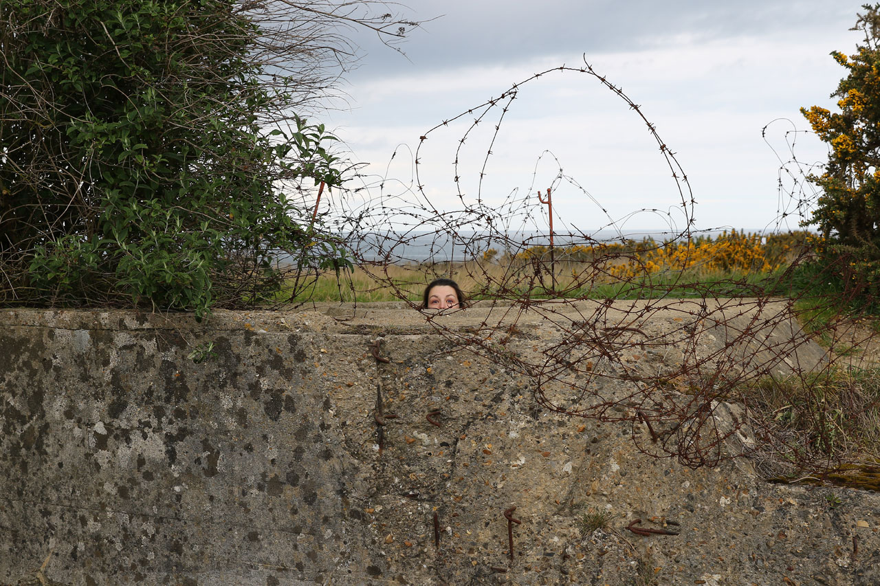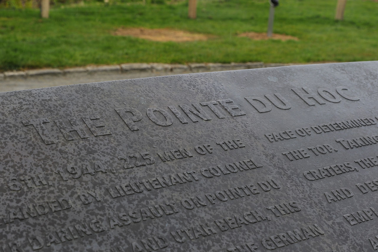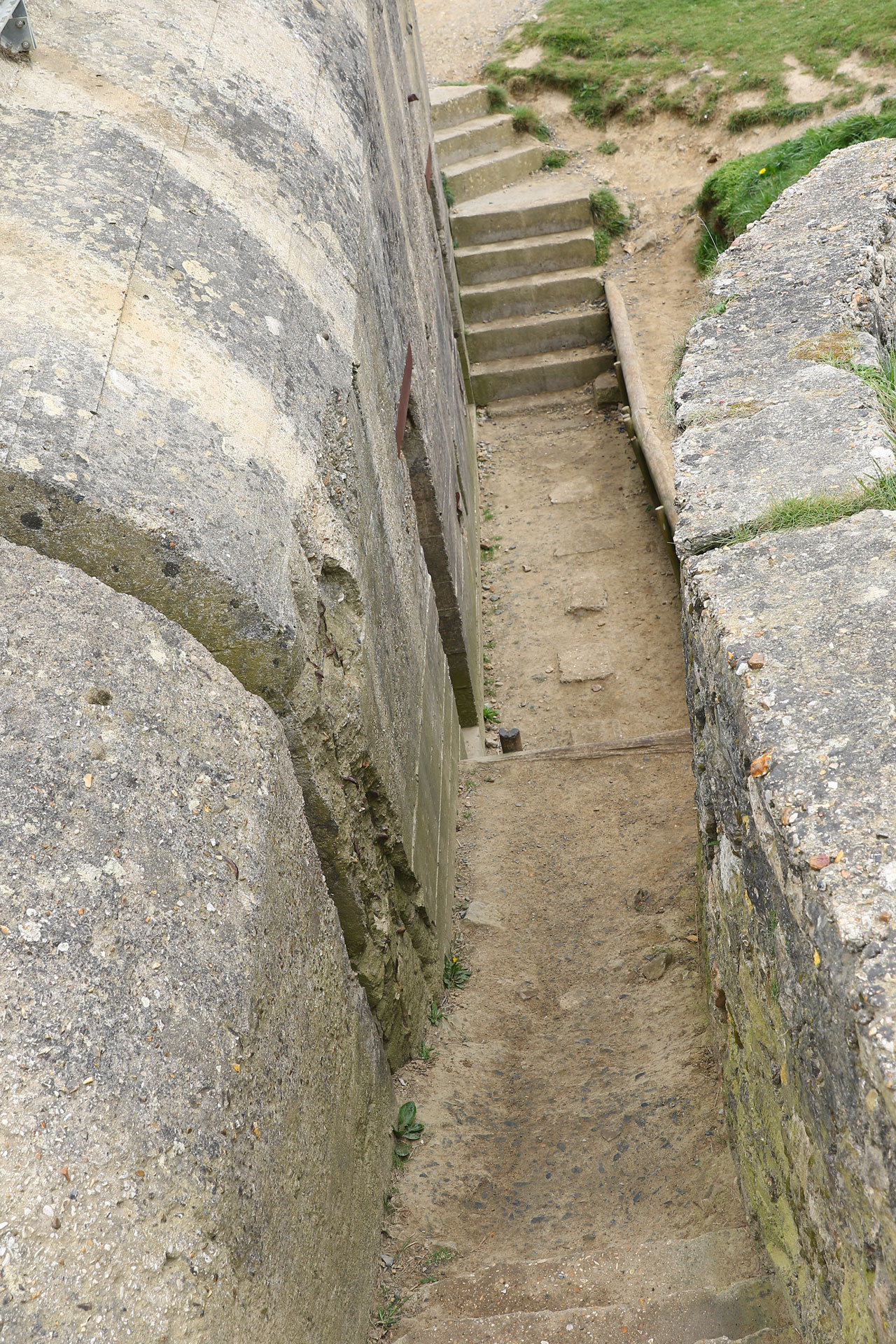 La pointe du Hoc fut notre destination suivante. Encore une fois l’endroit est très chouette, la vue imprenable sur la mer. Mais sur le bord, c’est un gigantesque champ de patate avec des cratères d’un fort beau gabarit et des bunkers dans des états de conservations divers et variés. Certaines n’ont plus que les fondations, d’autres les murs et certains ont eu droit à de l’entretien et on peut y entrer – notamment dans celui qui se trouve au bout de la pointe. Comme je le disais plus haut, ceux qui ont débarqué là, dans le genre « pas de bol » ils avaient tout gagné. La plage fait au grand max à marée basse 10 mètres de large mais surtout, ils ont eu 30 mètres de falaise à grimper pour se retrouver nez à nez avec Gunther et sa mitrailleuse. Si jamais Gunther n’avait pas déjà eu leur peau en les canardant depuis le haut de la falaise. Là on se rend bien compte du merdier que ça a du être. Tout est plus concret.