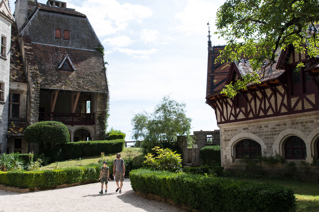 Nous mettrons ensuite le cap vers la Rochepot, connu pour… son château. Lui aussi était dans La Grande Vadrouille paraît-il. Bref. En chemin nous passerons par Melin et Baubigny qui, contrairement à leurs homonymes parisiens, sont bien plus bucoliques. Une fois au pied du château, nous sommes surpris par le monde, des voitures garées partout et il semble que se garer va être une galère. Après un premier tour infructueux, je tente un demi-tour dans un champ en prenant soin de drifter sur 10 centimètres, retour sur la route et là… Pépé et Mémé et qui montent dans leur Scénic et nous laisse une place à l’ombre.