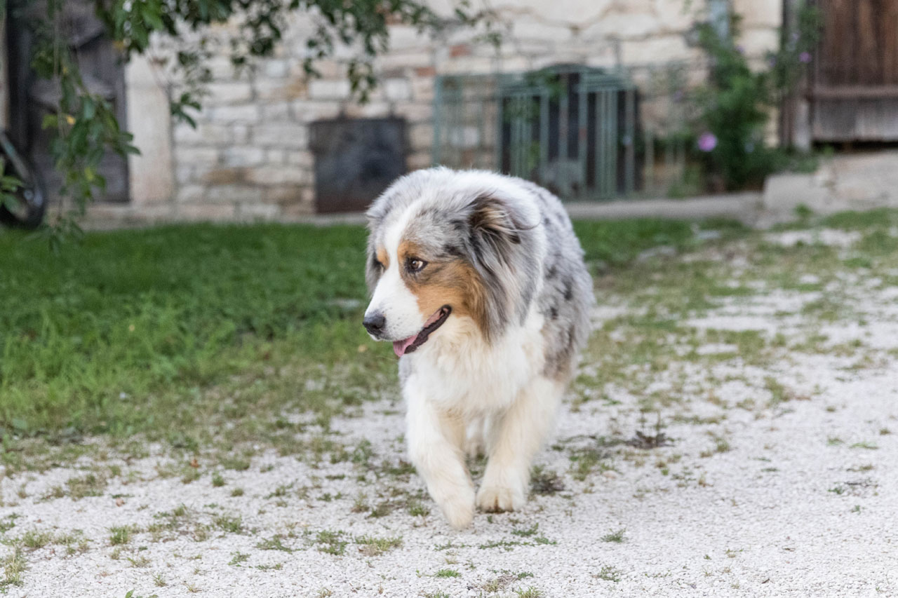 De retour à notre petit moulin, nous terminerons notre week-end au calme. Aurélie côté terrasse avec son bouquin, moi côté jardin avec mon appareil photo à chasser les grenouilles, les libellules… et les bergers australiens.