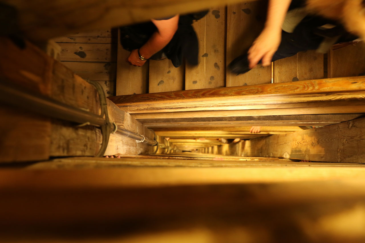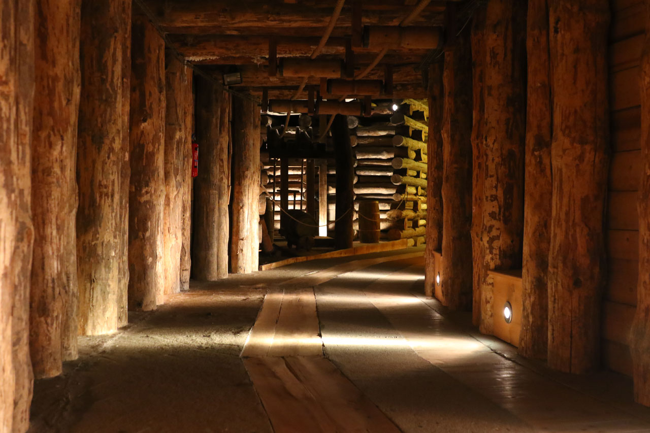 Cependant le point culminant de la visite – si j’ose dire – c’est la remontée. On nous fait prendre place dans des ascenseurs ayant servi pour l’exploitation de la mine. Une vrai truc de mineur, exigu, claustrophobique, bringuebalant, pas stable en apparence. Une petite quarantaine de seconde d’angoisse pour moi. Des fous rires pour les autres. Que j’étais content de sortir de cette boîte.