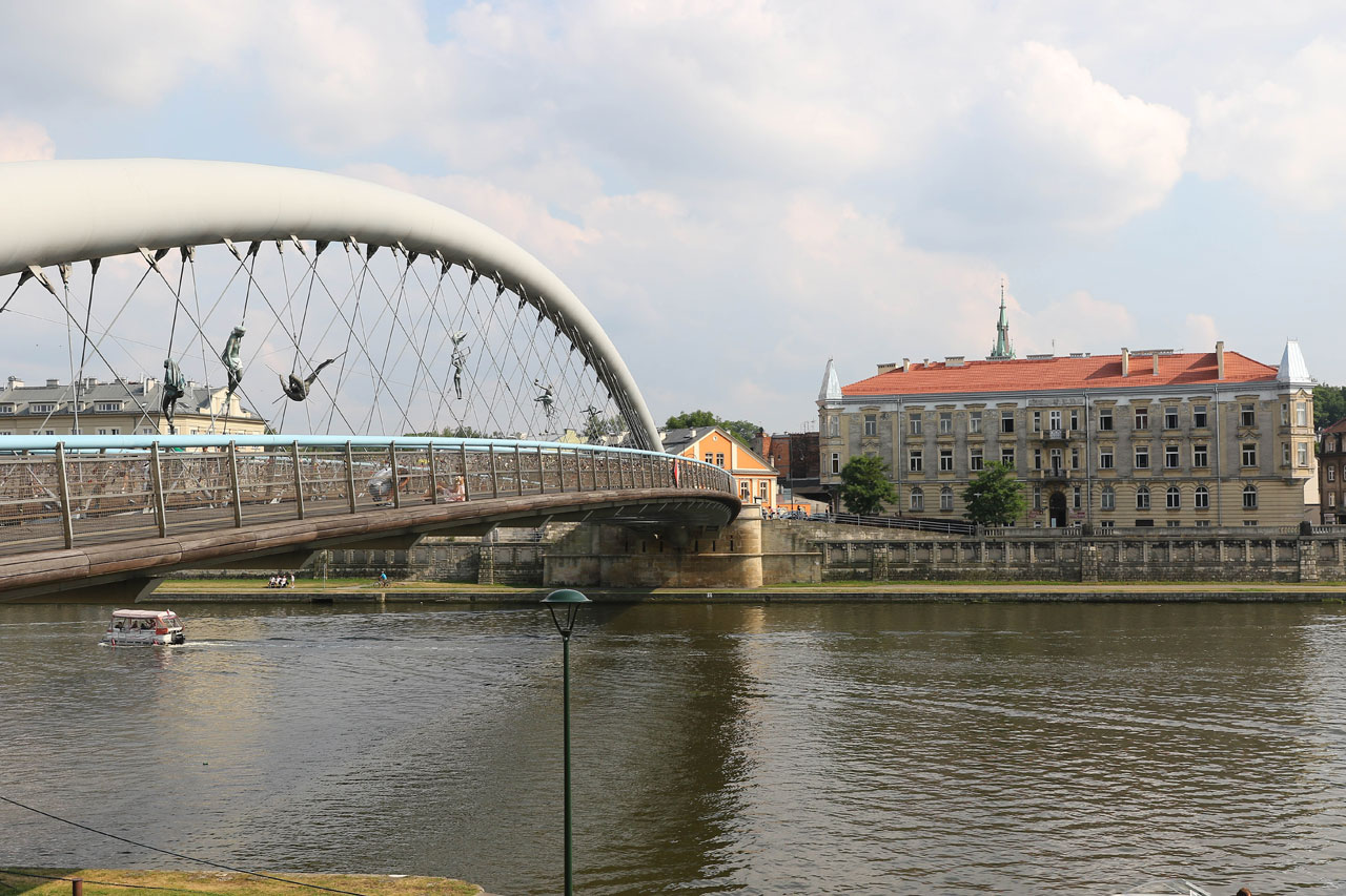 Après une heure de persévérance, nous abdiquons et décidons d’aller au point de rendez-vous du loueur de voiture pour rendre cette dernière. Même si le rendez-vous n’est que 4h plus tard. Nous voici donc en route pour l’immense centre commercial jouxtant la gare centrale de Cracovie. J’aime autant vous dire que trouver l’entrée du parking de ce putain de centre commercial n’est pas une sinécure. Entre les travaux, les panneaux pas clairs, le GPS et les polonais, ce fut tendu. Ceci étant dit, le loueur nous avait prévenu que c’était galère. Une fois la voiture garée, petit détour chez Carefour pour acheter de l’eau et constater que plus du tiers de la surface du supermarché correspond au rayon alcool. Ca plus les magasins spécialisés dans les spiritueux à presque tous les coins de rue et quelques épaves échouées sur des bancs: non ce n’est pas une légende ici ça picole en mode hardcore. Nous déambulerons dans les rues de la vieille ville, passerons (par hasard) devant l’ancienne paroisse d’un cureton nommé Jean-Paul, irons traînasser dans l’ancien quartier juif – un peu à l’écart de la masse des touristes, passerons la Vistule sur une passerelle aux sculptures étranges, irons voir une château dont j’ignore le nom puis reviendrons à l’hôtel pour une pause bien méritée.