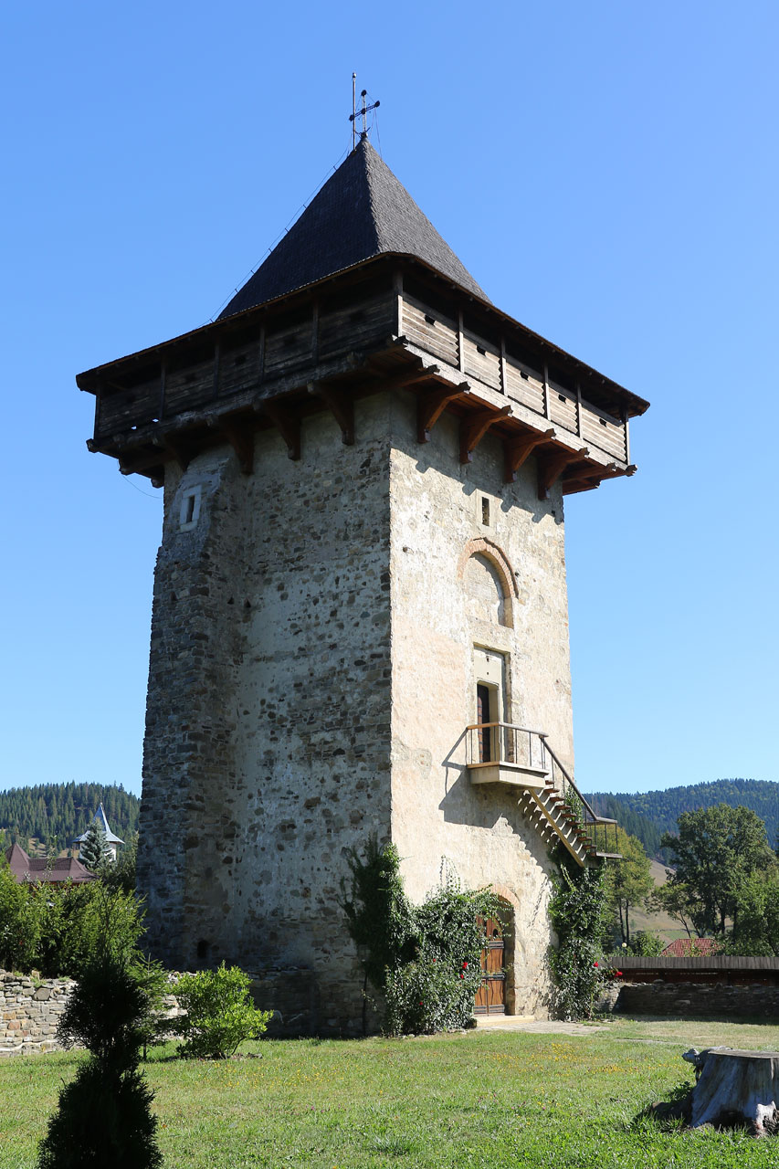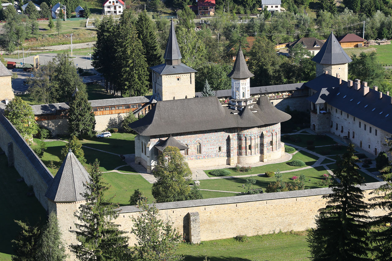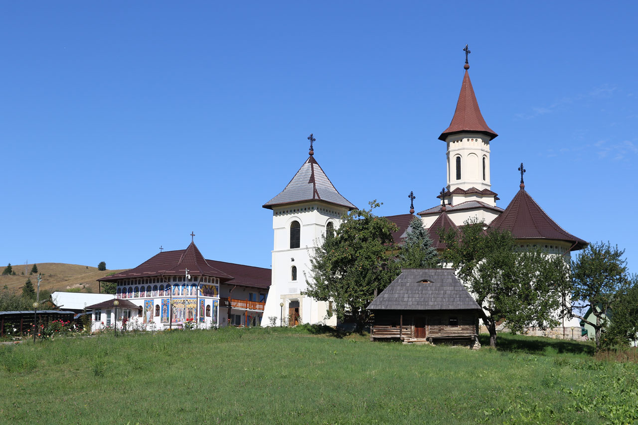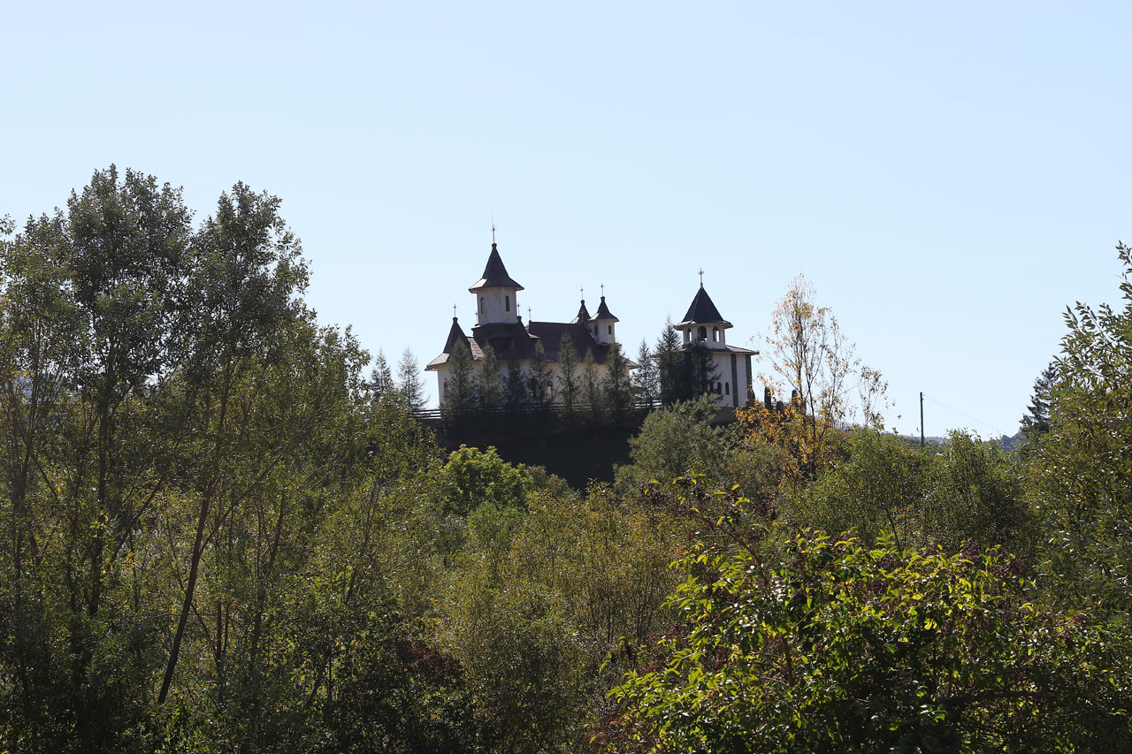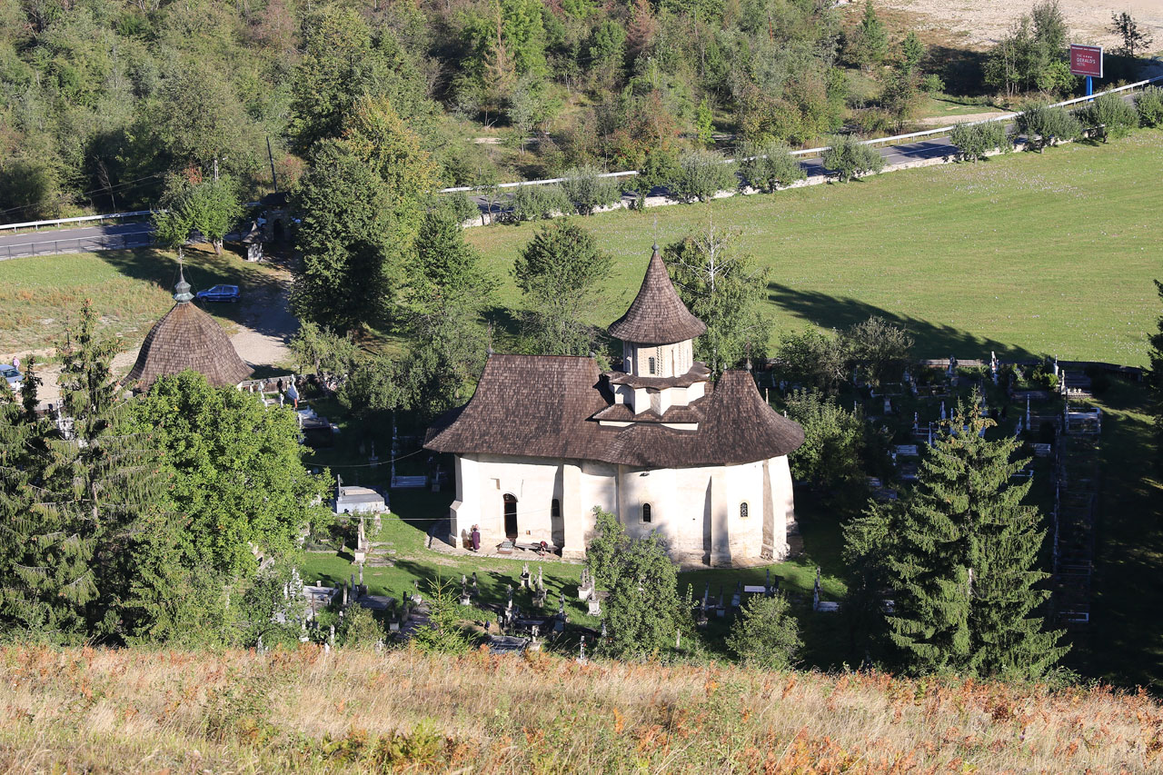 Départ de chez nos gentils petits vieux vers 9h, nous rebroussons chemin jusqu’au monastère de Sucevita et suivons le conseil de nos voisins de tablée d’hier soir en grimpant la colline juste derrière le monastère pour profiter de la vue. La garce était bien raide. Nous avons ensuite pris la route pour la Transylvanie en piquant vers le sud en direction des monastères d’Humor et Voronet.
