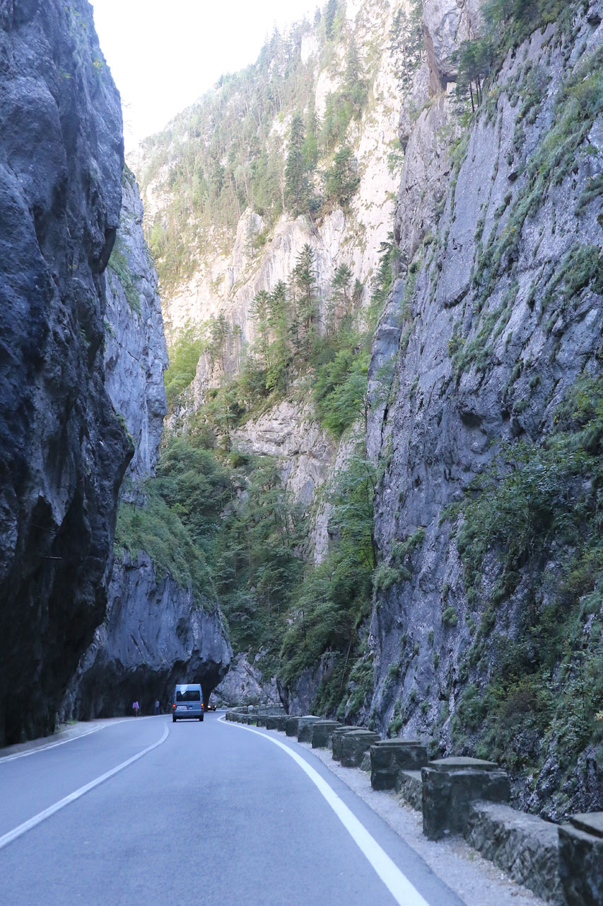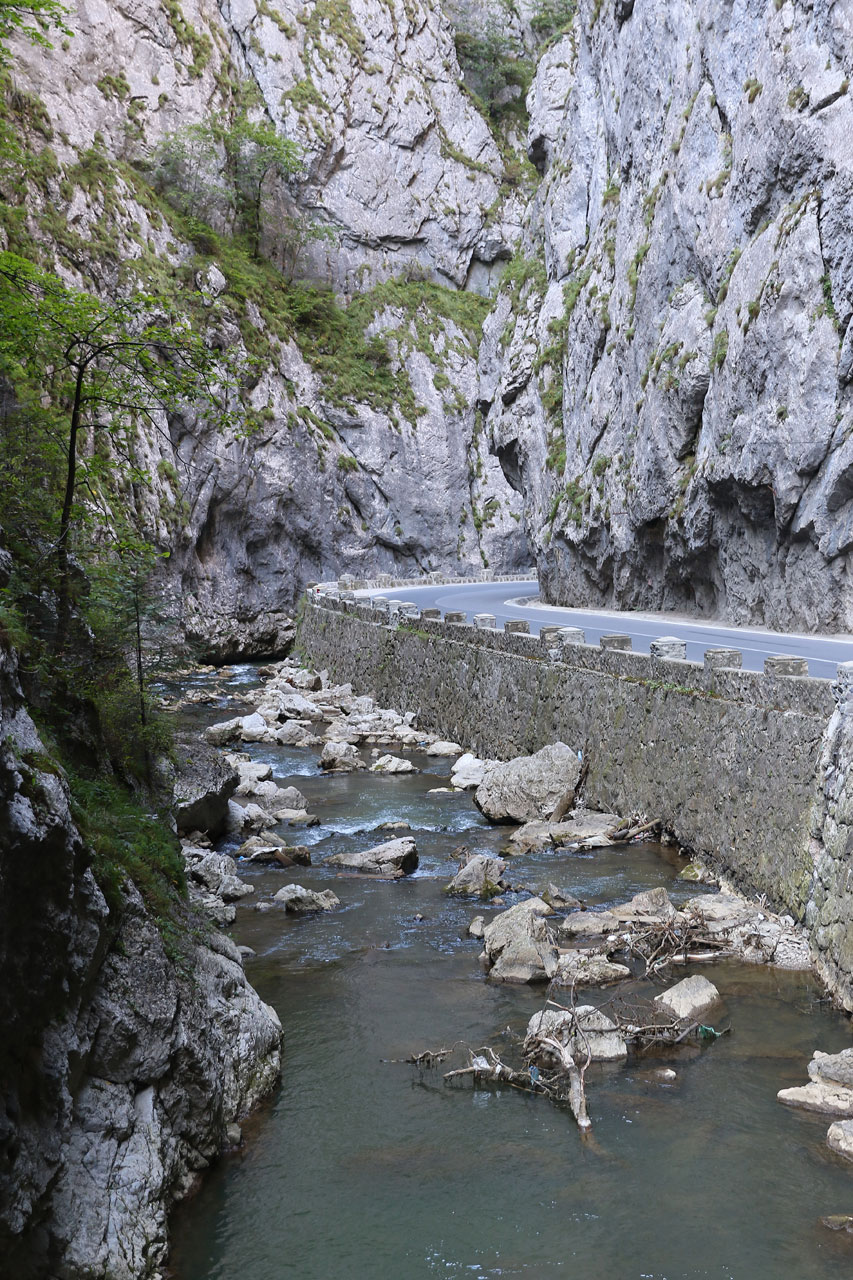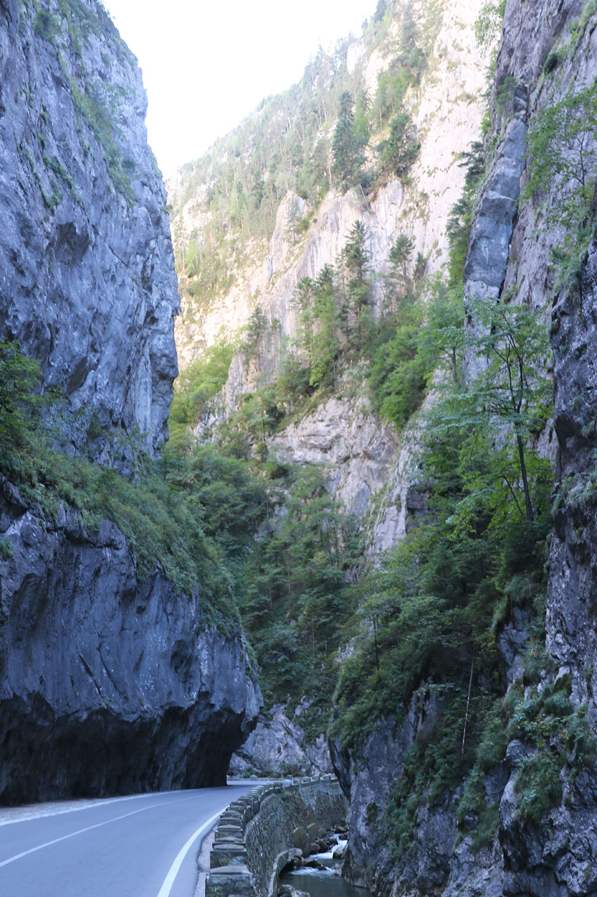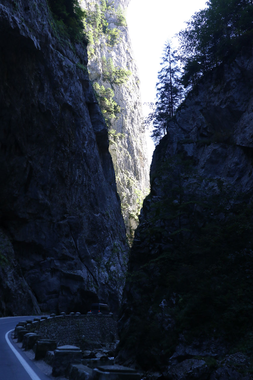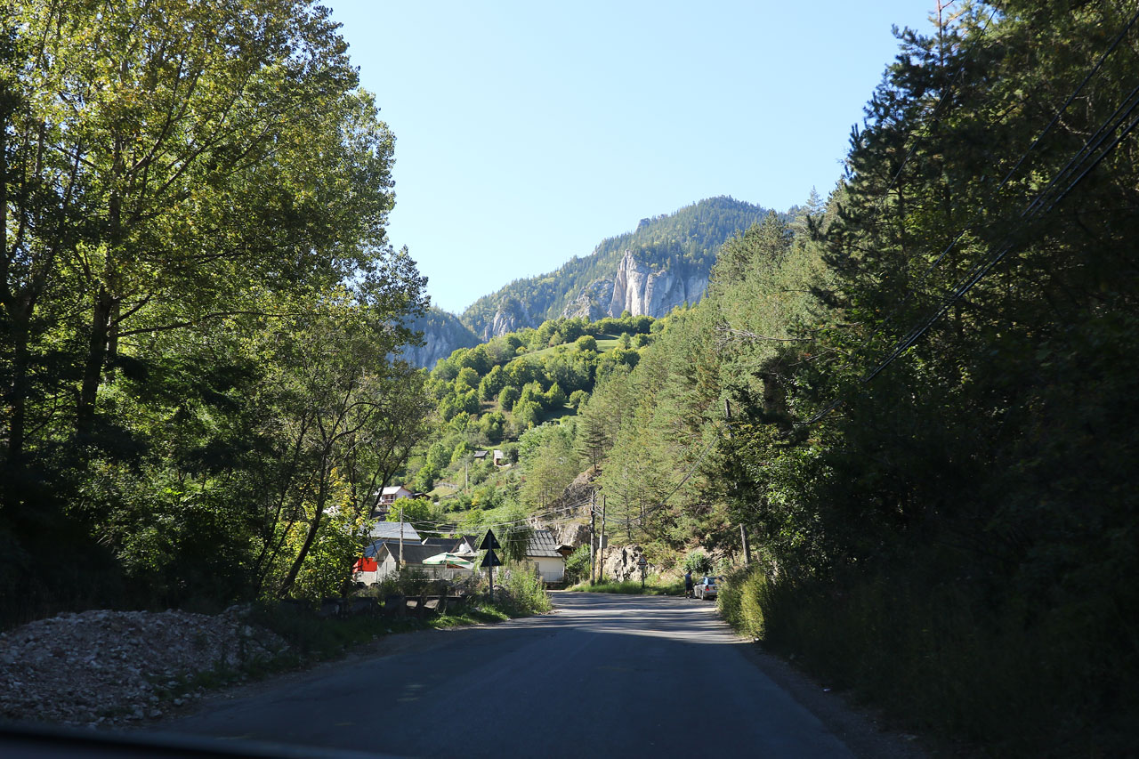 Je venais de laisser le volant à Aurélie après un arrêt pour faire quelques photos d’une petite église sur une colline, nous roulions tranquillement au fond d’une vallée et puis nous nous sommes retrouvées dans des gorges. Nous savions que la route y passait mais nous ne nous attendions pas à ce que se soit si soudain. Aurélie a même stoppé dans un petit recoin pour que nous puissions en profiter à pied en longeant la route sur quelques centaines de mètres. Avec prudence vu les zozos.