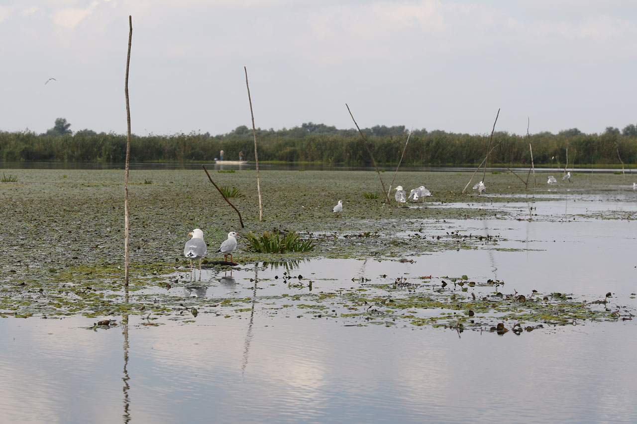 Pas de répit pour les braves, une fois le petit déj’ englouti, nous sautons dans le bateau de notre hôte avec nos 4 allemands et nous partons pour 7h de « croisière » dans les méandres et lacs du delta du Danube pour observer les oiseaux, les grenouilles, les canettes de bières qui flottent etc…
