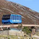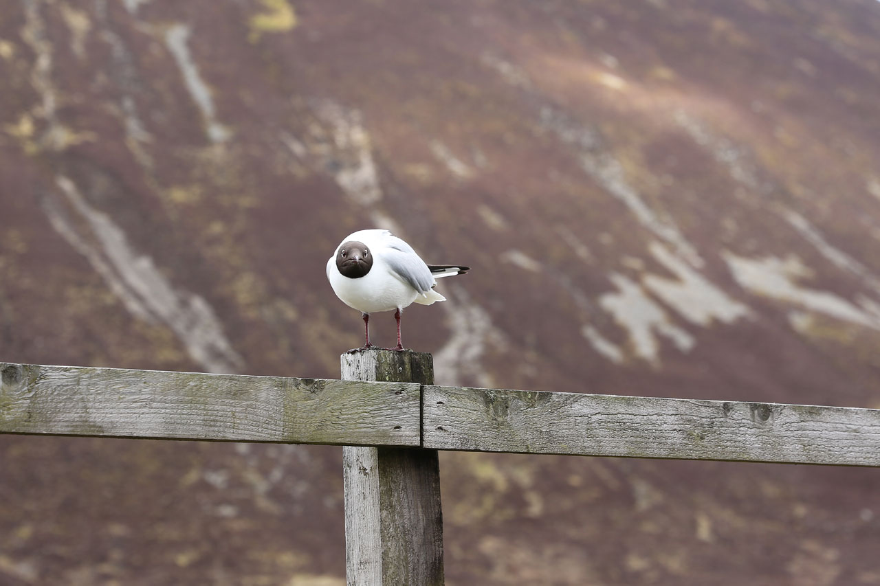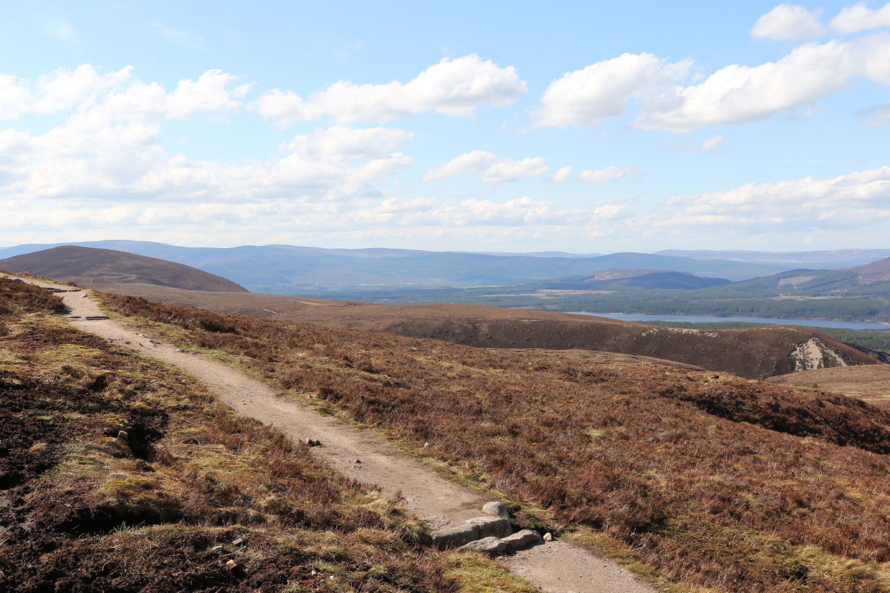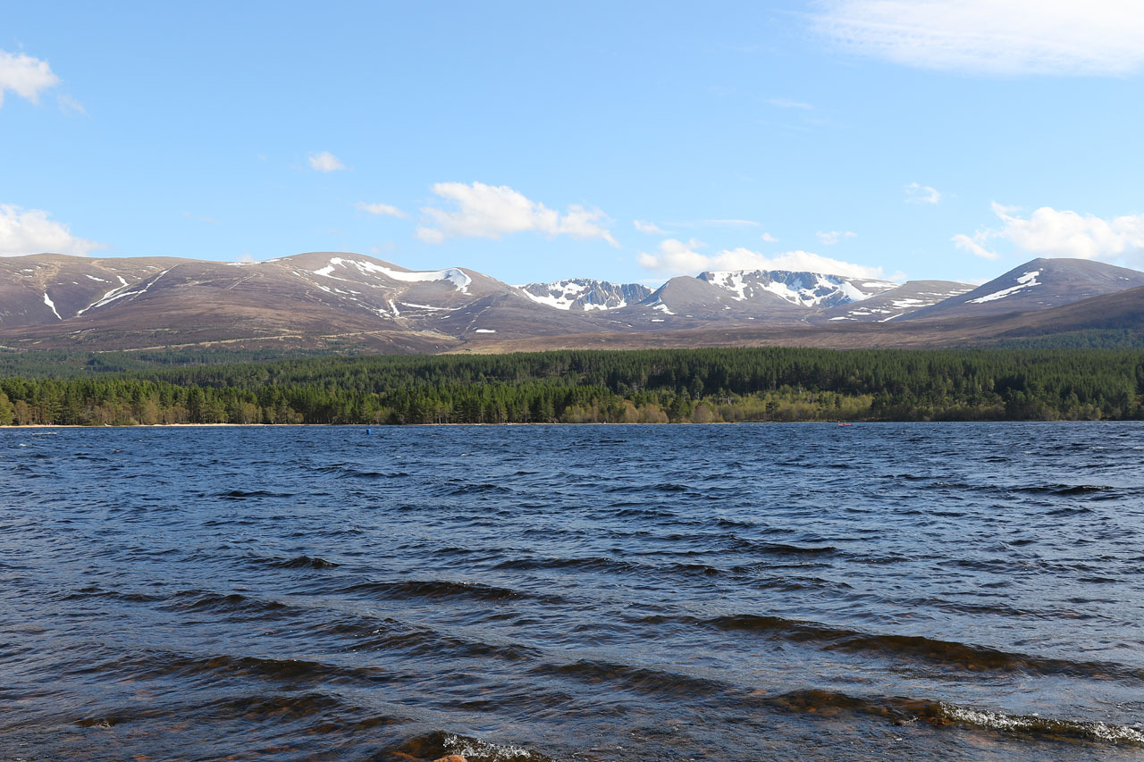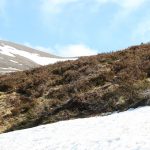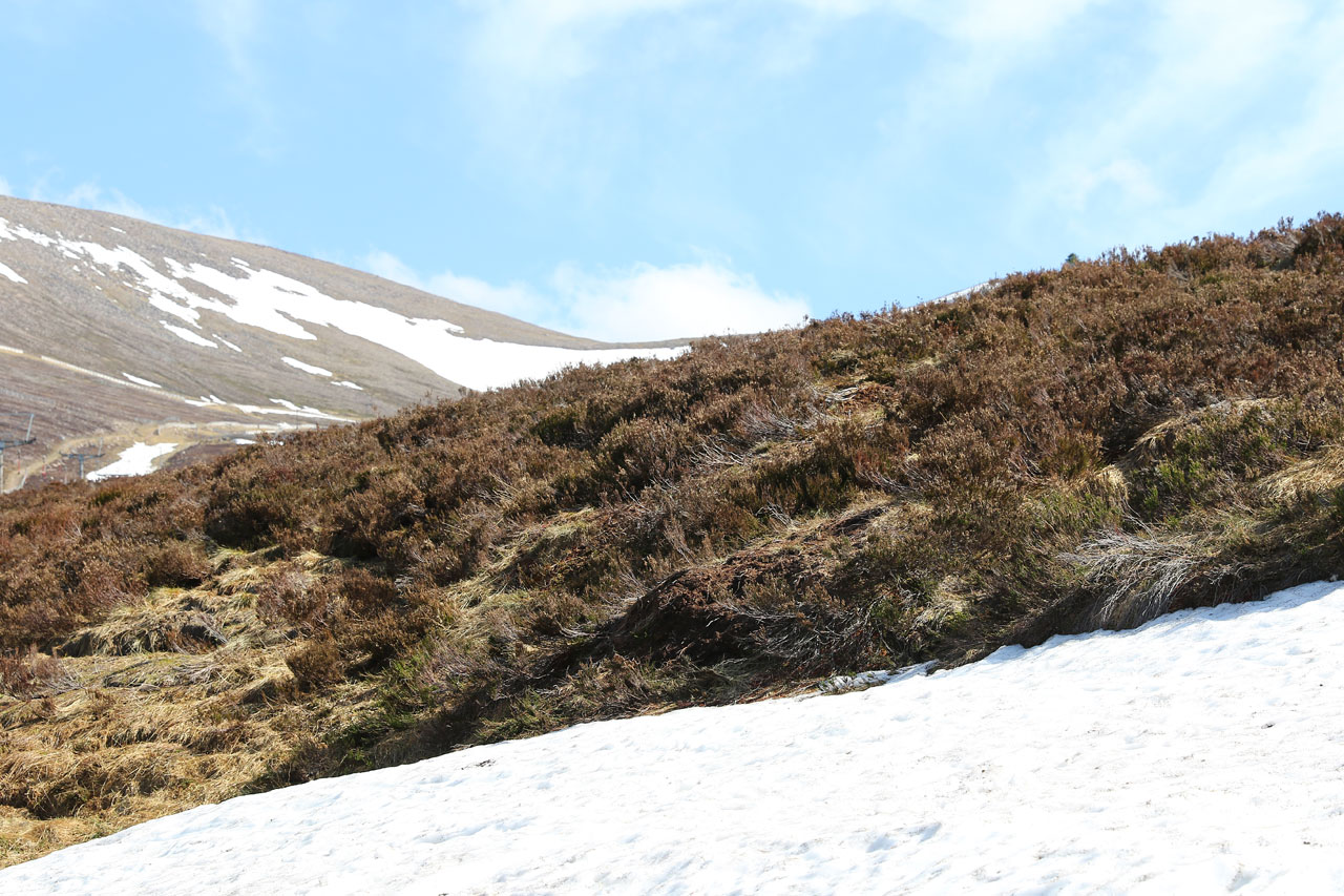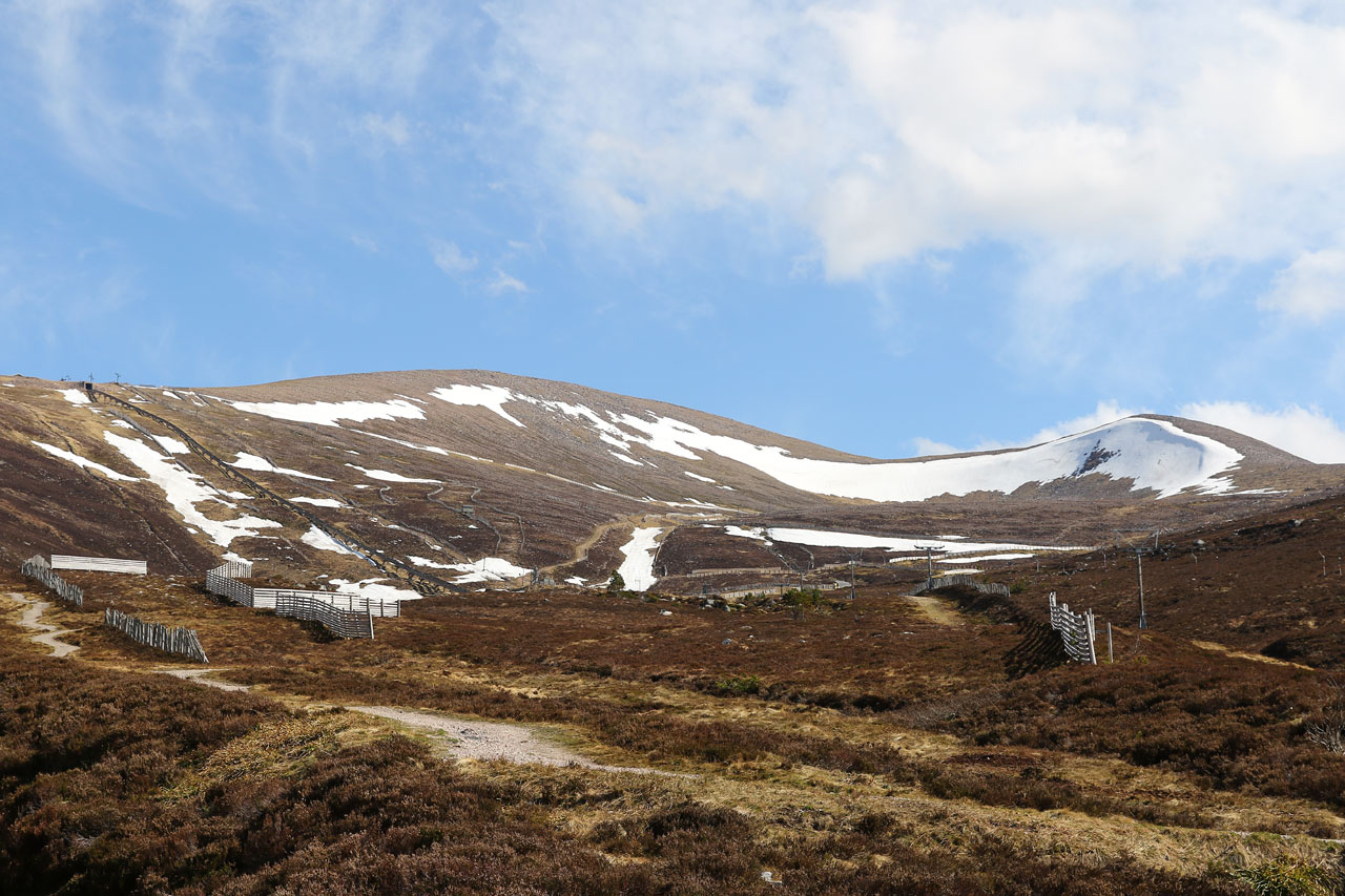 14h30 – pause déjeuner à Aviemore, petite ville aux allures de village alpestre où l’on peut louer skis et snowboards. Croyez-le ou non, du de ses 1200 mètres, la Cairgorm Moutain permet de faire du ski en hiver. Comme le temps est exceptionnellement beau et dégagé, nous décidons de monter sur la Cairgorm pour profiter de la vue. La route est super mignonne mais encombrée par un monde fou. Comme il fait beau, tout les gens sont dehors à faire du vélo, camper ou bien se baigner dans le lac. Bon tout ça pou dire qu’à 650 mètres d’altitude la vue est belle. Elle aurait pu l’être encore à plus à 1200 si le funiculaire n’était pas au tarif délirant de 13£/personne. Donc finalement 650 mètres, pour prendre le soleil en buvant un cappuccino ça suffit amplement. Et puis suffisait aussi pour aller faire l’andouille dans la neige.