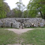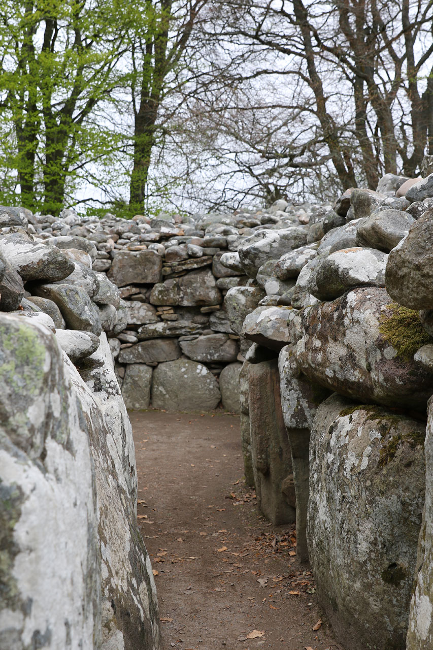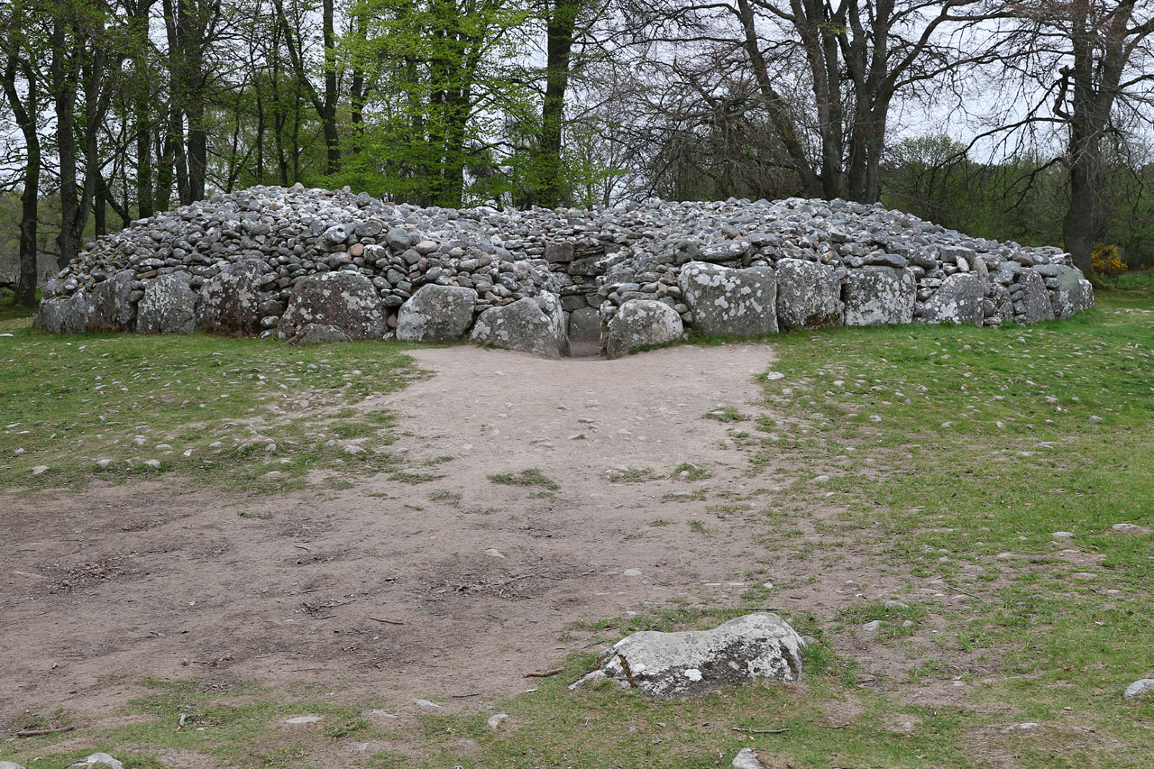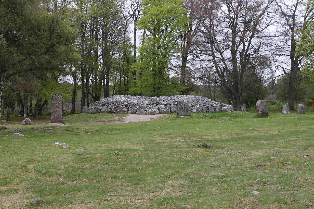 Les oeufs brouillés de ce matin n’ont malheureusement pas concurrencés ceux de la veille, n’empêche qu’ils ont fait ce qu’ils avaient à faire. Le saumon local aussi. C’est donc après un petit déj’ copieux que nous partons au nord-est d’Inverness pour voir des cairns. En gros des tas de cailloux du néolithiques ou paléolithique, nous ne sommes pas à 1000 ans près. Contrairement à ceux vu en Irlande qui ont été restauré, ceux là sont dans leur jus. Et puis il faut savoir qu’ils sont là. Là où l’Irlande était une usine à touristes, ici il faut quitter la nationale, quitter la départementale, tourner à droite après le chêne, passer le pont, contourner le mur de pierre et après la ferme on y est. Et j’exagère à peine. C’était au moins la garantie de ne pas tomber sur une armée de touristes. Ceci dit, ils ont un point commun avec les irlandais: leur orientation plein Est pour que le soleil du solstice d’été puisse rentrer à l’intérieur. Coïncidence? Je ne crois pas.