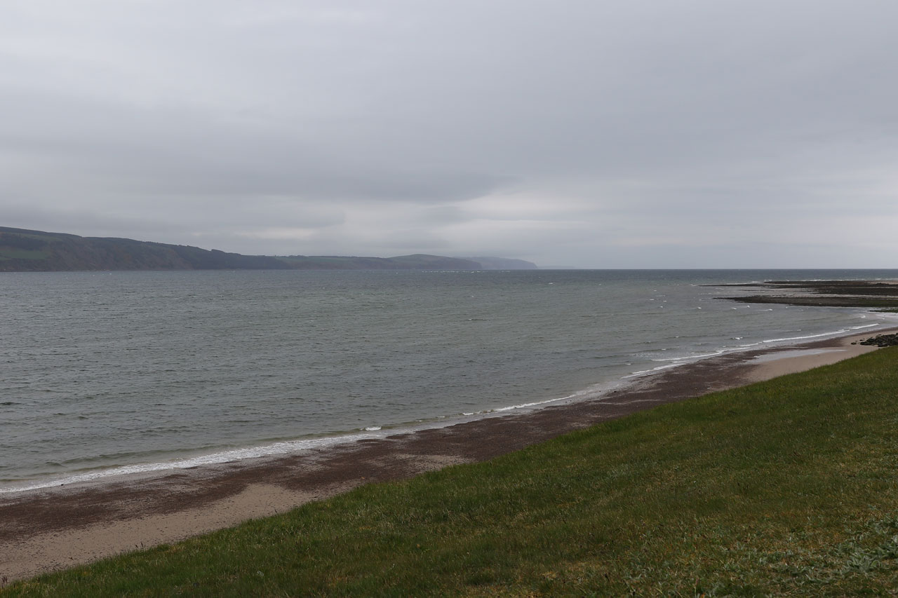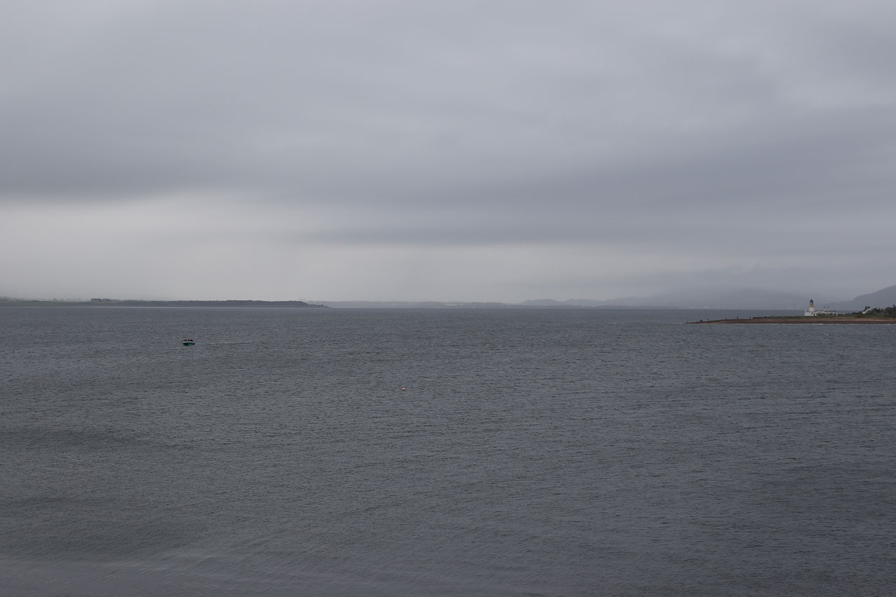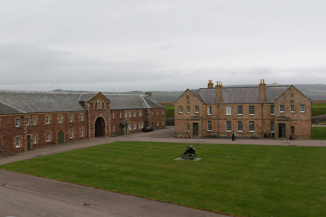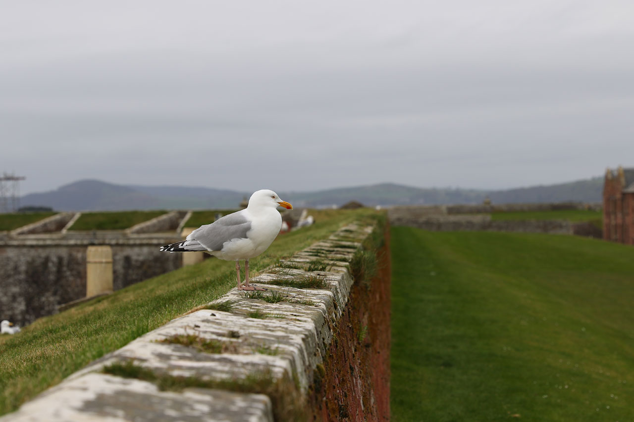 Nous prenons ensuite la direction de Fort George, un vieux fort militaire hautement important dans l’histoire de l’Ecosse et encore occupé par l’armée. Pourquoi important dans l’histoire locale? Car entre nos cairns et le fort, se situe le champ de bataille de Culloden, où les locaux ont pris une « déculloden » mémorable facent aux anglais. Le fort fut le signe de l’occupation anglaise dans la région. Il est aussi placé stratégiquement à l’entrée du chenal menant à Inverness. Inutile de dire que vu l’endroit, il y a un vent à décorner les boeufs. Bref c’est un fort avec des canons et tout un tas de bestiaux qu nichent sur les remparts. Un oiseau marin nous hurlera dessus car nous sommes passés trop près de son nid. En faisant notre petit tour du proprio, nous voyons un panneau indiquant « dolphin viewpoint » laissant entendre qu’on peut voir des dauphins depuis les remparts. Et bien oui c’est vrai. Nous avons aperçu un banc de dauphins souffleurs faire sa vie à quelques dizaines de mètres du bord. Un phoque est aussi venu montrer sa truffe. Et c’est LA, que nous avons « ENFIN » pris notre première rincée. Il s’est mis à pleuvoir bien comme il faut. Heureusement que la visite du fort touchait à sa fin.