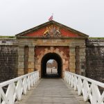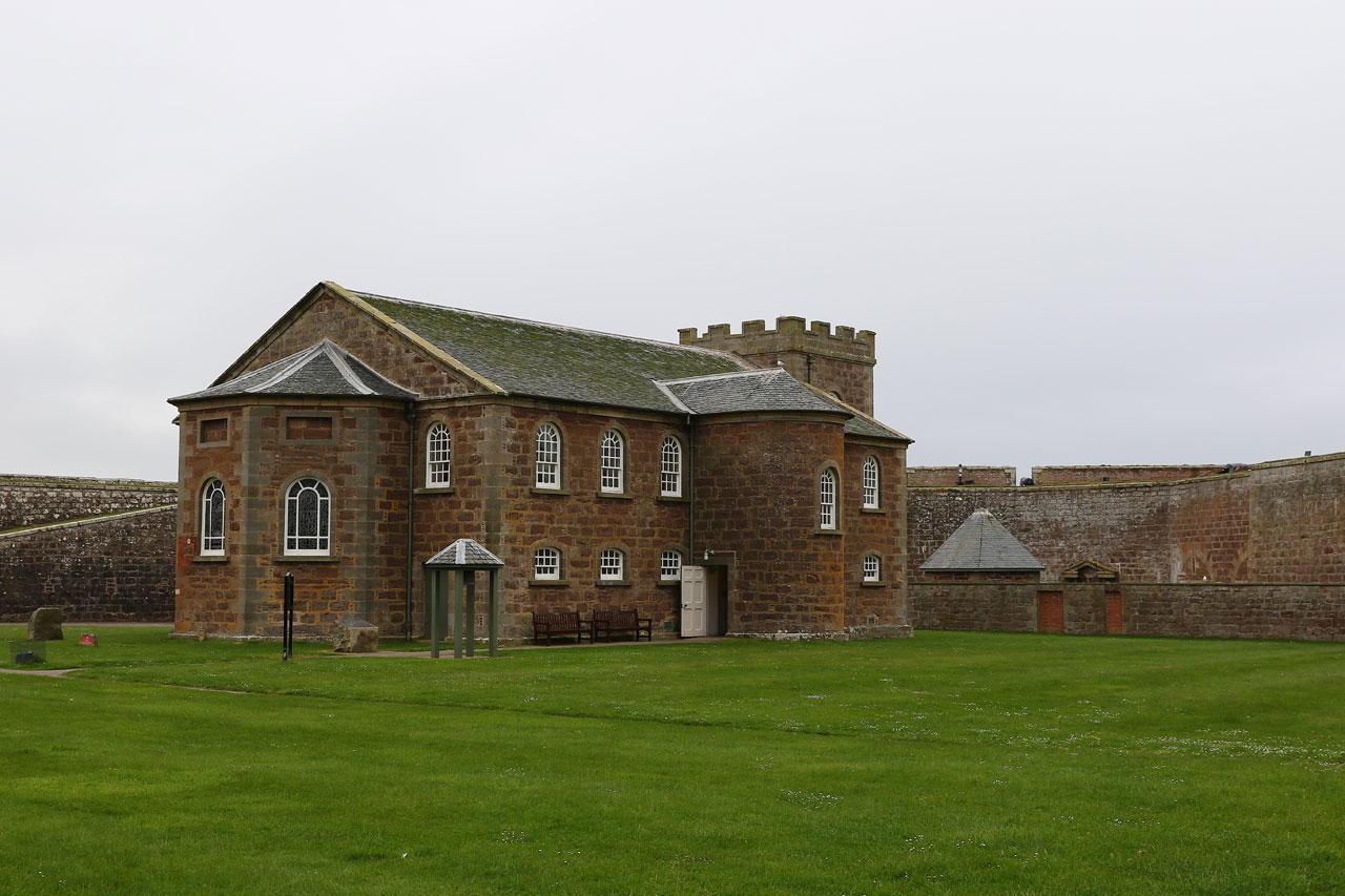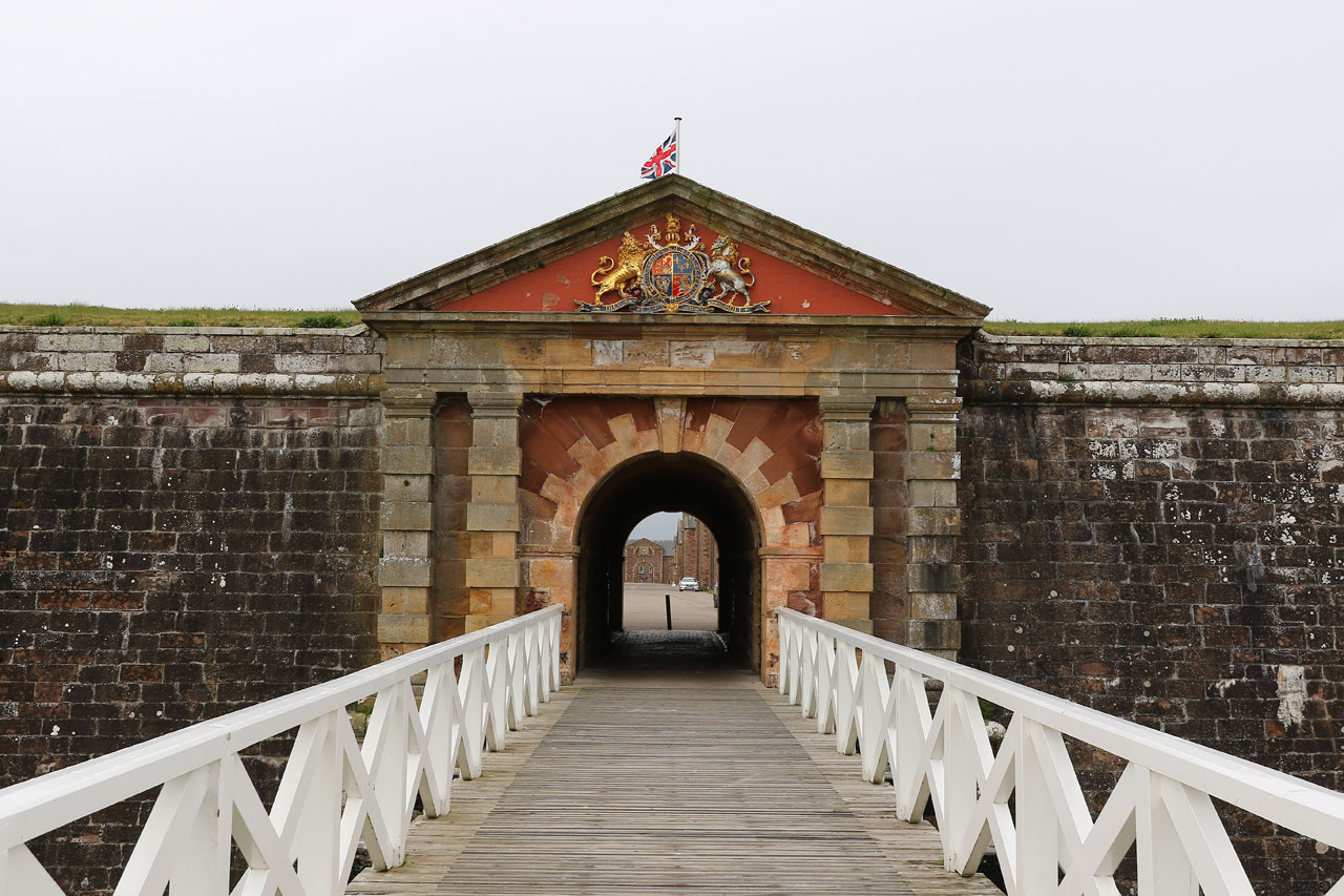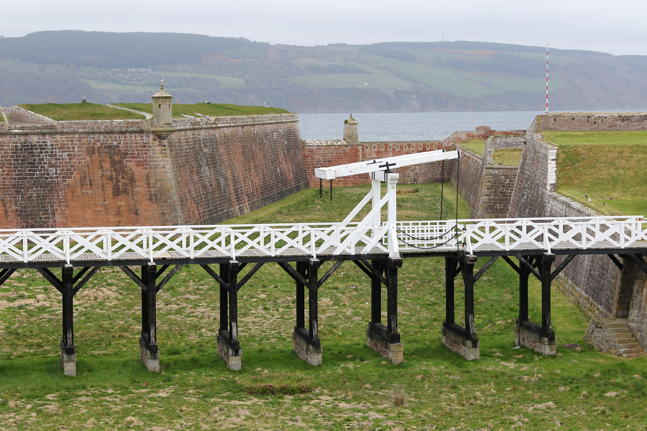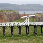 Nous prenons ensuite la direction de Fort George, un vieux fort militaire hautement important dans l’histoire de l’Ecosse et encore occupé par l’armée. Pourquoi important dans l’histoire locale? Car entre nos cairns et le fort, se situe le champ de bataille de Culloden, où les locaux ont pris une « déculloden » mémorable facent aux anglais. Le fort fut le signe de l’occupation anglaise dans la région. Il est aussi placé stratégiquement à l’entrée du chenal menant à Inverness. Inutile de dire que vu l’endroit, il y a un vent à décorner les boeufs. Bref c’est un fort avec des canons et tout un tas de bestiaux qu nichent sur les remparts. Un oiseau marin nous hurlera dessus car nous sommes passés trop près de son nid. En faisant notre petit tour du proprio, nous voyons un panneau indiquant « dolphin viewpoint » laissant entendre qu’on peut voir des dauphins depuis les remparts. Et bien oui c’est vrai. Nous avons aperçu un banc de dauphins souffleurs faire sa vie à quelques dizaines de mètres du bord. Un phoque est aussi venu montrer sa truffe. Et c’est LA, que nous avons « ENFIN » pris notre première rincée. Il s’est mis à pleuvoir bien comme il faut. Heureusement que la visite du fort touchait à sa fin.