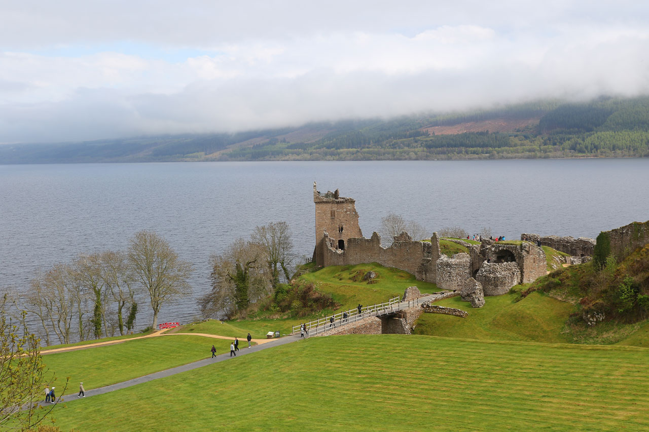 Après cela, nous ferons un rapide stop photo à Urquhart Castle (le château en ruine près du lac dans la galerie), l’endroit étant bondé, nous filons vite fait. La route le long de la rive nord du Loch Ness se fait gentiment et le soleil rend la chose plus agréable. C’eut été parfait si le revêtement avait été de meilleure qualité.
