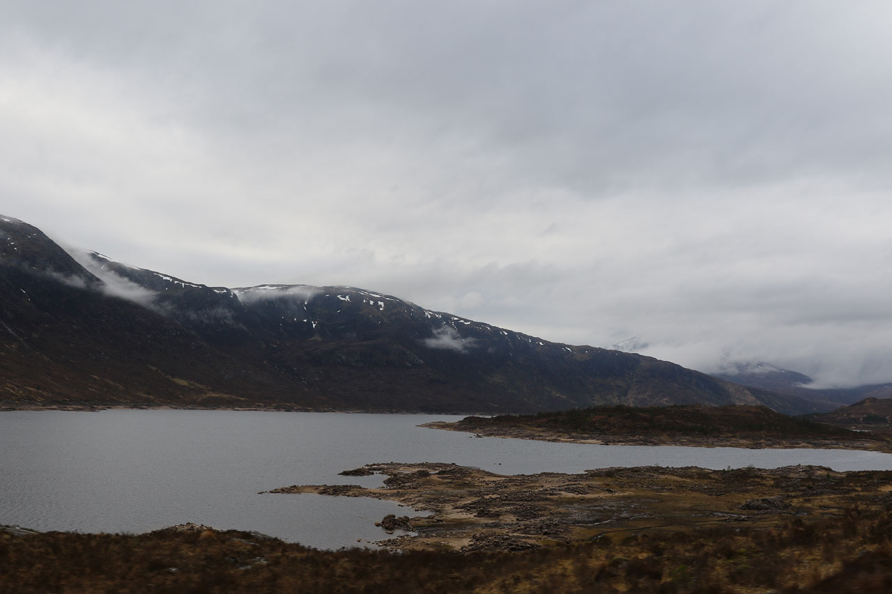 Ce que nous ignorions, c’est qu’en laissant le Loch Ness dans notre dos, nous y laisserions aussi le soleil. Toute la route entre Invermoriston et Dornie s’est faite sous un plafond nuageux assez bas laissant percer la luminosité du soleil par endroit. Et ce fût PARFAIT. Cette lumière totalement folle a rendu le trajet absolument sublime. Cette route rentre facilement dans le top 3 des plus belles que j’ai pu faire. Des paysages de furieux avec cette impression d’être à des années lumières du tout, voir même carrément d’avoir changer de planète. Le genre d’endroit qui donne envie de faire un doigt à tout le monde, de plier ses gaules et de venir se poser là loin de tous ces cons. Non mais franchement, c’est en Ecosse, à 2 heures de vol de la France et mettons 4h de route d’Edimbourg, il n’y a aucune excuse pour ne venir voir ça: AUCUNE. Mais si il n’y avait que ça…