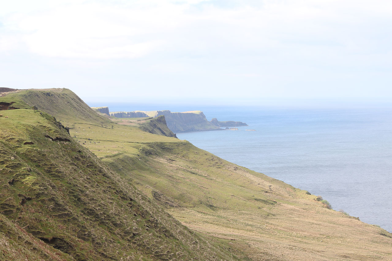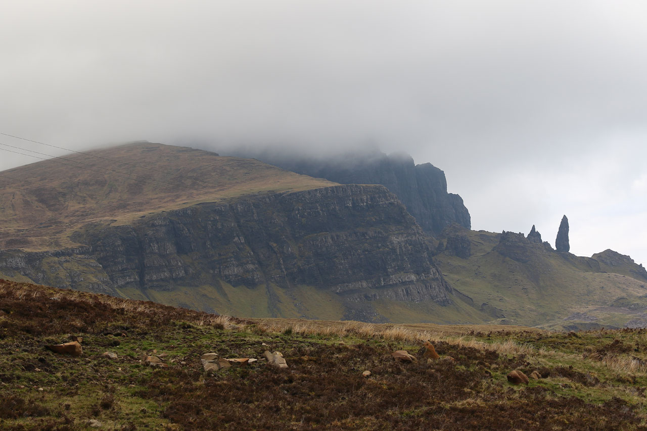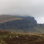 Ensuite nous ferons une cinquantaine de kilomètres le long de la côte et à l’intérieur de l’île de Skye pour arriver à Staffin, notre « dodo » du jour. La maison est situé dans un petit village coincé des près remplis de moutons et la falaise tombant dans l’océan (oui l’île de Skye est dans l’Atlantique là où Saint Andrew c’est la mer du Nord). En gros c’est charmant et les paysages de l’île de Skye sont vraiment à la hauteur de leur réputation: sublime. Car en prime le soleil est revenu de façon aussi inattendu qu’inespéré. Chaque virage est une surprise et le moindre arrête photo devient un parcours du combattant car les routes sont mauvaises et étroites. Ou bien il se peut aussi qu’un crétin dans mon genre veuille monter sur une petite bosse pour avoir un meilleur angle, oubliant que tout le putain d’endroit est de la tourbière, s’enfonçant ainsi jusqu’aux chevilles dans un mélange de flotte et de boue. Qui a juste pris sa paire de baskets et n’a pas de pantalon de rechange? Hein?