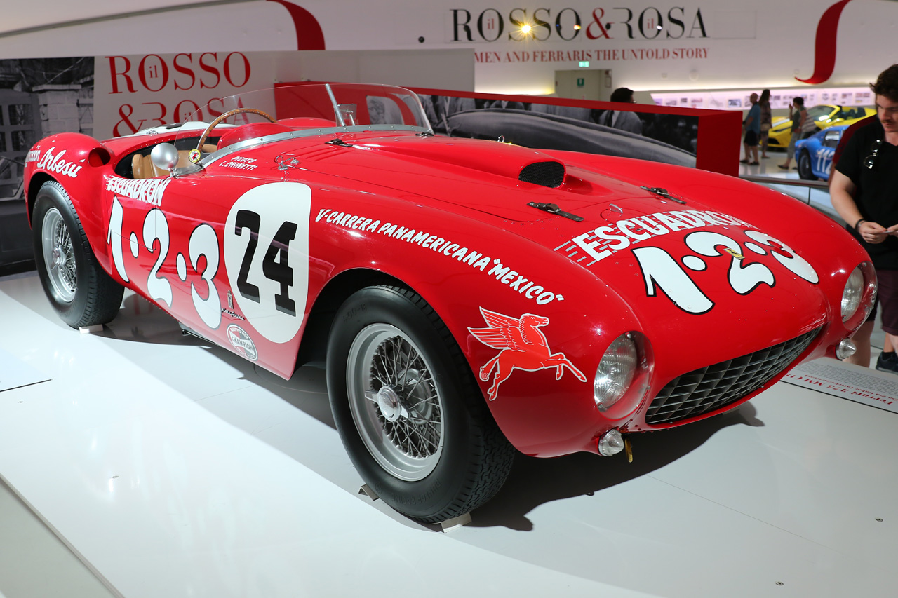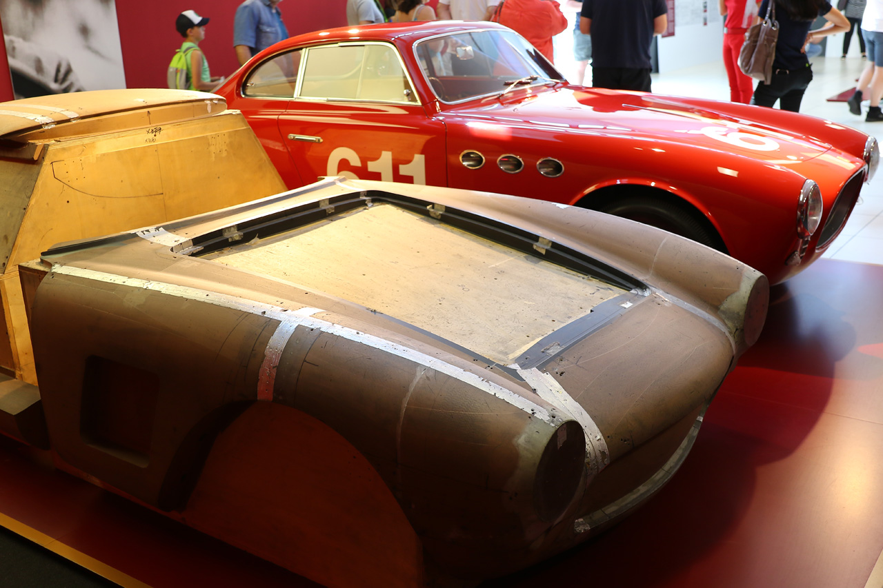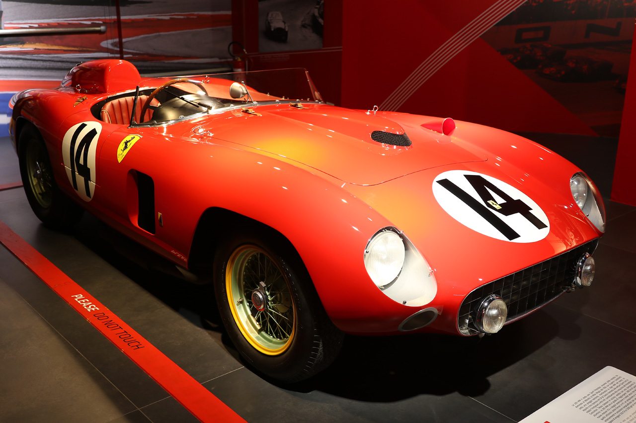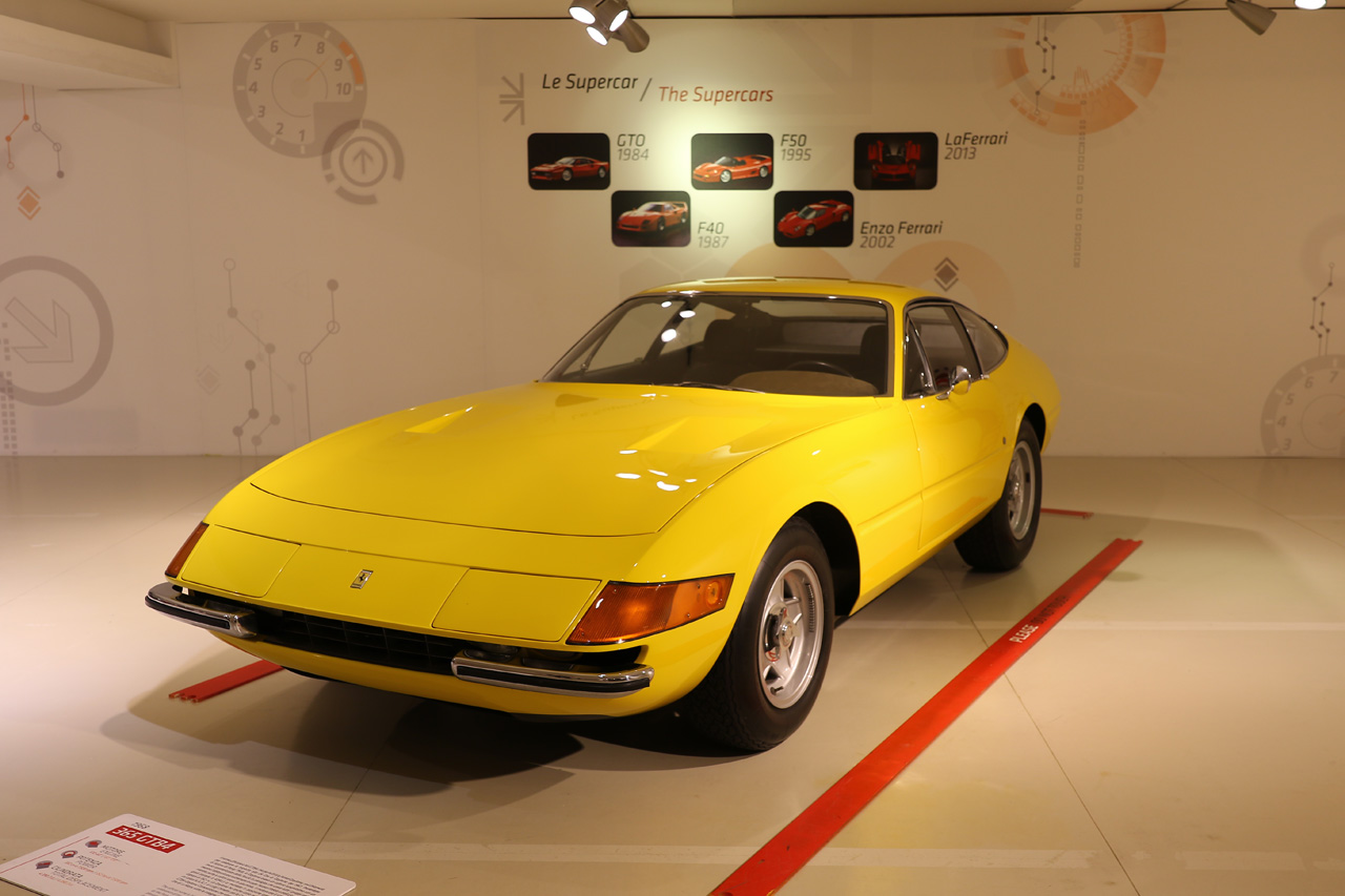 Une fois les bases de la mécanique assimilée, direction le bâtiment principal qui abrite une exposition temporaire. Bien entendu ça tourne toujours autour de Ferrari et des voitures. L’expo du moment est donc dédiée aux femmes et Ferrari – l’idée étant de montrer des modèles Ferrari appartenant ou ayant appartenu à des femmes célèbres – je vous avoue que je n’ai retenu que le nom de Donna Karan. Et là, LA on a retrouvé une partie des joyaux de la couronne. Autant je vous avouerai que la 458 Spétchiaaalé de Donna je m’en battais un peu les reins (c’était la troisième de la journée #blasé) autant le rarissime spyder 250 California de 1957 m’a fait baver. Et que dire de sa copine de 1962, la sublime 250 GTO dans une livrée bleu ciel/jaune tout à fait exquise? Juste WHOW. Et parce qu’il fallait quand même qu’elle se montre, il y avait une LaFerrari! ENFIN! Mais ils l’ont mise dans un recoin pour je ne sais quelle raison. Pas fan plus que ça des lignes de l’engin, c’est quand même plaisant de pouvoir approcher d’aussi près une telle machine. Notre petite visite ne sera interrompu que par un film projeté directement dans la grande salle du musée totalement à la gloire du « commandatore » Enzo Ferrari. Soit.
